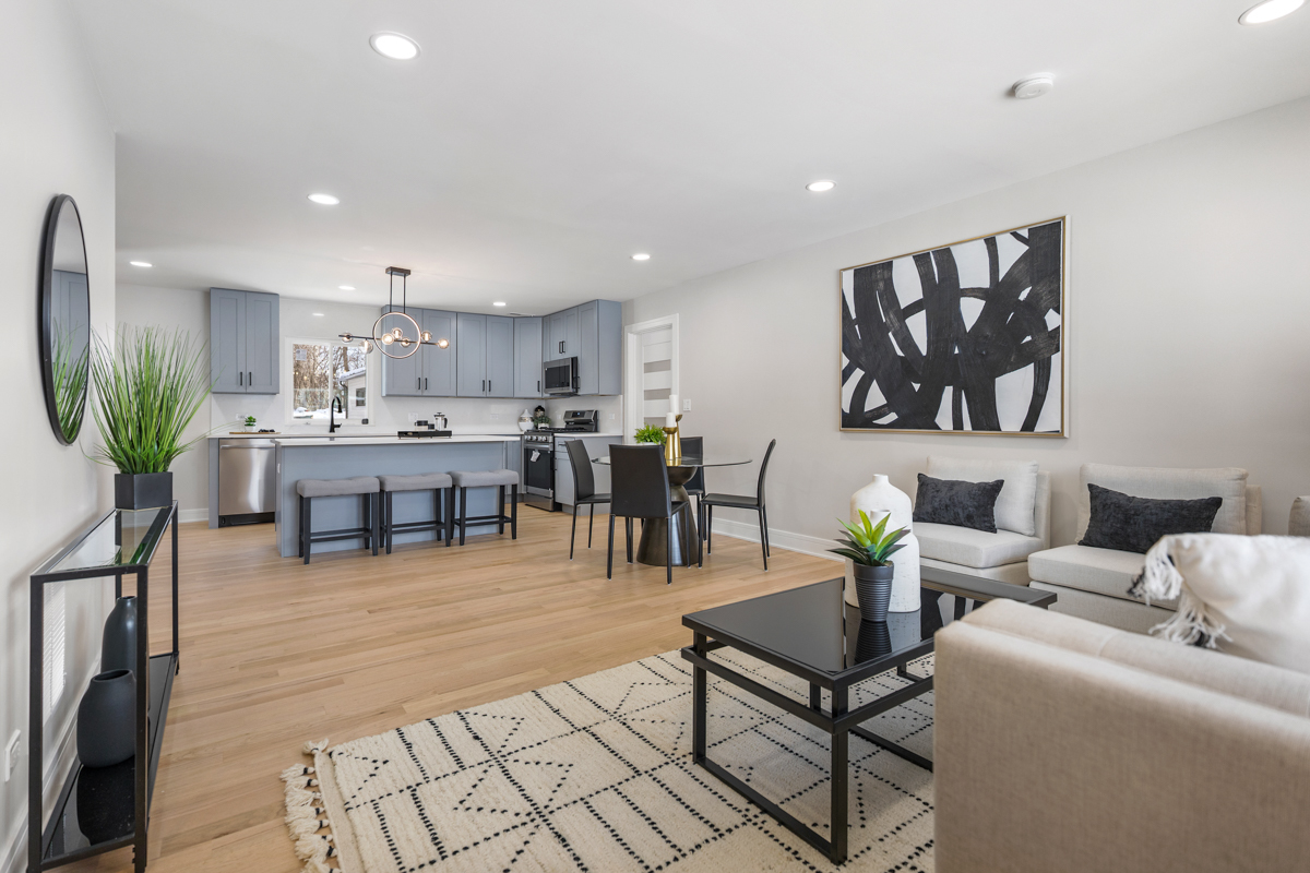 CATALOGUE QUALITY – NEW CONSTRUCTION – SINGLE LEVEL RANCH LIVING – 4 Bedrooms, 2 FULL bathrooms – Luxury on every inch and corner! Stunning, top-to-bottom, FULLY PERMITTED with the village of Hoffman Estates! Everything is up to code and brand new! This meticulously redesigned 4-bedroom, 2-bathroom residence offers a seamless layout featuring solid real hardwood oak floors, elegant glass panel doors, and a designer kitchen equipped with quartz countertops, custom backsplash, and premium stainless steel appliances. Upgraded baseboards and trims throughout the house. This is NOT a typical renovation. Home was stripped to the bones to include all-new copper piping, a new electrical service and panel, new Furnace + AC + boiler, new insulation, brand new windows, brand new duct work and so much more. 2023 roof with newer siding and gutters for absolute peace of mind. The exterior is equally impressive, boasting a long, extended BRAND NEW concrete driveway leading to a two-car garage and a private yard with a newly laid patio. NO HOA fees. Perfectly situated in the prime Schaumburg corridor with immediate access to I-90, IL-53, and the South Barrington/Route 59 commercial hub, this home offers an unbeatable combination of sophisticated modern finishes and a central, high-demand location.