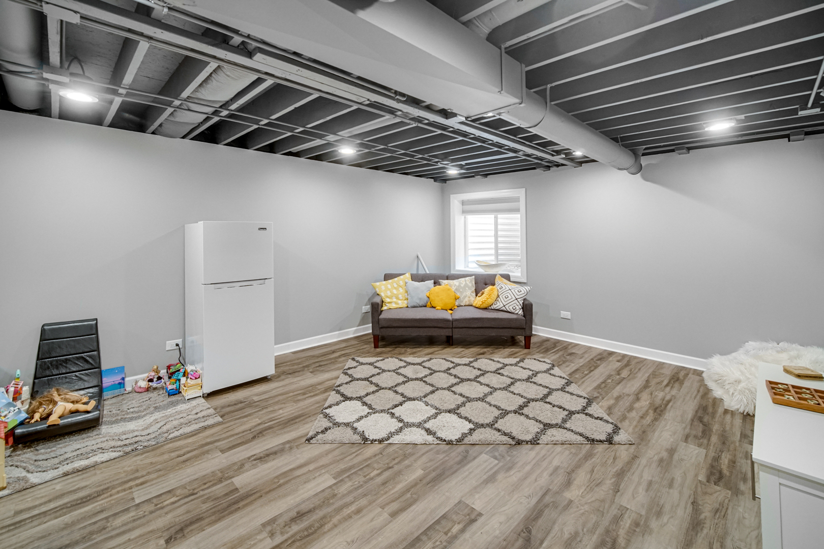This stunning home features 4 bedrooms, 2.5 bathrooms, a finished basement, with an open concept main floor with modern finishes, spacious bedrooms, and a versatile basement perfect for a rec room, home office or gym. 1st floor has 9 ft ceilings, hardwood flooring throughout, kitchen has granite countertops, stainless steel appliances, and walk out to the stamped concrete patio with a fully fenced yard. Conveniently located in a desirable neighborhood close to schools, parks, shopping and dining. All within walking distance of downtown Plainfield.