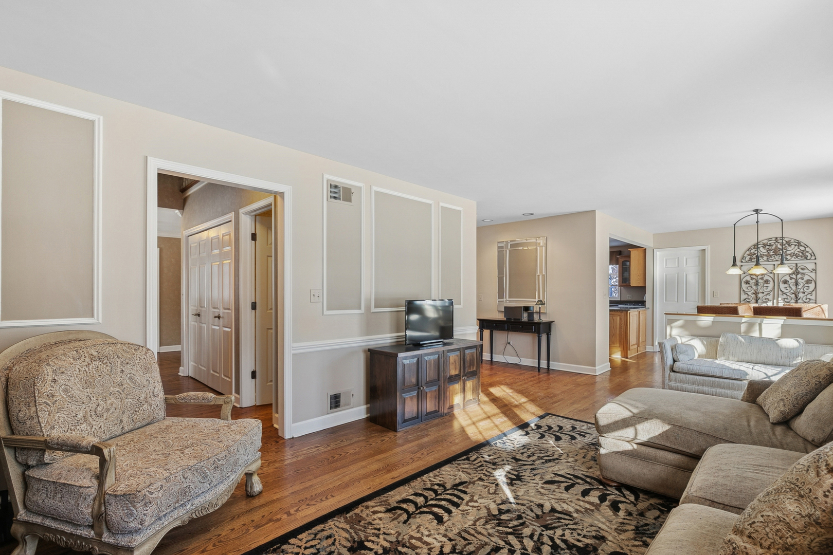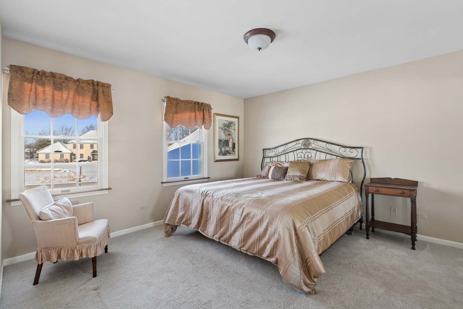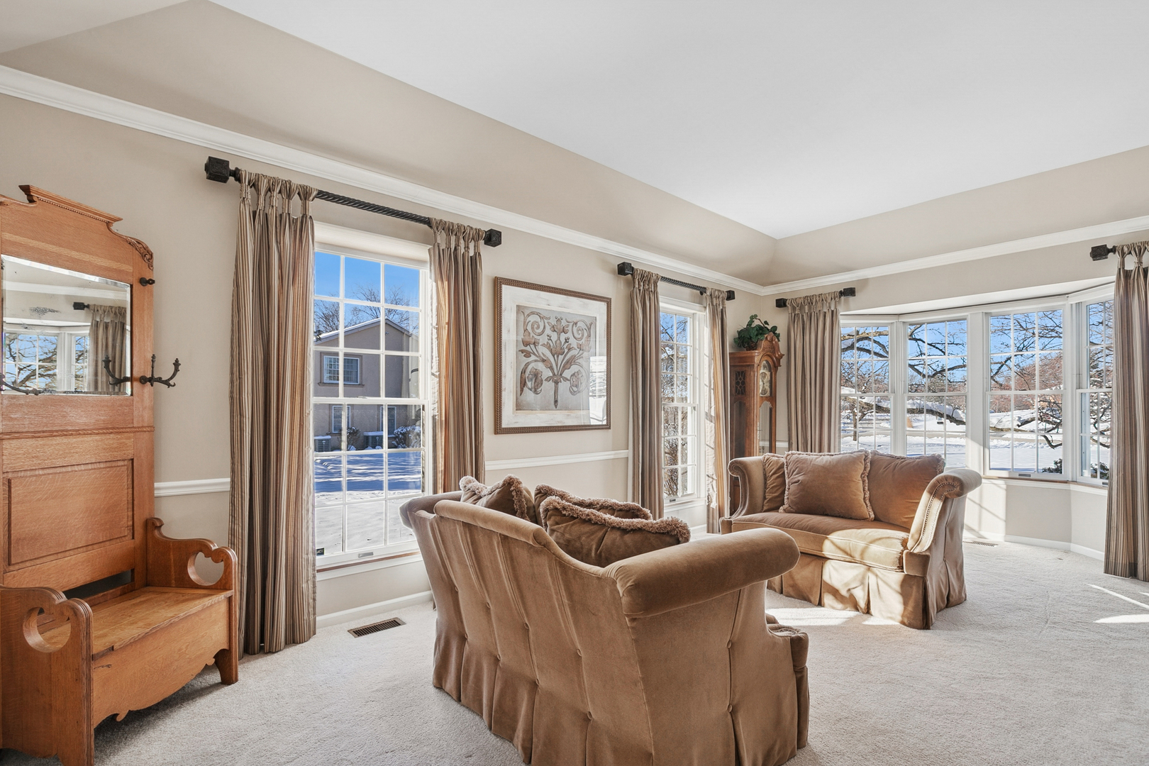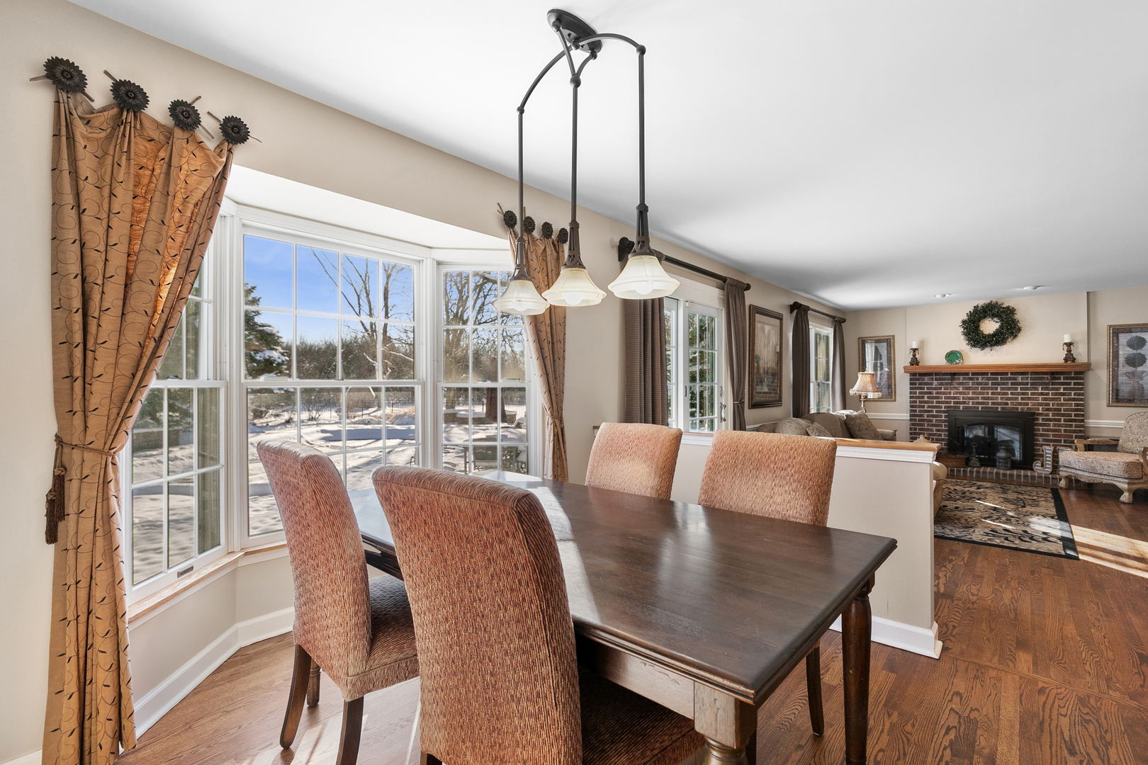 Elegant Country Retreat in Oak Grove School District. Set on nearly an acre, this exceptional 4-bedroom, 3 upstairs + 1 in the basement, 2.5 bath home combines timeless charm with modern comfort. The spacious floor plan features a kitchen with generous counter space & and 2 pantry closets and separate eating area. for those working from home or needing a quiet space, there’s a separate office just off the living room. The finished lower level includes a rec room and a guest bedroom. The luxurious primary suite includes a private sitting room, nursery or a 2nd office with cozy fireplace, perfect for relaxation. Enjoy your own resort-style backyard with an in-ground pool offering privacy and tranquility just minutes from downtown Libertyville.