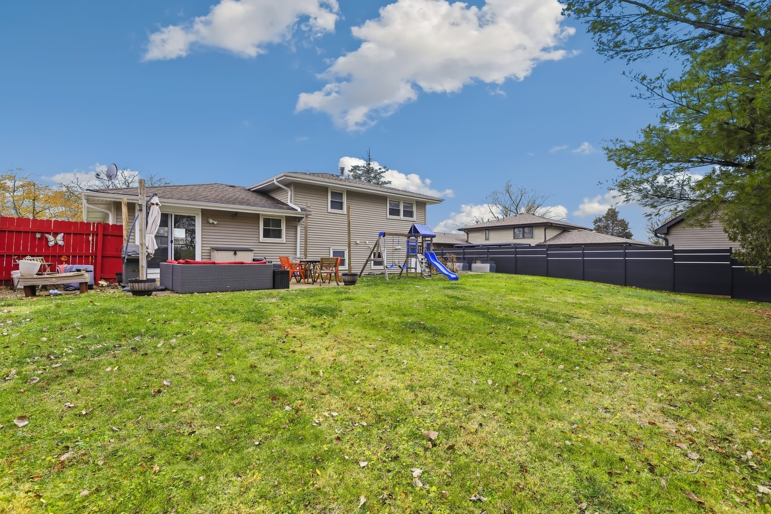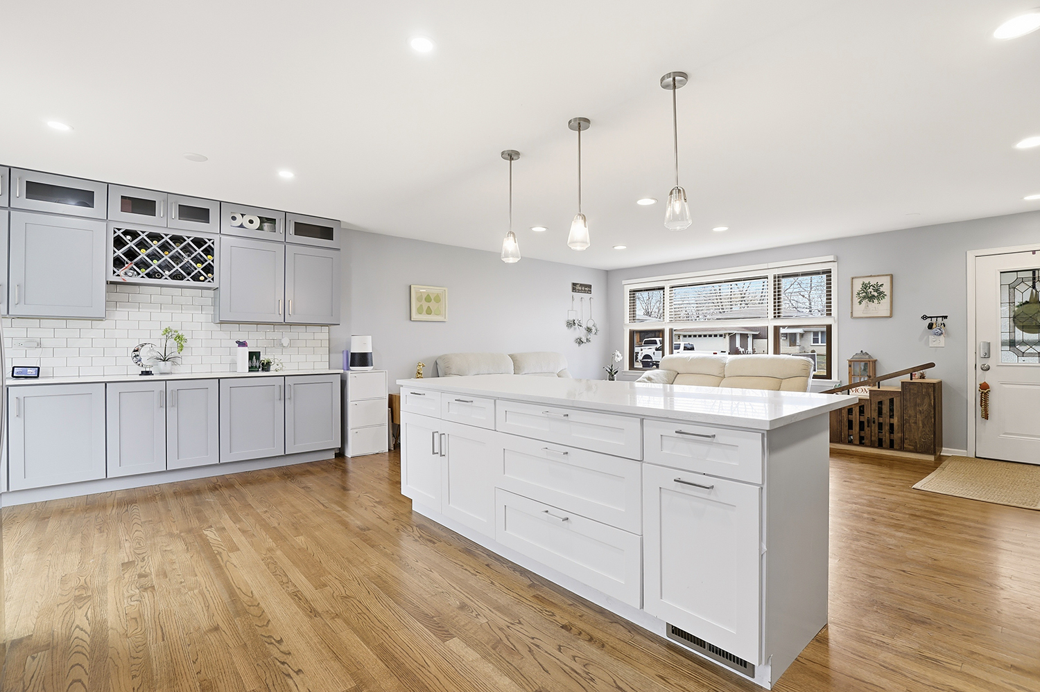 Beautifully updated 3-bed, 2-bath split level in a prime Orland Park location! The open-concept main level features hardwood floors throughout, a spacious living room with large windows and canned lighting, and a stunning 2022-renovated kitchen complete with dual-tone cabinetry, a large island with breakfast bar, and a built-in coffee bar with wine rack and abundant storage and counterspace. All three bedrooms are located upstairs, each with hardwood floors and ceiling fans. The shared hall bath offers an extra-long vanity with great storage and a window. The lower level provides even more living space with a large family room, second full bathroom, and a laundry room with sink, ample storage, and exterior access. Enjoy the fully fenced backyard with patio, plus a covered front porch and an attached 2-car garage. Major updates include new siding, gutters and AC condenser all in 2025. Zoned to highly rated District 135 schools and Sandburg High School. Fantastic location blocks from High Point Elementary, Orland Square, Trader Joe’s and tons other shopping and dining options. Minutes to Metra, Pace buses, parks and the Orland Park Public Library. This is the perfect place to begin your next chapter!