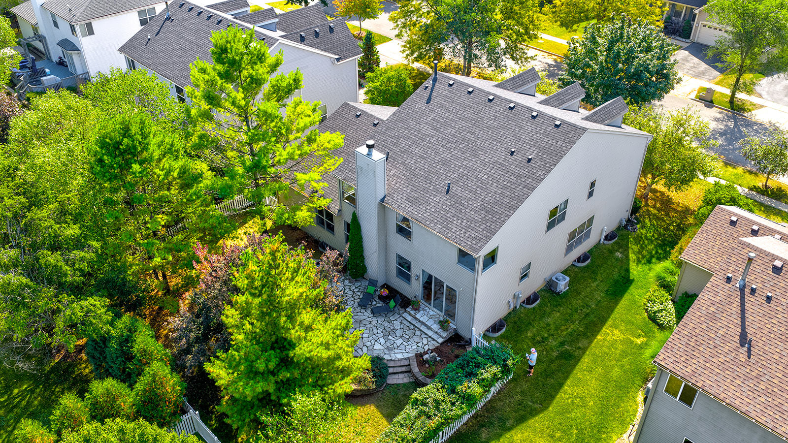 Gorgeous 4-bedroom, 2.5-bath home with a 3-car garage in the desirable Greystone subdivision! This stunning home, perfect for indoor and outdoor entertaining, features a recently REPLACED ROOF, NEW WINDOWS AND SLIDER, offering exceptional curb appeal with a professionally landscaped yard and a sun-filled interior. Step inside to gleaming hardwood floors and a spacious living and dining room combo perfect for hosting guests. The showstopping kitchen, with updates, features soaring cabinets, granite countertops (2024), backsplash (2024), a large island, walk-in pantry, and ample dining space, flowing seamlessly into the oversized family room with a cozy fireplace-ideal for large gatherings. From the kitchen, step out to a gorgeous patio with a built-in grill and firepit, creating the ultimate private fenced in backyard retreat. The first floor also includes a den/office and half bath, which could easily be converted to a full bath. Upstairs, enjoy new carpet, freshly painted ceilings, and a large primary suite overlooking the beautiful backyard, boasting a freshly painted luxury bath with a soaking tub, separate shower, dual vanity, and huge walk-in closet with a laundry shoot. Three additional spacious bedrooms, an office nook, and a full hall bath complete the second floor. The full basement offers abundant storage and potential for finishing. Updates include ROOF (2024), WINDOWS AND SLIDING DOOR (2023), FURNACE (2023), A/C (2025), WATER HEATER (2021), SUMP PUMP (2025), GARAGE DOOR AND OPENER (2018), CARPET, FIXTURES, LIGHTING, GARAGE DISPOSAL (2024), and COOKTOP(2021). Walking distance to the park and close to shopping, restaurants, and the interstate-this MOVE-IN READY home is an absolute must-see!