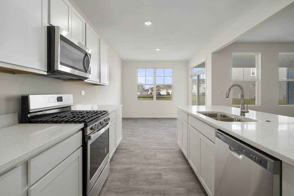 Envision yourself at 14930 S. Parkview Drive a beautiful new home in our Greenbriar community, located in Plainfield North School District 202. This ranch home will be ready for a Spring move-in! Scenic homesite includes fully sodded yard and covered back patio. The Fairfield plan offers 1,970 square feet of living space with 4 bedrooms, 2 baths, 9-foot ceilings, and basement with lookout. When you first enter the home, there is are two secondary bedrooms, separated by a full bath. Down the hall, you will walk into the open concept great room and kitchen. The kitchen layout includes a large island with an overhang for stools, 42-inch designer cabinetry with crown molding and soft close drawers. Additionally, the kitchen features a walk-in pantry, modern stainless-steel appliances, quartz countertops, and easy-to-maintain luxury vinyl plank flooring. Enjoy your private get away with your spacious primary bedroom and en suite bathroom with a raised height dual sink, quartz top vanity, and walk-in shower with clear glass shower doors. All Chicago homes include our America’s Smart Home Technology, featuring Qolsys IQ4 Panel to control the smart features including a smart video doorbell, keyless entry, programmable Honeywell thermostat, smart door lock, and Deako smart rocker switches. Photos are of similar home and model home. Actual home built may vary.