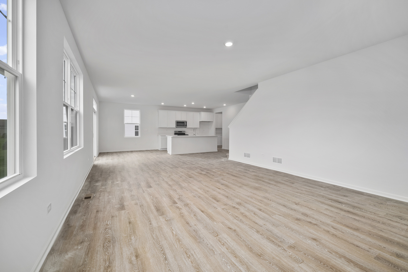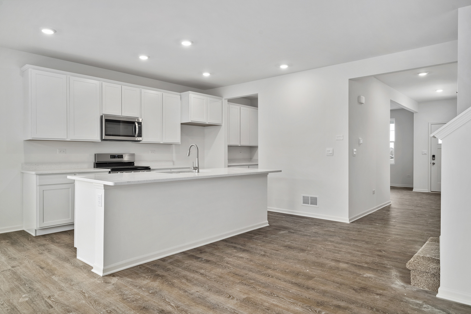Discover yourself at 14936 South Parkview Drive in Plainfield, Illinois a beautiful new home in our Greenbriar community, located in Plainfield North School District 202. This home is ready for a move-in NOW! Homesite backs to pond and includes fully sodded yard, landscape package, and stone accents on the front of the home. The Coventry plan offers 2,836 square feet of living space with a flex room, 4 bedrooms, 2.5 baths, 3 car garage, 9-foot ceilings on the first floor, and full basement with lookout. Entertaining will be easy in this open-concept kitchen and family room layout with a large kitchen island with an overhang for stools, 42-inch designer cabinetry with crown molding and soft close drawers. Additionally, the kitchen features a butler’s pantry, modern stainless-steel appliances, quartz countertops, and easy-to-maintain luxury vinyl plank flooring. More flexible space is waiting upstairs with the second-floor loft, offering unlimited potential to suit your needs. Enjoy your private getaway with your large primary bedroom and en suite. The primary bath includes a raised height dual sink, quartz top vanity, and walk-in shower with glass shower doors. Convenient walk-in laundry room, 3 additional bedrooms with a full second bath, and a linen closet compete the second floor. All Chicago homes include our America’s Smart Home Technology, featuring a smart video doorbell, smart Honeywell thermostat, smart door lock, Deako smart light switches and more. Exterior photo of actual home. Exterior and interior photos are of similar home and model home. Actual home built may vary.