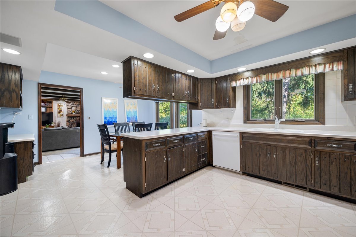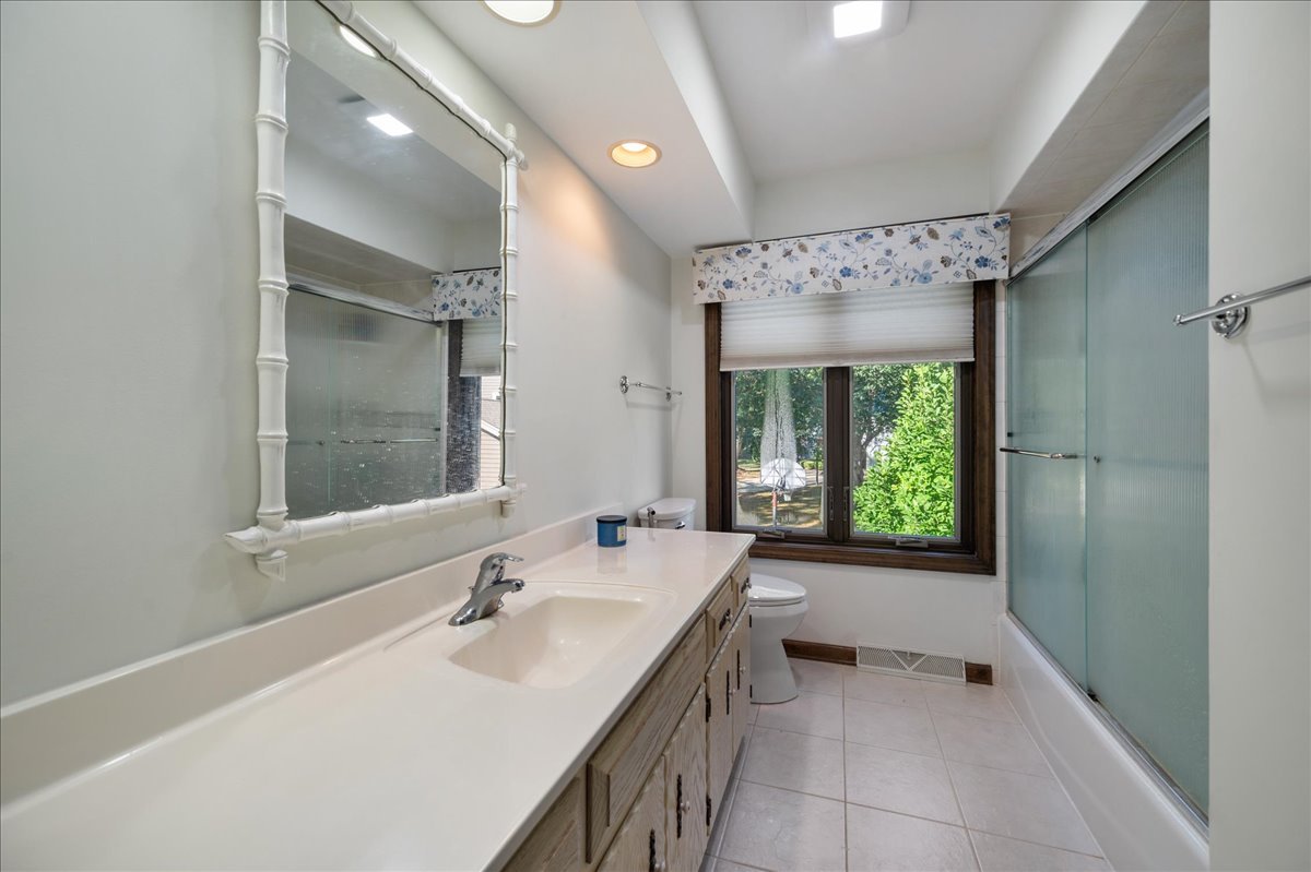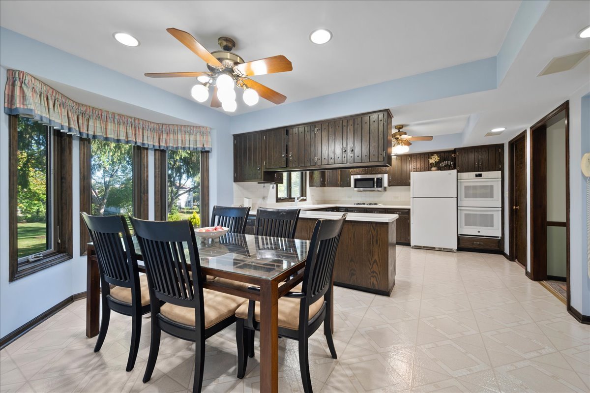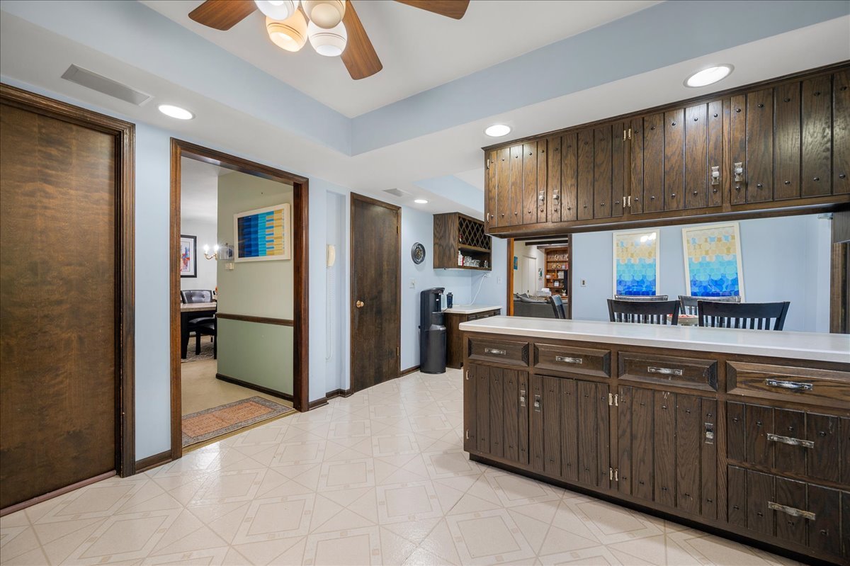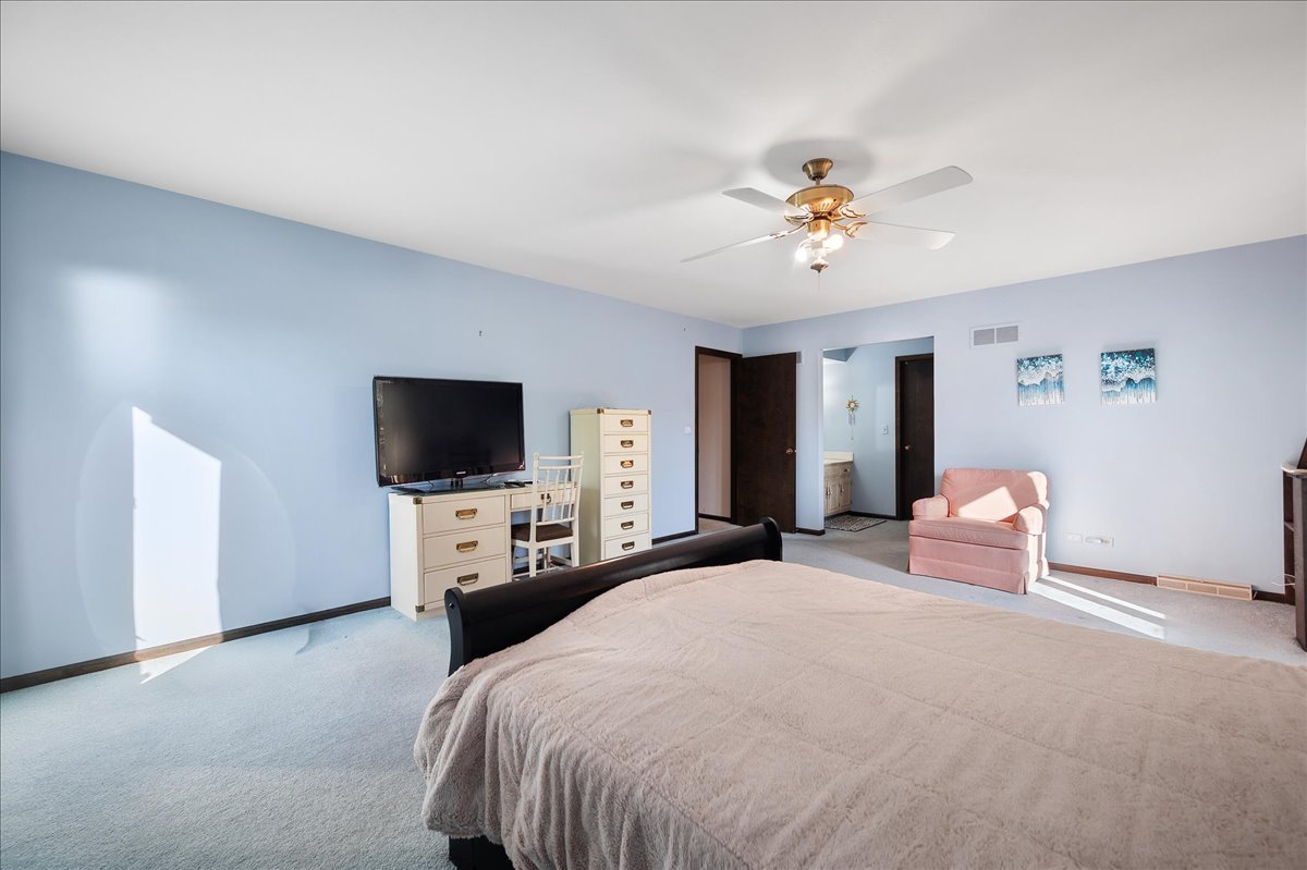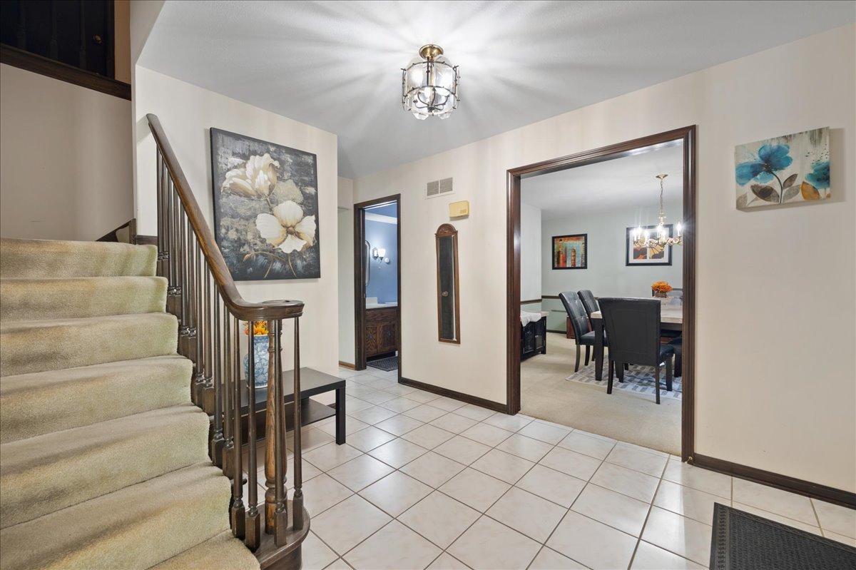 Spacious home in one of Bartlett’s most sought-after areas, this large home sits on a 0.3-acre wooded lot and features 5 to 6 bedrooms and 3 1/2 baths, making it perfect for a large family or remote work needs. On the main level, enjoy a spacious living rm & family rm combination, ideal for entertaining. The family rm has a stone fireplace & access to the exterior paver patio. The kitchen is equipped with ample storage, a walk-in pantry, & a huge eating area, along w/excellent prep space & a double oven-perfect for the culinary enthusiast. A sizable first-floor laundry room provides great closet space, a laundry tub, & access to the outside. Upstairs, you will find 5 expansive bedrooms, each w/a ceiling fan, large windows, & plenty of closet space. The recently updated lower level includes new flooring, a partial kitchen, & a full bath. Outside, enjoy a tranquil yard featuring a paver patio, nestled among trees for a peaceful retreat. A new roof w/solar panels enhances energy efficiency, while a two-car garage provides convenience & additional storage. Conveniently located near the train station, shops, recreation center, library, & community pool, this home beautifully combines space, comfort, and accessibility. If you’re in the market for a spacious home, look no further!