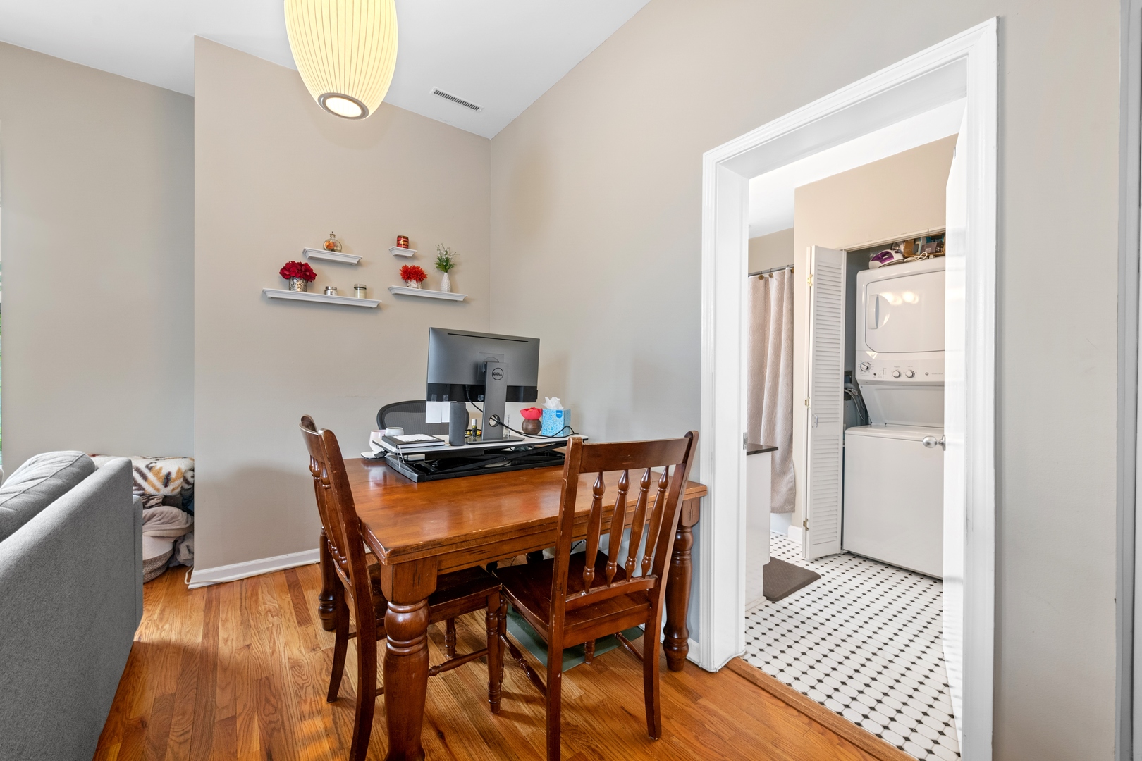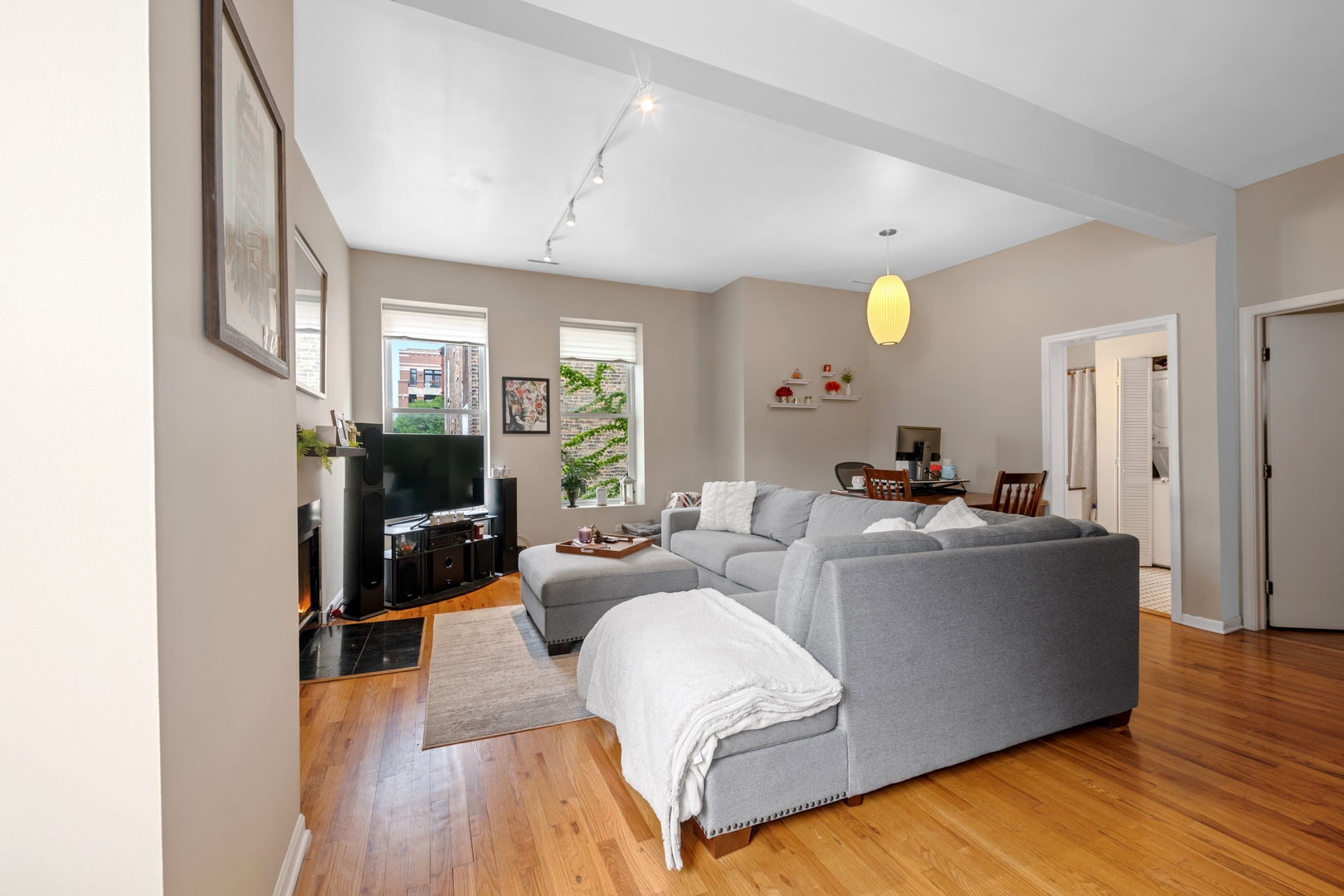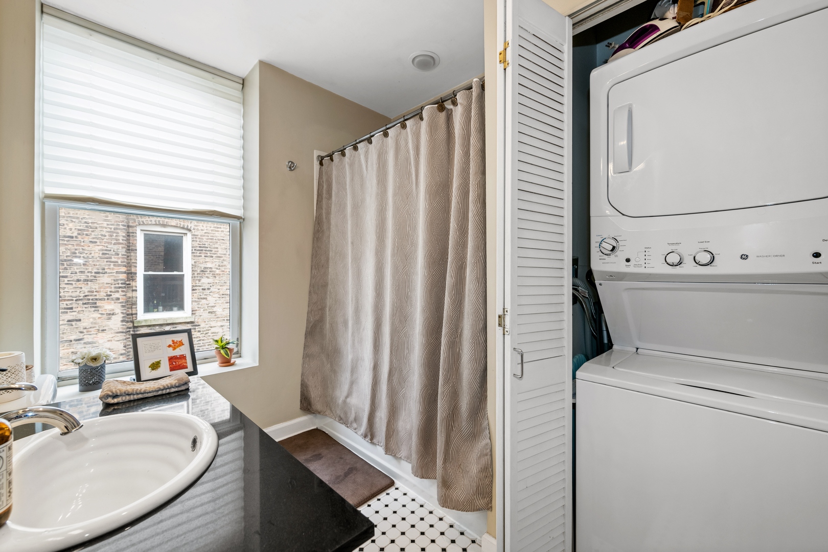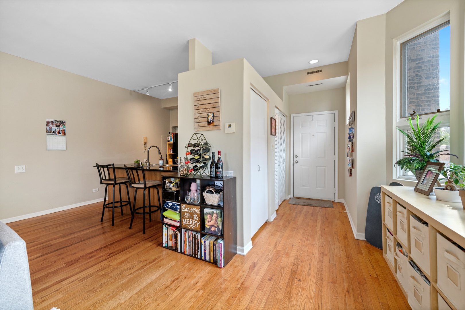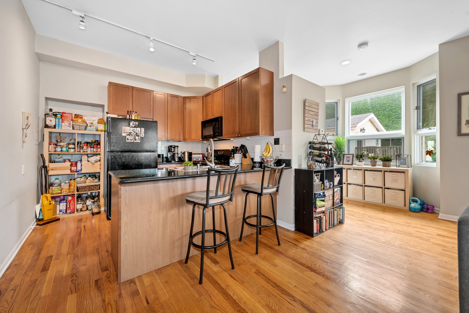 Prime Old Town extra large 1 bedroom 1 bathroom with deeded garage parking available for $30,000. High ceilings. Spacious open Kitchen and Living Room layout has approximately 1,000 square feet of living space, features inc: wood burning fireplace, charming south facing bay window allows for tons of natural light, oak hardwood floors throughout and huge outdoor space. Kitchen with 42″ shaker style cabinets and breakfast bar, space for dining room table. Huge bedroom with great closet space. IN-UNIT washer/dryer. Central heat/air. Huge Storage unit included in price. Unit in the rear, so train noise is minimal. Walk to everything! Bars, restaurants, parks, Lake Michigan, and steps to the Brown Line “L”. Shows very well!