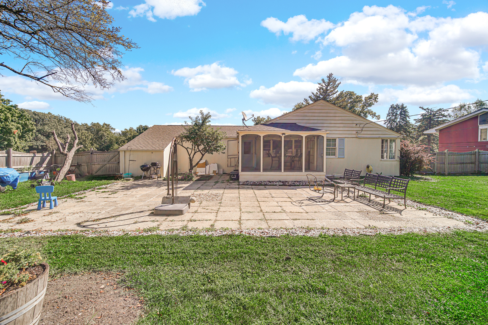 Welcome home! This charming ranch sits on a spacious corner lot with a peaceful front porch perfect for slow mornings. Inside, natural light fills the living spaces, from the cozy sunroom to the freshly updated kitchen countertops (2025). With 3 bedrooms, 2 baths, and a finished basement complete with a wet bar, full bath, and bonus room for a home office or playroom-it’s designed for both comfort and versatility. Modern updates like a new AC (2025) make it truly move-in ready.