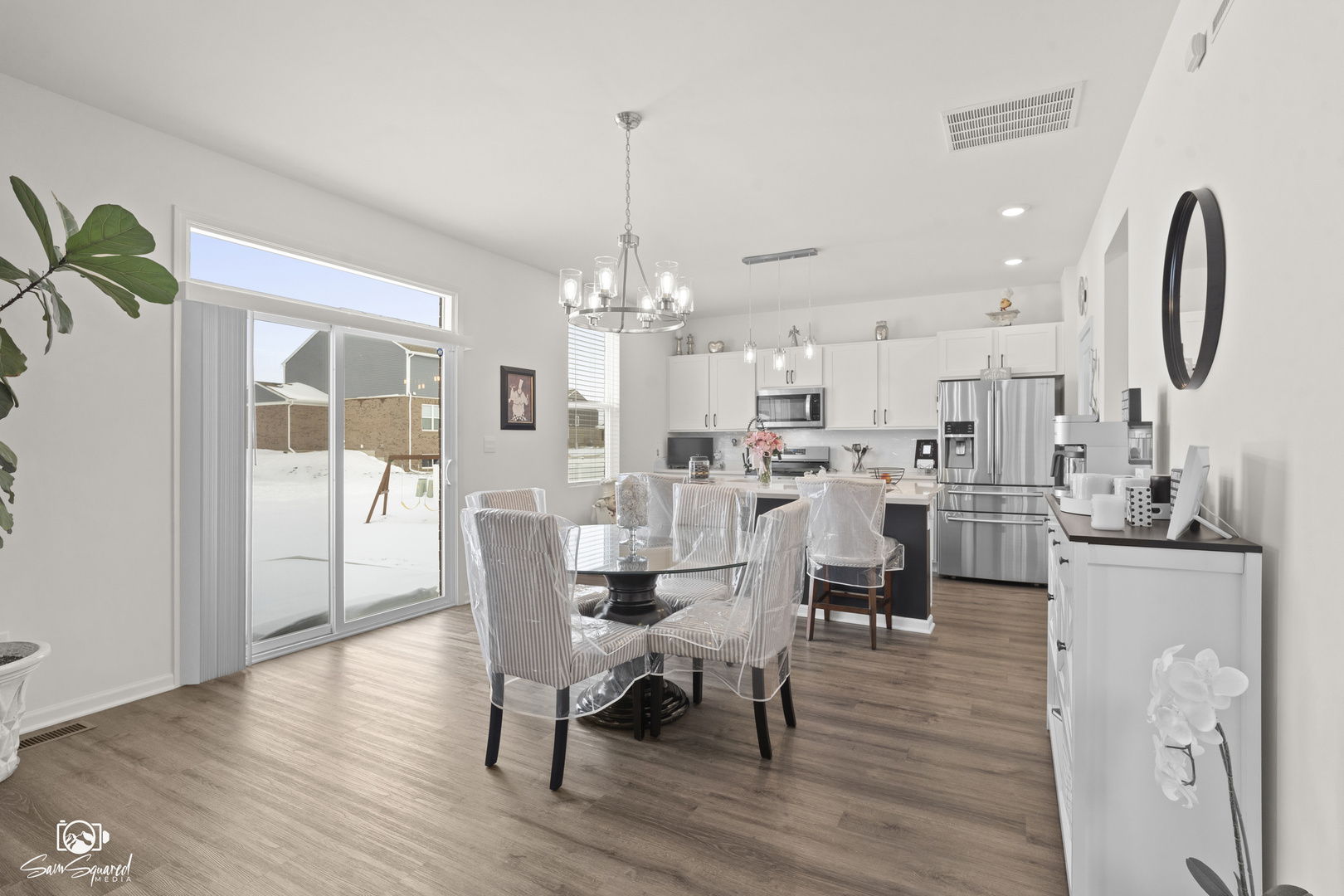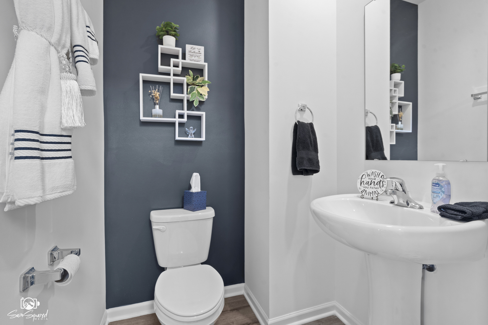 1 year young home has all the finishes the builder doesn’t do and ready for you to move right in and enjoy. This is functionality meets sophistication as an open concept, two-story home, offering four large bedrooms, 2.5 baths, full basement, 2.5 car garage, and EXTRA WIDE LOT. Charming and usable front porch welcomes you into the home. The expansive flex room at the front of the home is a great space for a home office, den, playroom, or formal living room. Down the entryway you’ll find a convenient half bath then into the spacious great room. The bright and beautiful white designer cabinetry and a center island are the heart of this kitchen. 9 ft. ceilings throughout the 1st floor compliment this open floor plan. Up the wide staircase leads you to the oversized primary bedroom with an en-suite bath: separate water closet, dual-sink vanity, walk-in shower and walk-in closet. The secondary three bedroom sizes are large and share the full hall bath. Enjoy a conveniently placed and large laundry room on the second floor. Finishing off the upper level is the extra large linen closet. A full basement offers storage plus plenty of space to finish in the future. Basement has two large egress windows for plenty of options. Also, don’t miss the extra storage space under the staircase in the basement! This professionally landscaped and fully sodded homesite is wider then the standard lot for more privacy. This home include our America’s Smart Home Technology, featuring a smart video doorbell, smart Honeywell thermostat, Amazon Echo Pop, smart door lock, Deako smart light switches and more. PLUS, homeowner has done the finishes: custom blinds, beautiful backsplash, upgraded lighting, ceiling fans, new faucets, neutral paint, towel racks and large extra patio out back for warm weather enjoyment. Play set will stay. All kitchen appliances will stay with a water softener.