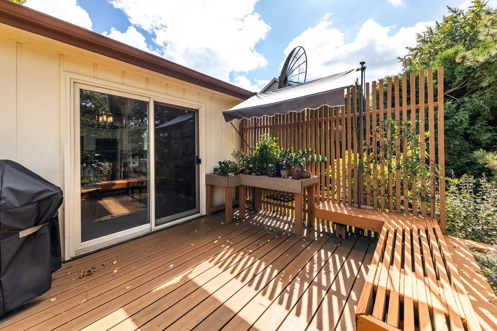 Fabulous ranch home located in highly sought after University Heights. Coveted District 203. Lovingly maintained and impeccably cared for. Professionally landscaped yard with tons of perennials, flowering shrubs & mature trees. Previous owner owned a nursery so yard is quite special. Open floor plan boasts a large living area with a cozy fireplace. Kitchen has white cabinets, solid surface countertops, and an additional new cabinet for extra storage. The dining room opens to an oversized composite deck which is perfect for , entertaining. The backyard is a lovely serene picture of beauty. There is a shed for storage. Newer large casement windows allow fantastic natural light throughout. The primary bedroom has a private bath with newly installed shower door. 2 additional bedrooms and hall bath. Laundry was moved to basement from 1st floor closet, hook up is still available on main floor. Recently finished basement. Home is located close to shopping, transportation, schools and parks. Perfect one level living makes this an exceptional find.