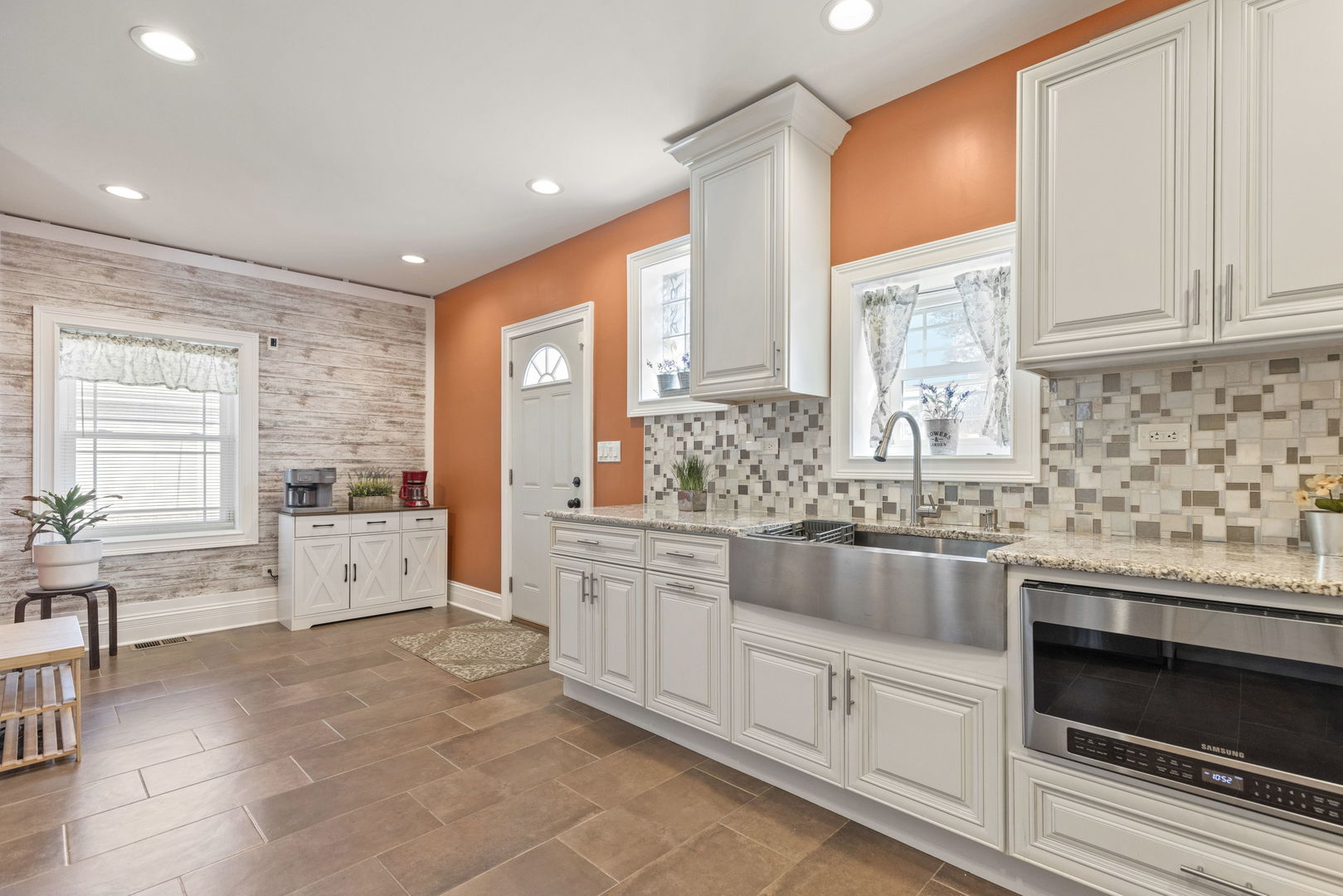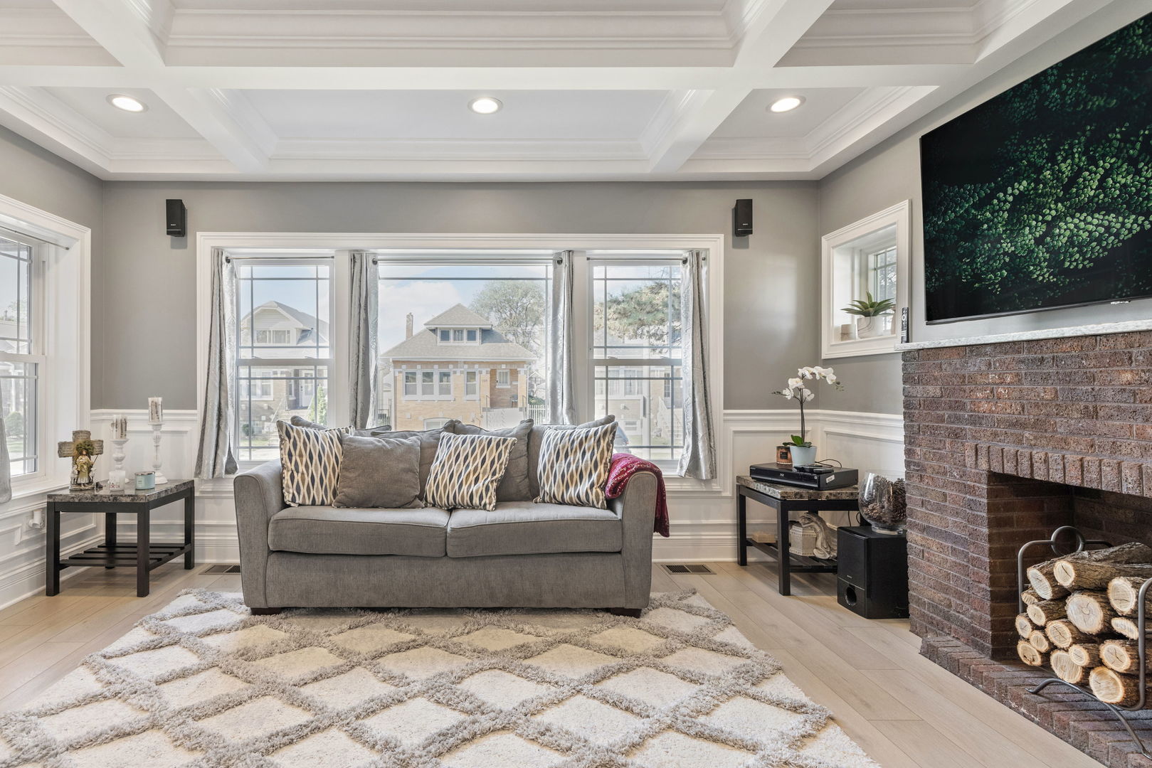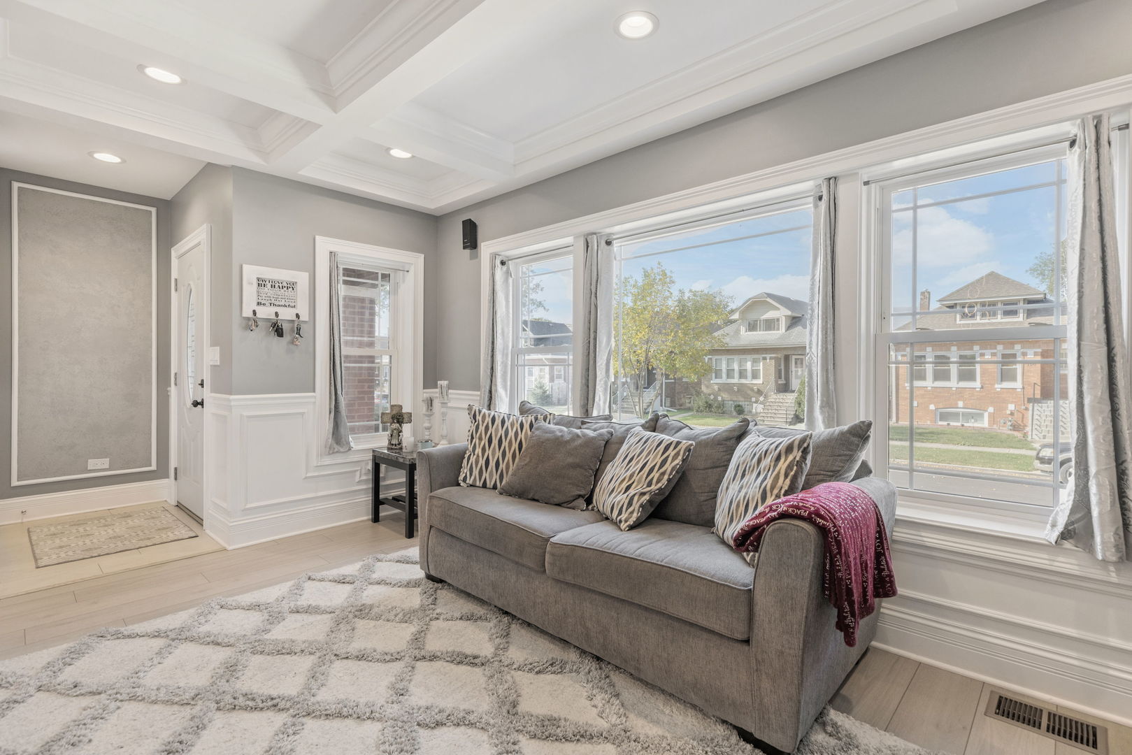 Must see to appreciate this beautifully brick bungalow crafted with meticulous attention to detail! Fully Renovated within the last six years, characteristics better than a new construction! Home showcases thoughtful upgrades, durable materials, and timeless appeal-ready for you to move in and enjoy! Main level features 8.5′ ceilings through out , an open concept living room with coffered ceilings, recessed lights, luxury plank flooring and picture frame moulding walls connecting you to the dinning room. The beautiful spacious kitchen complements the home with custom cabinets, granite countertops, ceramic tile, recessed lights and all stainless steel appliance. The accent wall adds style to the extra space that can be converted to a breakfast area or a coffee bar. First floor bedroom and full bathroom also with high ceilings on this level. The oak stairs lead you to the second level where you are greeted by 9′ ceilings, skylight and carpeted loft/sitting area. Make your way to the commodious master bedroom with vaulted ceilings, recessed lights, his/her closets and accent wall decor. Full bathroom on this level has a walk-in shower and a whirlpool pool tub for your enjoyment and relaxation. The third very spacious bedroom has good closet space, carpet and built in LED lights across its’ ceiling. Full finished basement adds more living space with its family room/recreation area, laundry room and a fourth below-grade room with a full bathroom and counter space/sink ideal for guests or a home office. The layout is both functional and flexible. Walk out basement guides you outside to the expansive yard sitting on a double lot. This home exudes privacy with its fully fenced-in yard, built in solar lights across its fence for the perfect outdoor enjoyment. One car garage. Home is simply designed to meet everyone’s needs & offers the perfect blend of classic charm and modern convenience. Furnace, roof, windows , water heater, deck , siding, all 6 years young. AC & garage door 2023 , fence 2020 .Close to shopping, restaurants, parks, and transportation (minutes to I290 expressway).