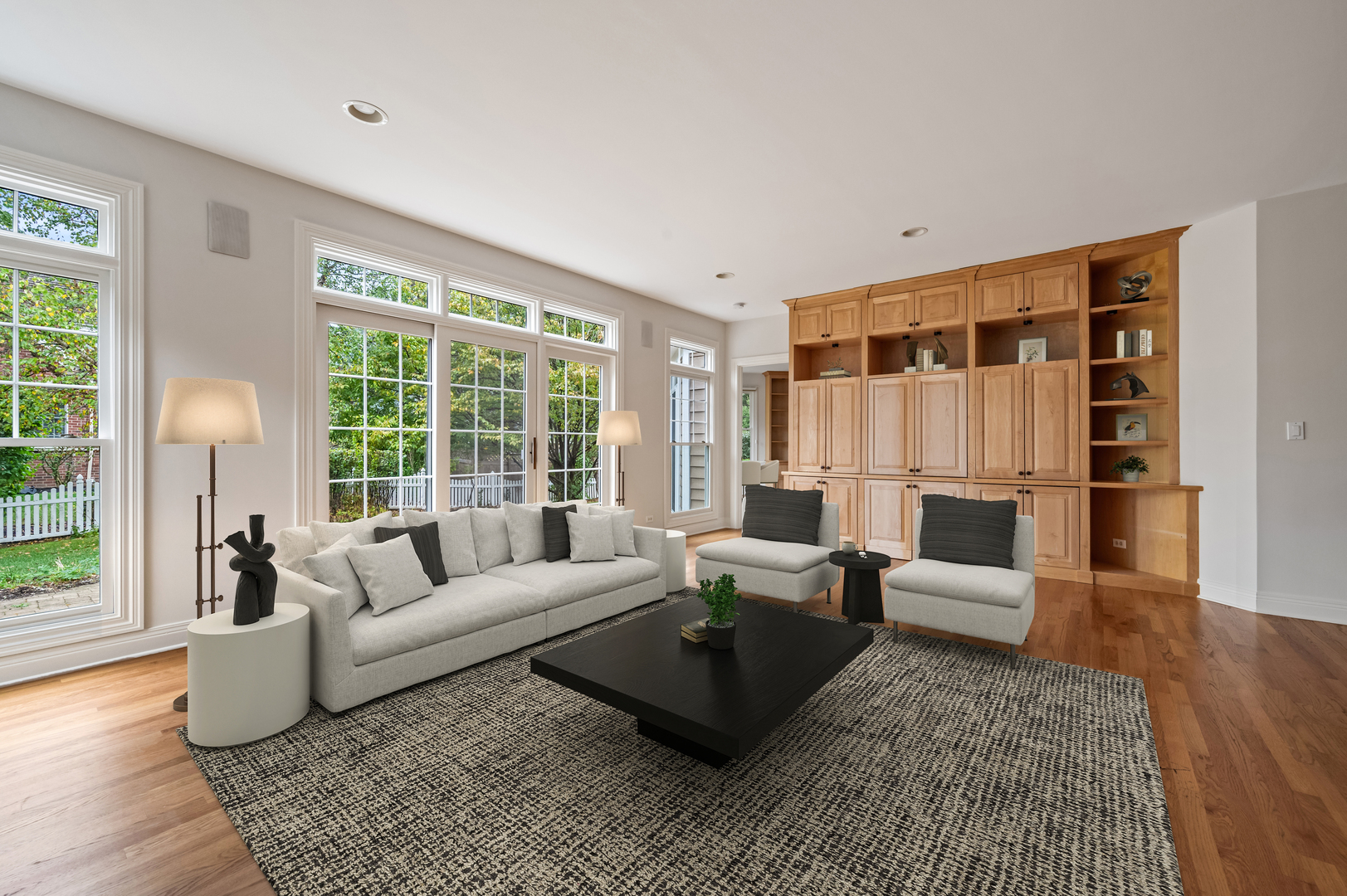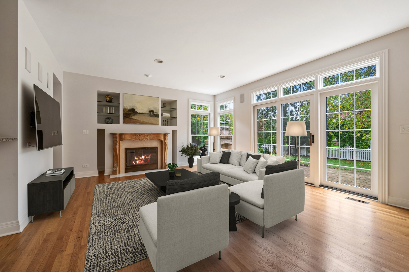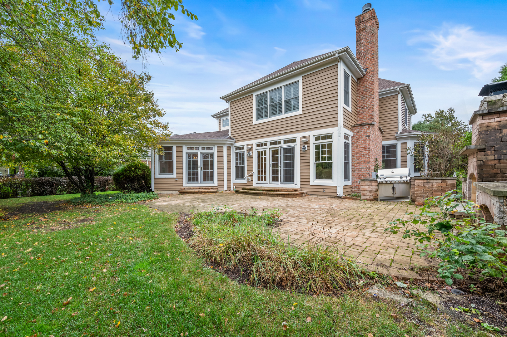Charming elegance defines this desirable Southgate on the Glen home, ideally set on one of the largest lots in the community. Nestled on over 1/4 acre, this enchanting 6-bedroom, 4.1-bath Craftsman-style residence welcomes with covered front porch and private fenced backyard oasis. Thoughtfully designed layout features a first-floor In-Law suite, grand 2nd floor Primary ensuite with attached Office, and cozy playroom alcove tucked between 3 generously-sized Bedrooms. Main-level Family Room, complete with fireplace, custom built-ins, and French doors, offers a serene view of the gardens. Downstairs, the expansive finished Basement includes a Rec Room, 6th Bedroom, 4th full-Bath, and large Arts & Crafts Room-ideal for creativity or additional living space. Step outside to enjoy the beautifully landscaped yard with paver patio, outdoor fireplace, built-in grill, and lush privacy greens. Brand new roof (2025); fresh interior/exterior paint (2025); and brand new carpet (2025). Walk to Glen Town Center’s shops and dining, within minutes of golf, tennis, pickleball, running trails and Park Center. Located in Glenview’s award-winning school district, this home offers an unmatched blend of style and comfort in this most idyllic premier location.