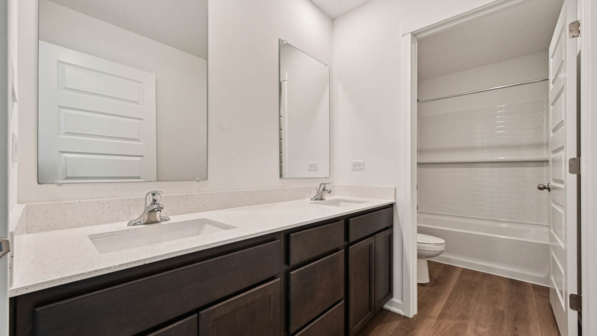 Discover yourself at 15103 W Oxford Ln. in Manhattan, IL, a beautiful new home in our Ivanhoe community. This home is ready for a quick move-in! This large, scenic homesite with a lookout basement, concrete driveway and fully sodded yard. This Holcombe plan offers 2,356 square feet of living space with a flex room, 4 bedrooms, 2.5 baths, 9-foot ceilings on first floor. Entertaining will be easy in this open-concept kitchen and family room layout with a large island with an overhang for stools, 36-inch designer cabinetry with all the storage space you will need. Additionally, the kitchen features a walk-in pantry, modern stainless-steel appliances, quartz countertops, and easy-to-maintain luxury vinyl plank flooring. Enjoy your private getaway with your large primary bedroom and en suite bathroom with quartz top vanity featuring 2 sinks, and low maintenance walk-in shower with clear glass shower doors. Convenient second floor walk-in laundry room, 3 additional bedrooms with a full second bath and a linen closet complete the second floor. All Chicago homes include our America’s Smart Home Technology. Interior Photos are of similar home and model home. Actual home built may vary.