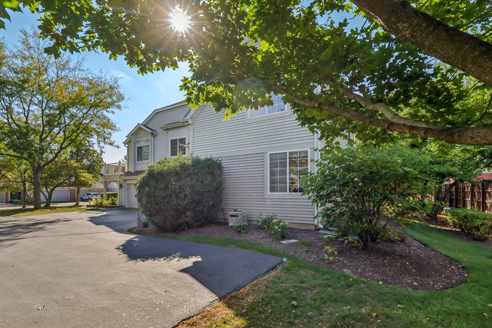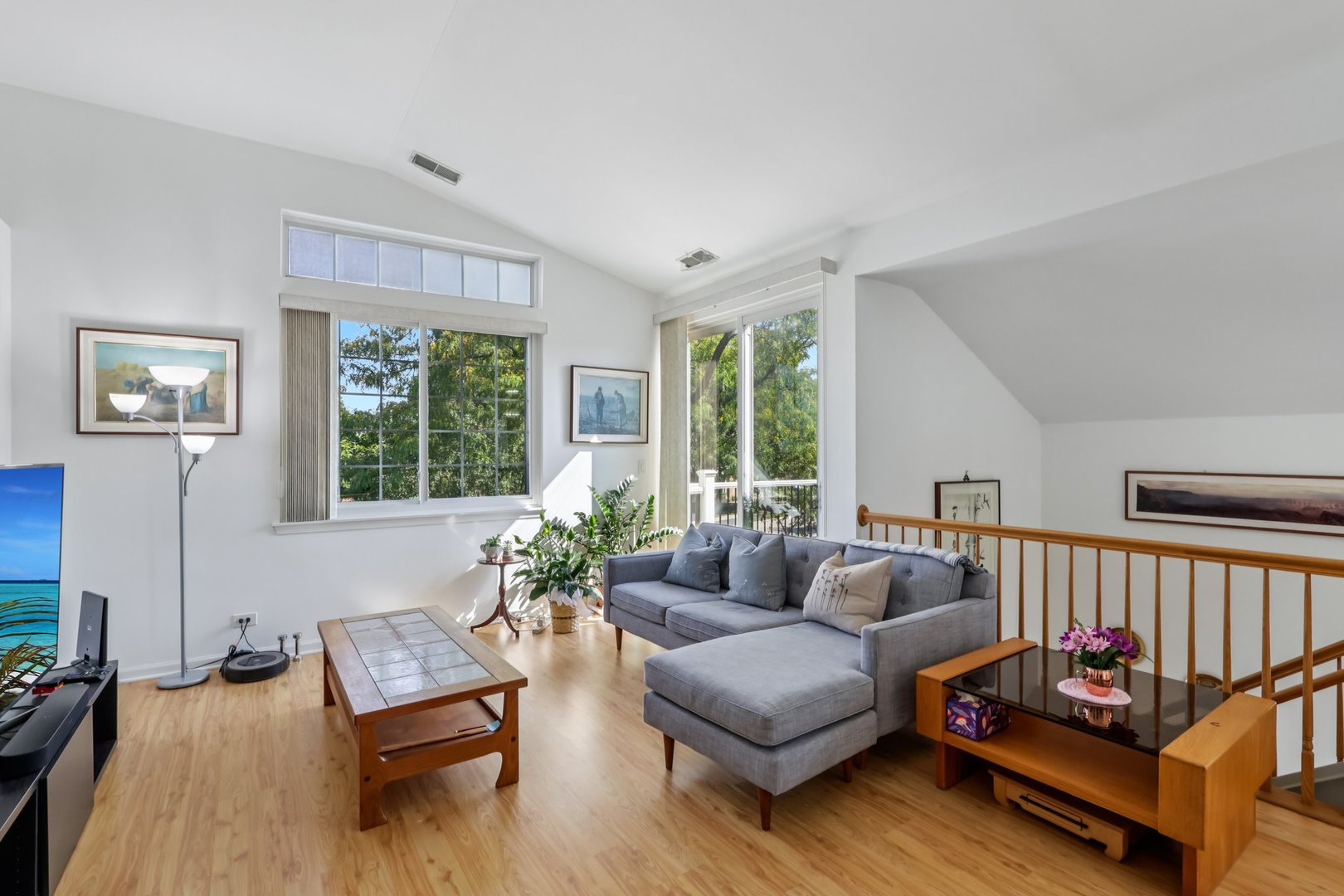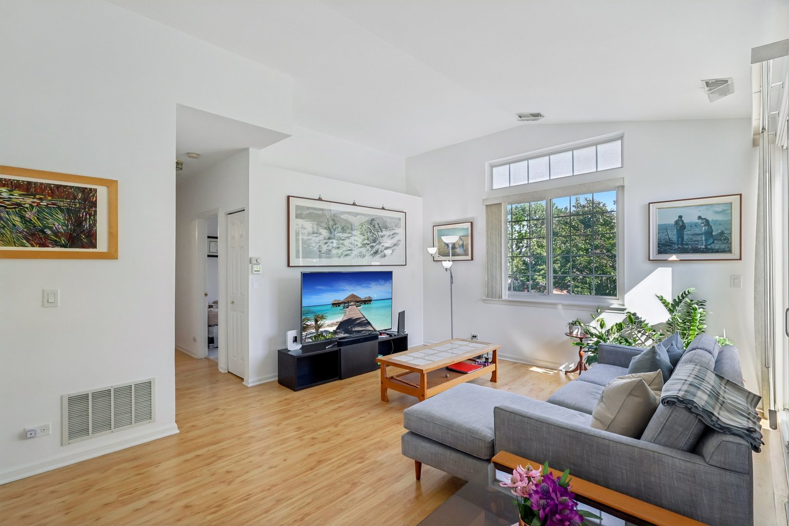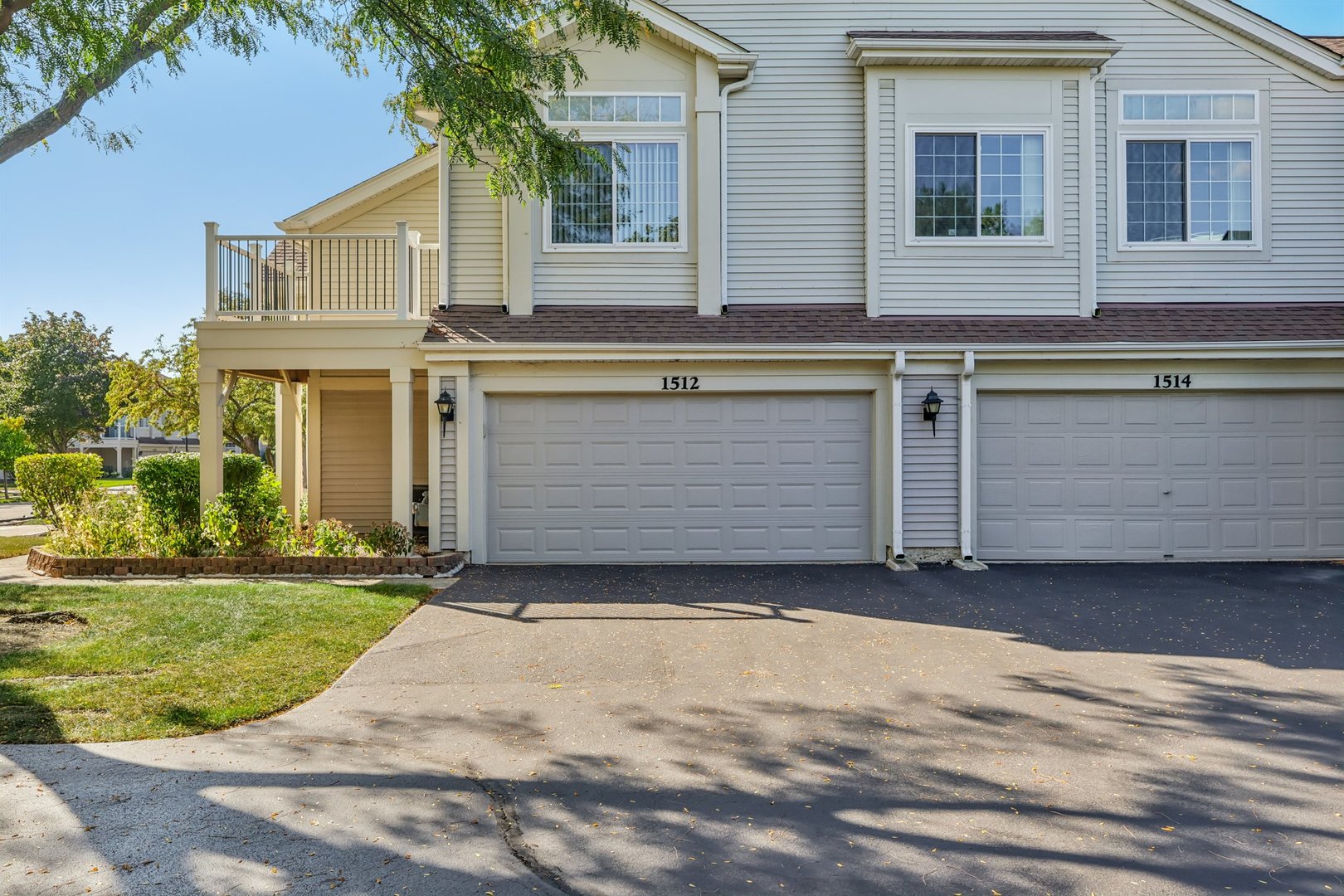 Light & bright 2-Bed/2-Bth 2nd floor townhome in great Palatine location! The first thing you’ll notice as you walk up the stairs to the main living level is the abundance of windows and vaulted ceilings letting in plenty of natural light. The cozy living room has a fireplace, sliders leading to your private balcony and gorgeous wood laminate floors that flow throughout much of the home. The eat-in kitchen is spacious and has an island, granite countertops and all SS appliances. You’ll also find a formal dining room off of the kitchen, currently being used as an office. The Primary suite also has vaulted ceilings allowing plenty of light to pour in and has an en-suite bath and walk-in closet. An additional bedroom, full bath and the laundry room round out this home. Attached 2-car garage and plenty of space for additional parking! Updates include new furnace & water heater 2019 and newer windows, blinds & kitchen counters. Centrally located close to parks and forest preserves, seconds away from groceries, restaurants, shopping and all that Palatine has to offer. Schedule your tour today!