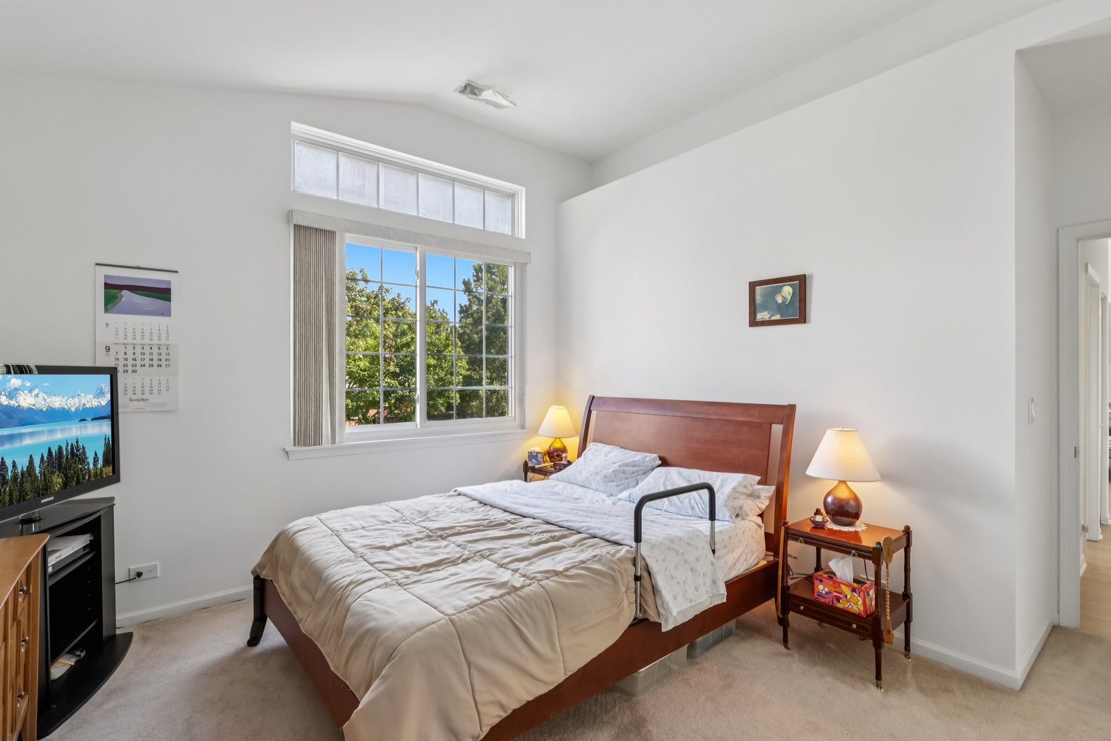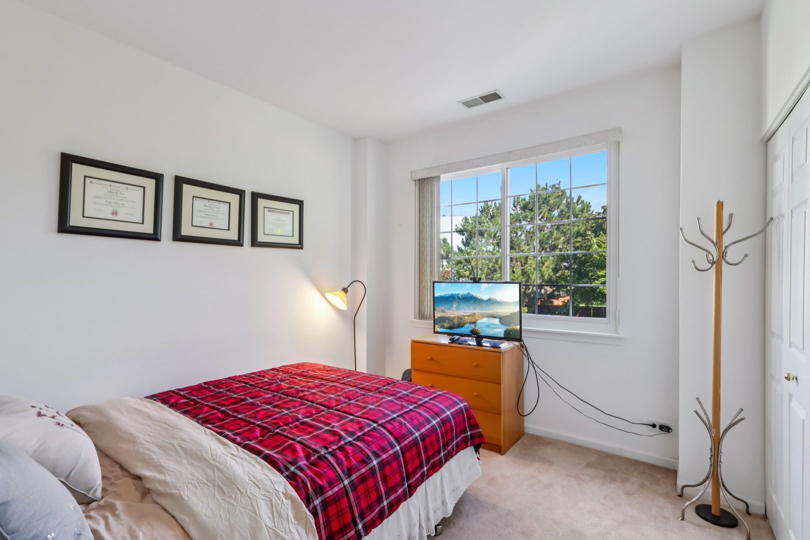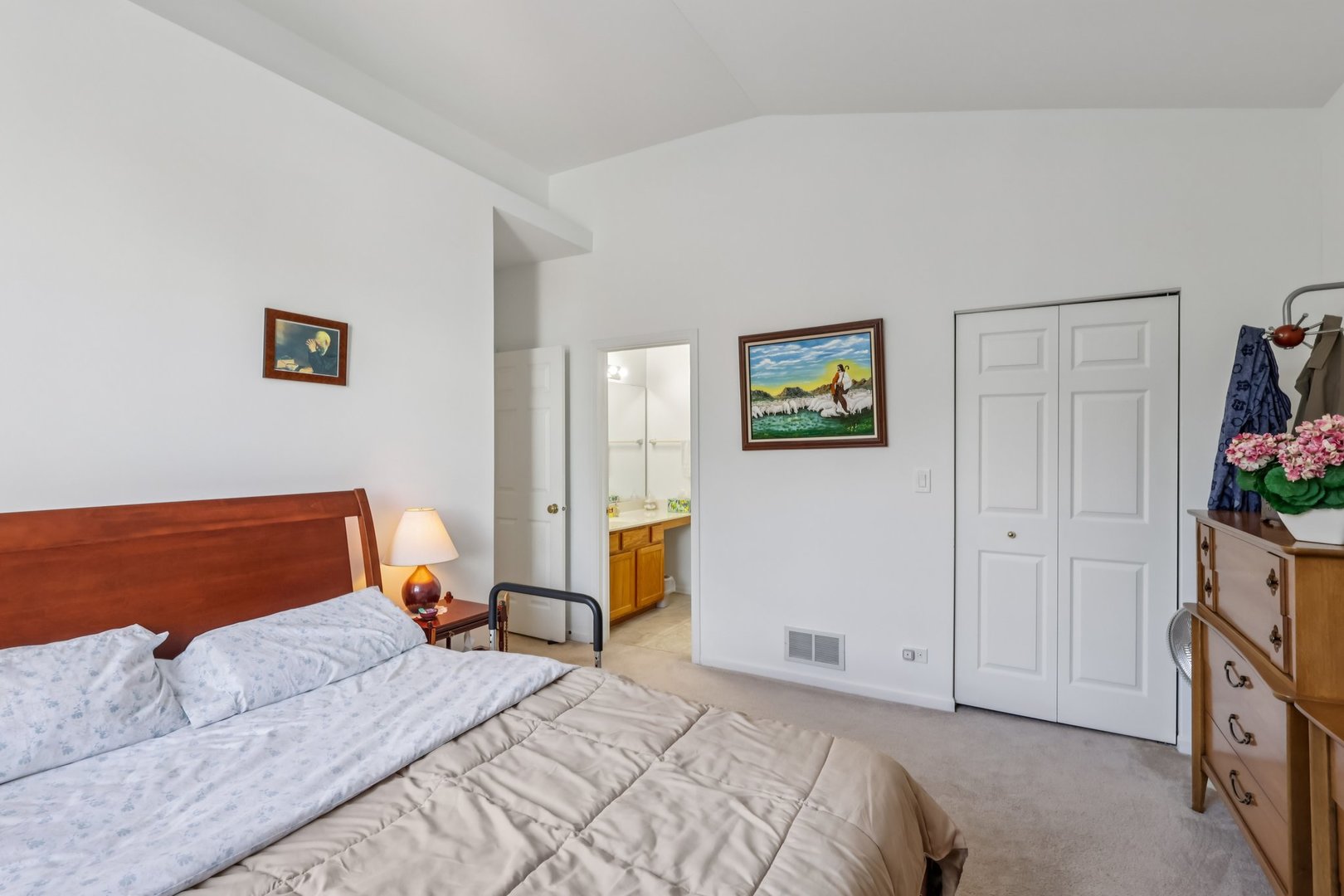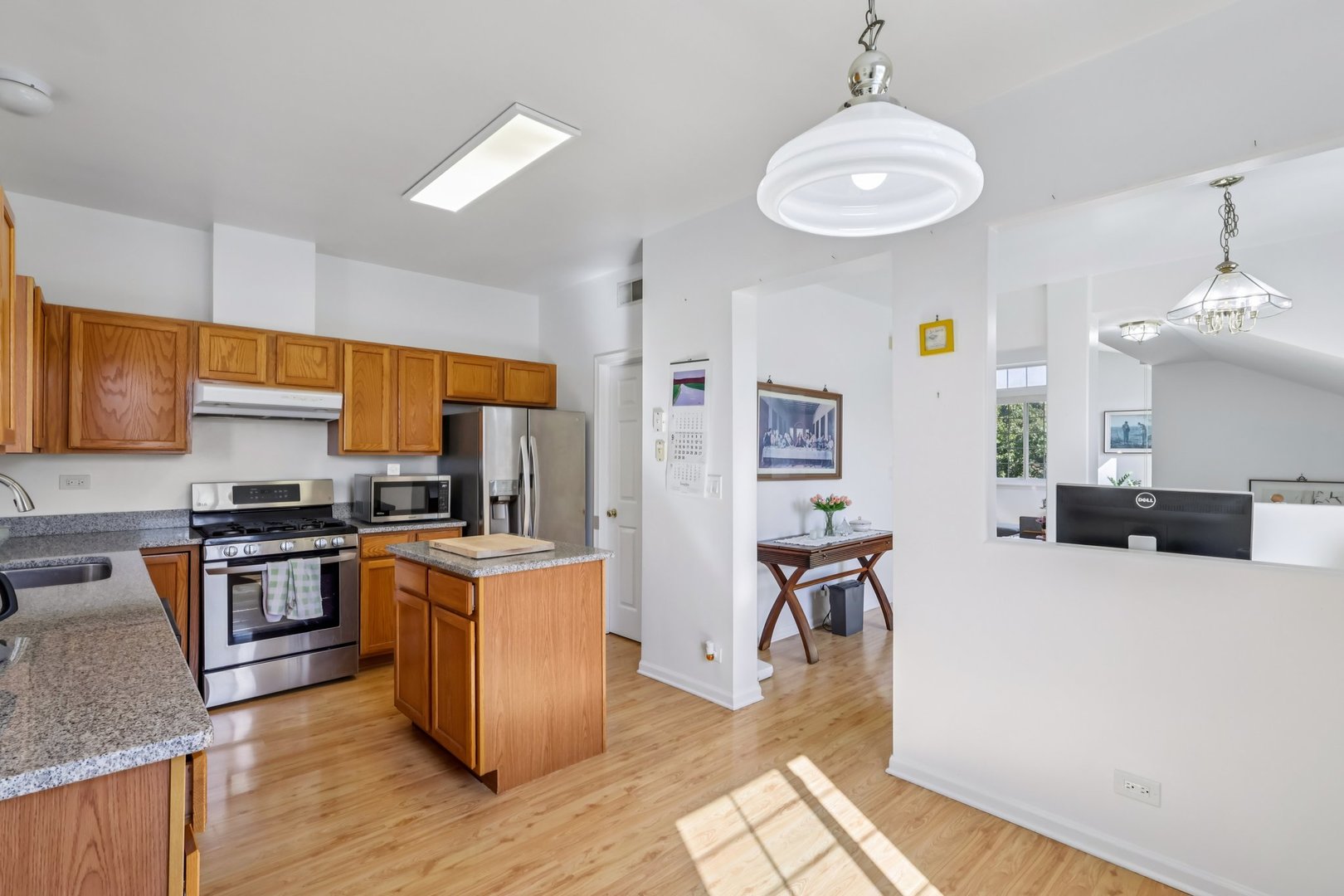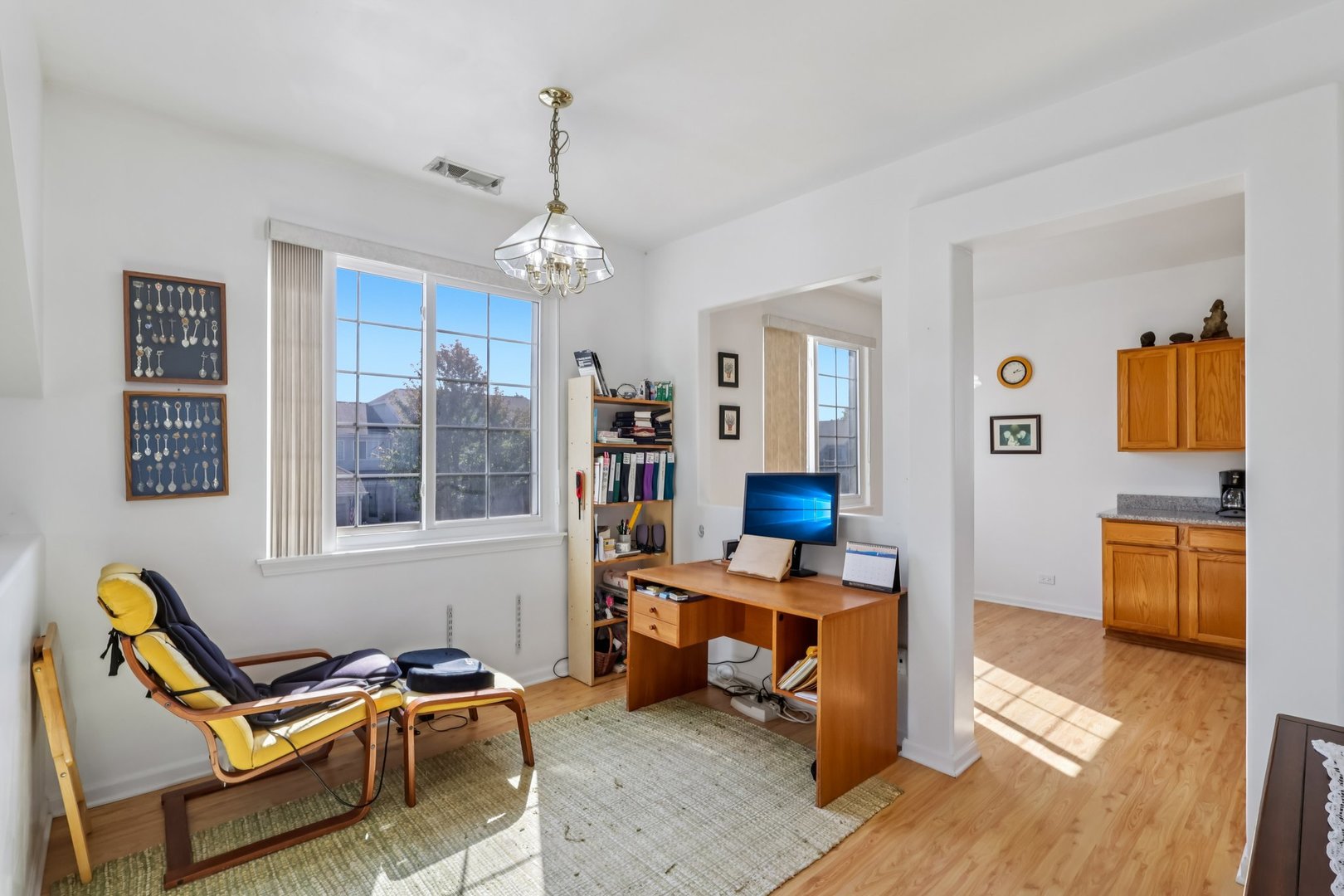 Light & bright 2-Bed/2-Bth 2nd floor townhome in great Palatine location! The first thing you’ll notice as you walk up the stairs to the main living level is the abundance of windows and vaulted ceilings letting in plenty of natural light. The cozy living room has a fireplace, sliders leading to your private balcony and gorgeous wood laminate floors that flow throughout much of the home. The eat-in kitchen is spacious and has an island, granite countertops and all SS appliances. You’ll also find a formal dining room off of the kitchen, currently being used as an office. The Primary suite also has vaulted ceilings allowing plenty of light to pour in and has an en-suite bath and walk-in closet. An additional bedroom, full bath and the laundry room round out this home. Attached 2-car garage and plenty of space for additional parking! Updates include new furnace & water heater 2019 and newer windows, blinds & kitchen counters. Centrally located close to parks and forest preserves, seconds away from groceries, restaurants, shopping and all that Palatine has to offer. Schedule your tour today!
