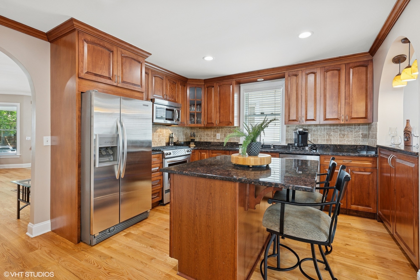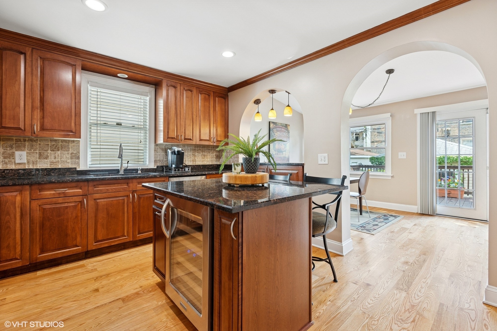 Come home to a perfect Edgewater 3 bedroom, 2.5 bath home with a fenced back yard and large deck, and 1.5 car garage with electric charging station, all nestled on a beautiful tree lined block on Highland Ave. This classic charmer has a great front porch, all newly painted and detailed, that opens into a large living room framed by a gas fireplace on one side, and a gorgeous staircase leading to all three bedrooms on the second floor. Bay windows bathe the main level with lots of natural light. The chef’s kitchen has gorgeous granite, a large island with breakfast bar, and stainless steel appliances, including a wine fridge. The dining area, with a skylight adding beautiful exposure, opens on to a spacious deck, perfect for your entertaining and barbeques. Three bedrooms up are all good sized, with nice closets. The second floor full bathroom is all new, redone just before market. The second full bath is in the lower level with a large marble jacuzzi. This fully finished lower level offers plenty of additional flexible space for play, or a home office. A laundry and utility room adds organization and storage. Dual zoned HVAC systems were both replaced just 2 years ago, as well as a water heater only 1 year old. A large unfinished attic offers amazing potential for expansion. This special home was fully repainted, the hardwood floors were refinished on the entire main level, front porch and back deck were power washed and painted, as well as the full upstairs bathroom renovation. This is the one! All this is just steps from Devon Market, Starbucks, Clark/Devon Hardware, Clark St bus, and the Loyola el stop.