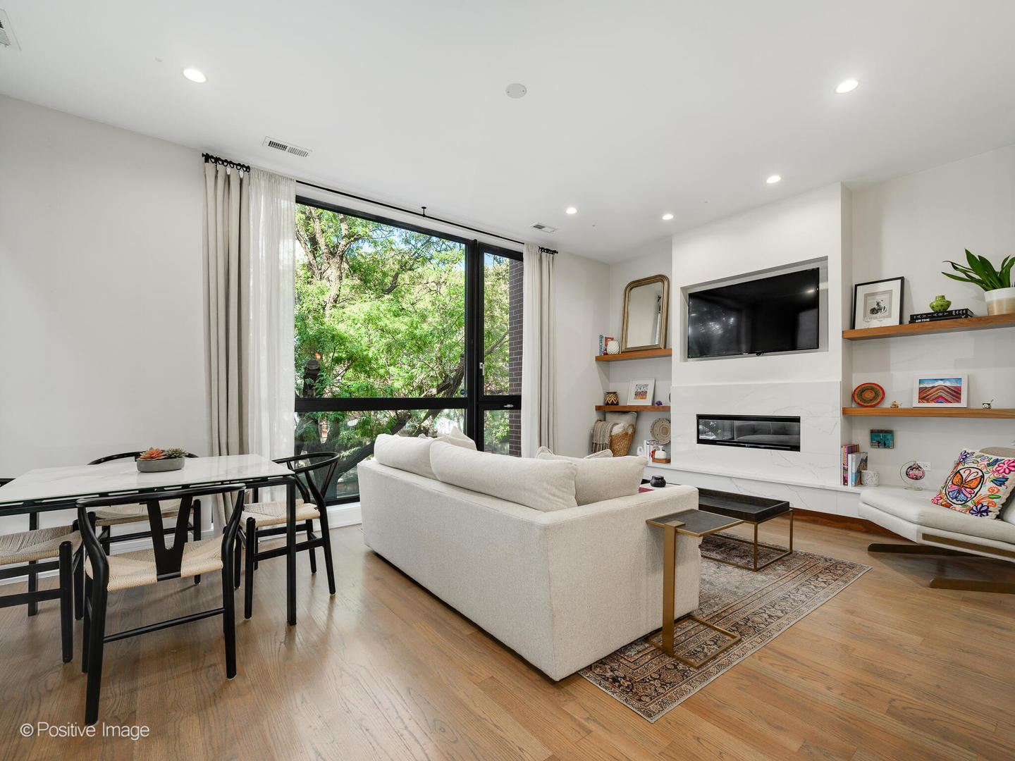 Welcome to this stunning, like-new (built in 2020) 3-bedroom, 2-bath home in a boutique all-brick building located in the heart of West Town. This residence showcases exceptional design, high-end finishes, and thoughtful custom details throughout. Upon entry, you’ll be greeted by floor-to-ceiling windows that flood the home with natural light and nearly 10′ ceilings that enhance the spacious, airy feel. The chef’s kitchen features 42″ custom cabinetry, quartz countertops, a premium stainless steel appliance package, and a large island with breakfast bar seating-perfect for entertaining.The open-concept layout flows seamlessly into the inviting living area, complete with a gas fireplace framed by elegant floating shelves-an ideal setting for relaxing or hosting gatherings.The primary suite comfortably accommodates a king-size bed and offers a luxurious en suite bath with dual vanities, heated floors, a heated towel rack, and a walk-in shower with a rain shower head. All closets, including the primary, are professionally organized for maximum storage efficiency. Additional highlights include an in-unit front-loading washer/dryer, surround sound wiring, a private rear deck with composite decking ideal for grilling, and one garage parking space.Enjoy nearby green spaces such as Union Park and Bickerdike Square Park, featuring one of the city’s best dog runs. Excellent access to public transportation with the Green Line, Ashland “L,” and Grand CTA stops just minutes away. Close proximity to Fulton Market, West Loop, and Ukrainian Village, with easy access to the expressway.A perfect blend of luxury, functionality, and location – this home truly has it all! Garage wired for EV charger.