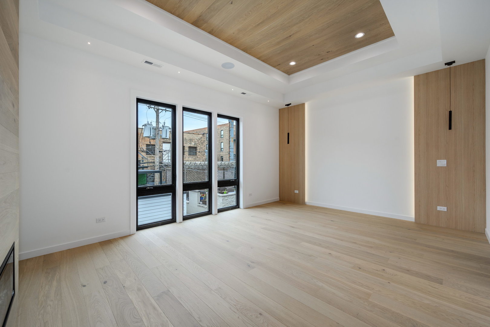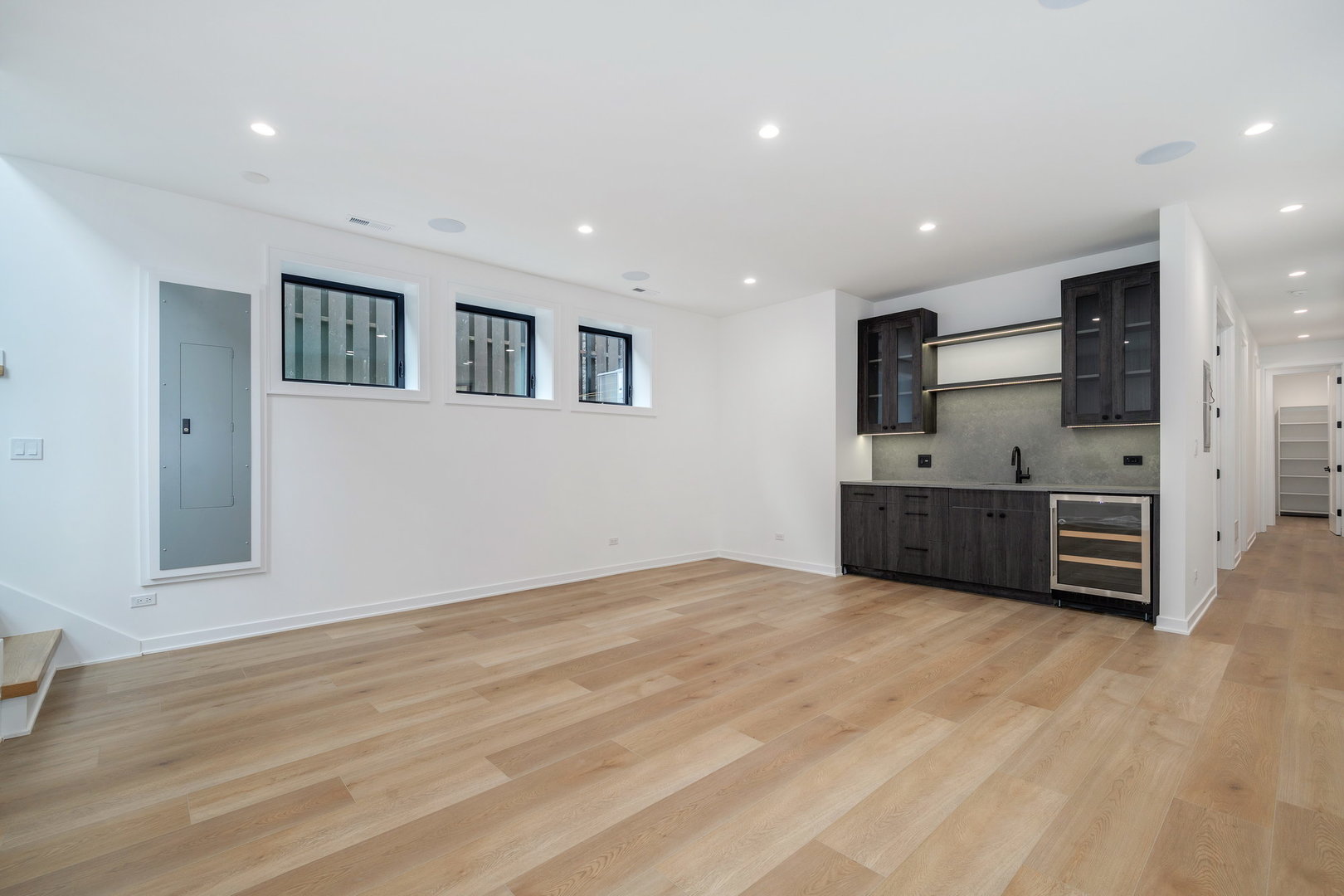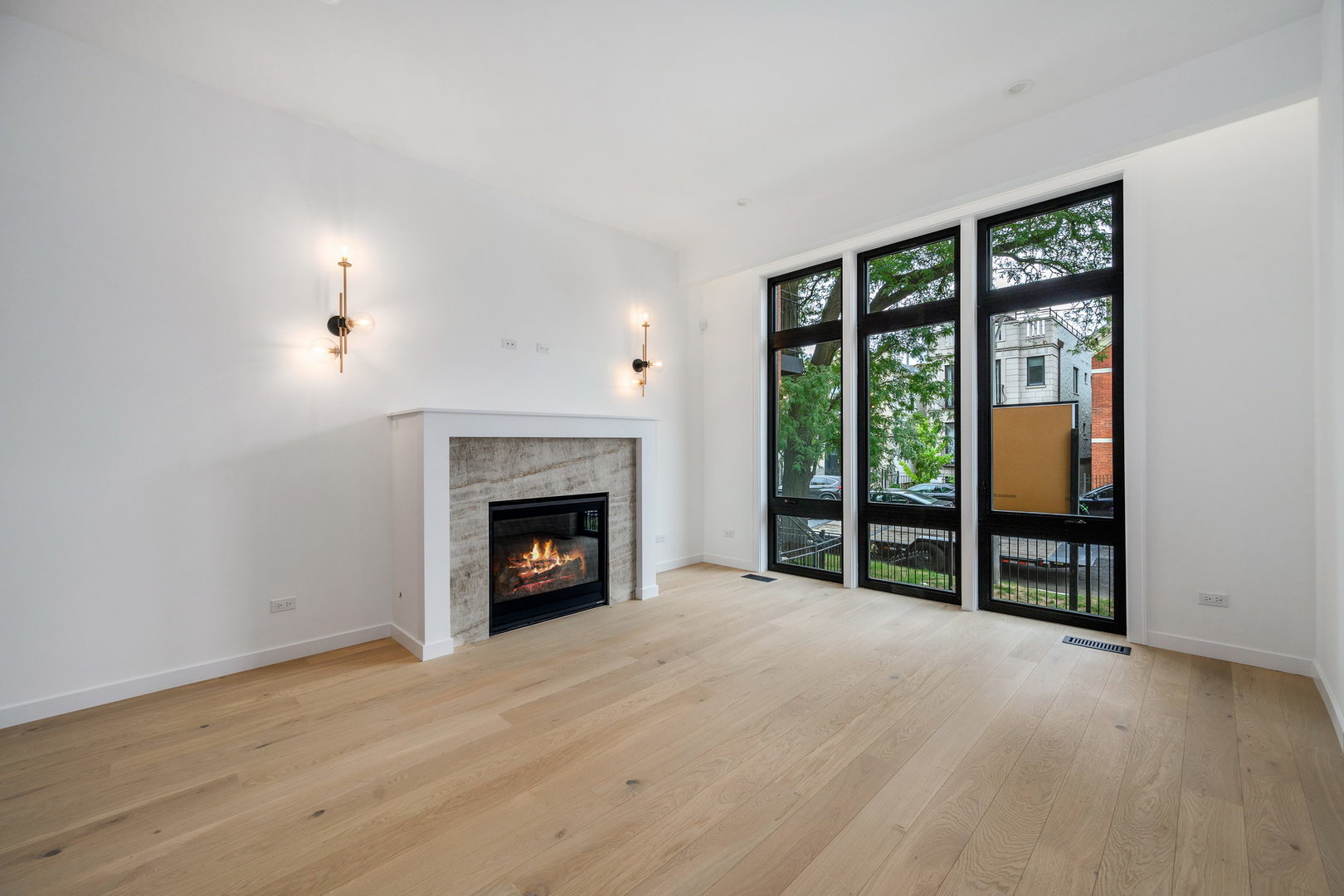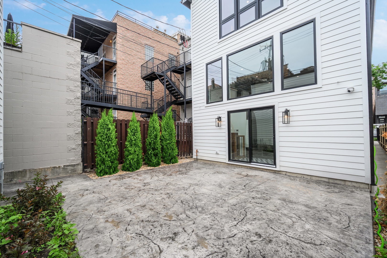 Stunning New Construction Home in West Town. This completed 5-bedroom, 4.1-bathroom single-family residence is ready for its new owner. Thoughtfully designed with a modern aesthetic, the home features soaring ceilings, wide-plank oak hardwood floors, and oversized windows that fill the space with natural light. The open-concept main level is ideal for contemporary city living, offering a spacious dining area and a sophisticated living room anchored by a sleek gas fireplace. The chef’s kitchen is a true showstopper, showcasing a large center island topped with beautiful Taj Mahal quartzite, custom cabinetry, Thermador stainless steel appliances, a matching quartz backsplash, and a walk-in pantry. A cozy family room with built-ins and a second gas fireplace provides a welcoming space to relax or entertain. Upstairs, the luxurious primary suite offers a serene retreat with a fireplace, a spacious walk-in closet with custom organizers, and a spa-like bathroom featuring a freestanding soaking tub, steam shower, double vanities, and radiant heated floors. Two additional bedrooms, each with en-suite bathrooms, and a conveniently located laundry room complete the second level. The fully finished lower level is an entertainer’s dream, boasting a large recreation room with a wet bar, two more bedrooms, a full bathroom, abundant closet space, radiant heated floors, a second laundry room, and a custom-designed mudroom for added functionality. Additional features include pre-wiring for sound, a detached 2-car garage with a rooftop deck and stylish pergola, and a stamped concrete patio between the home and garage-perfect for outdoor gatherings or peaceful moments. The property is fully gated and equipped with a front gate intercom system. Located just moments from the vibrant West Loop, this residence perfectly blends modern luxury, comfort, and city convenience.