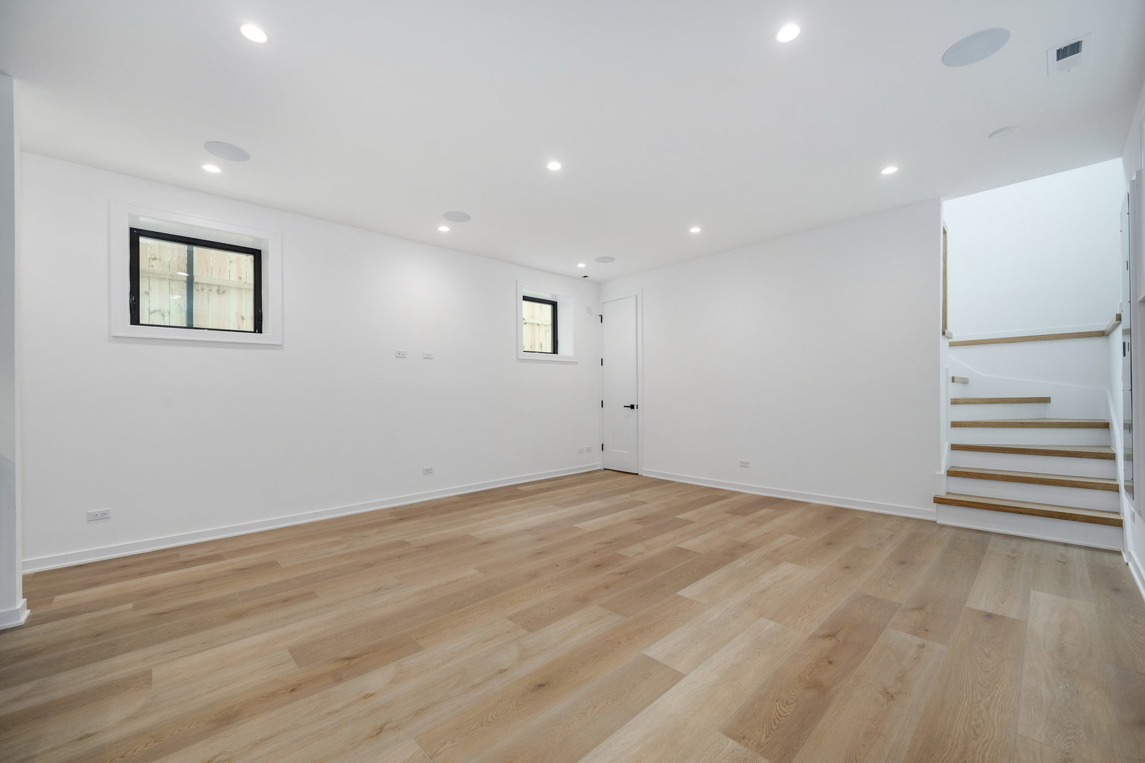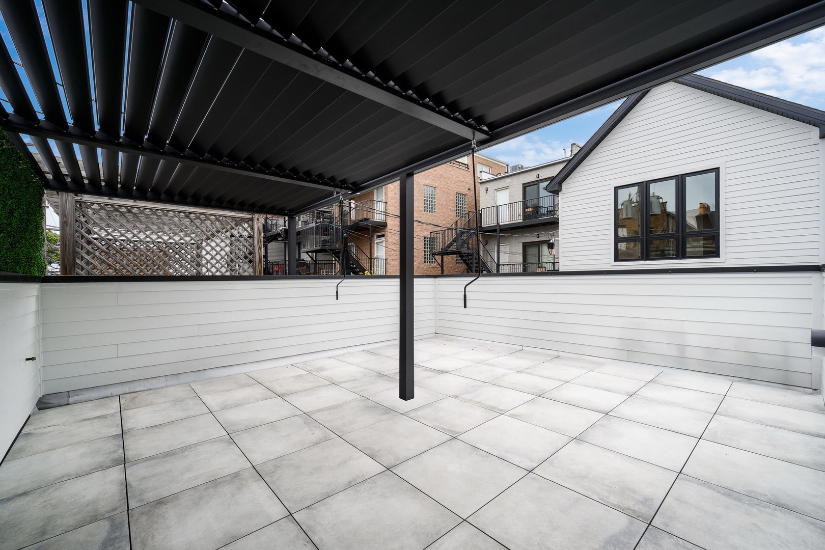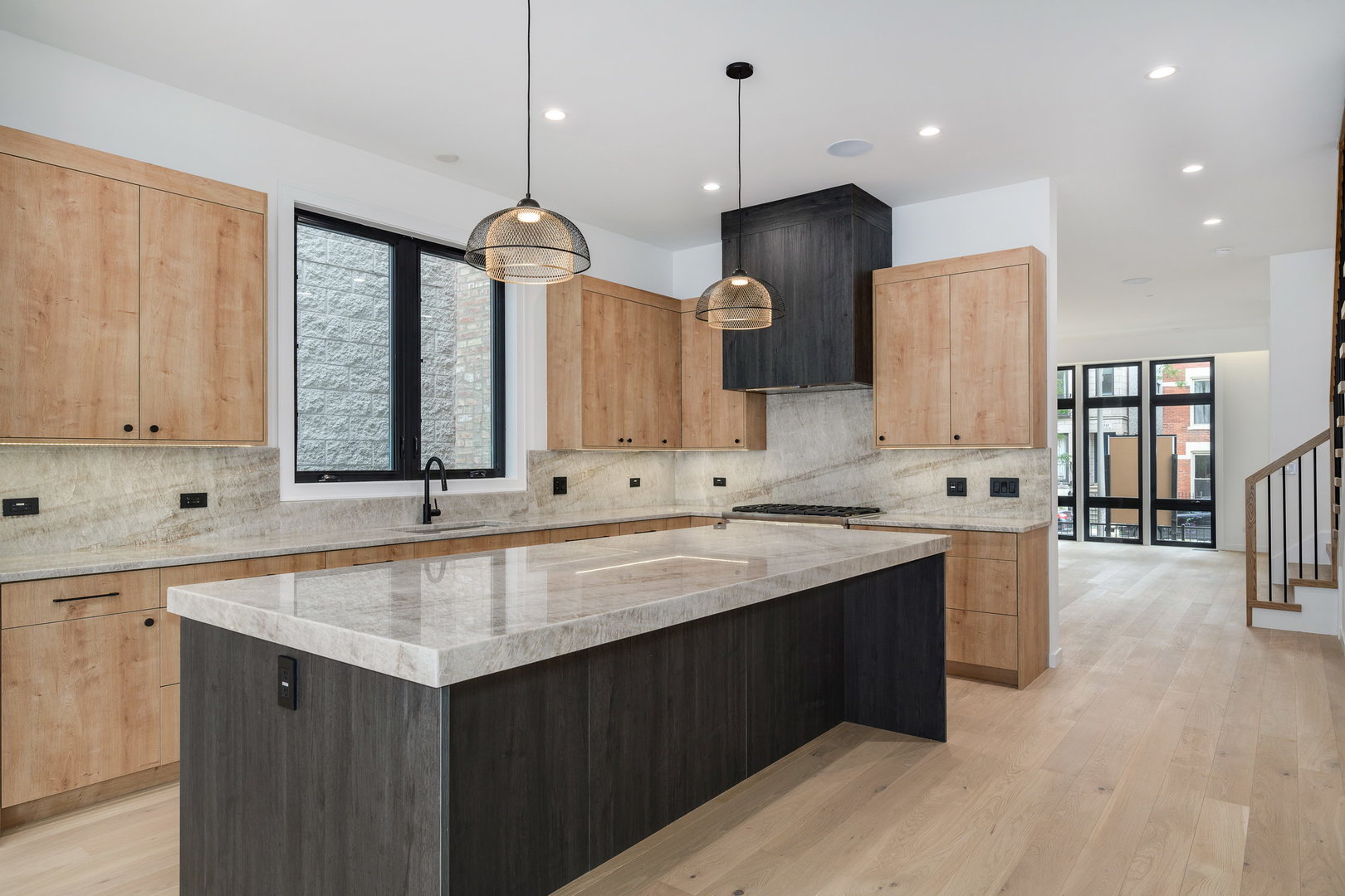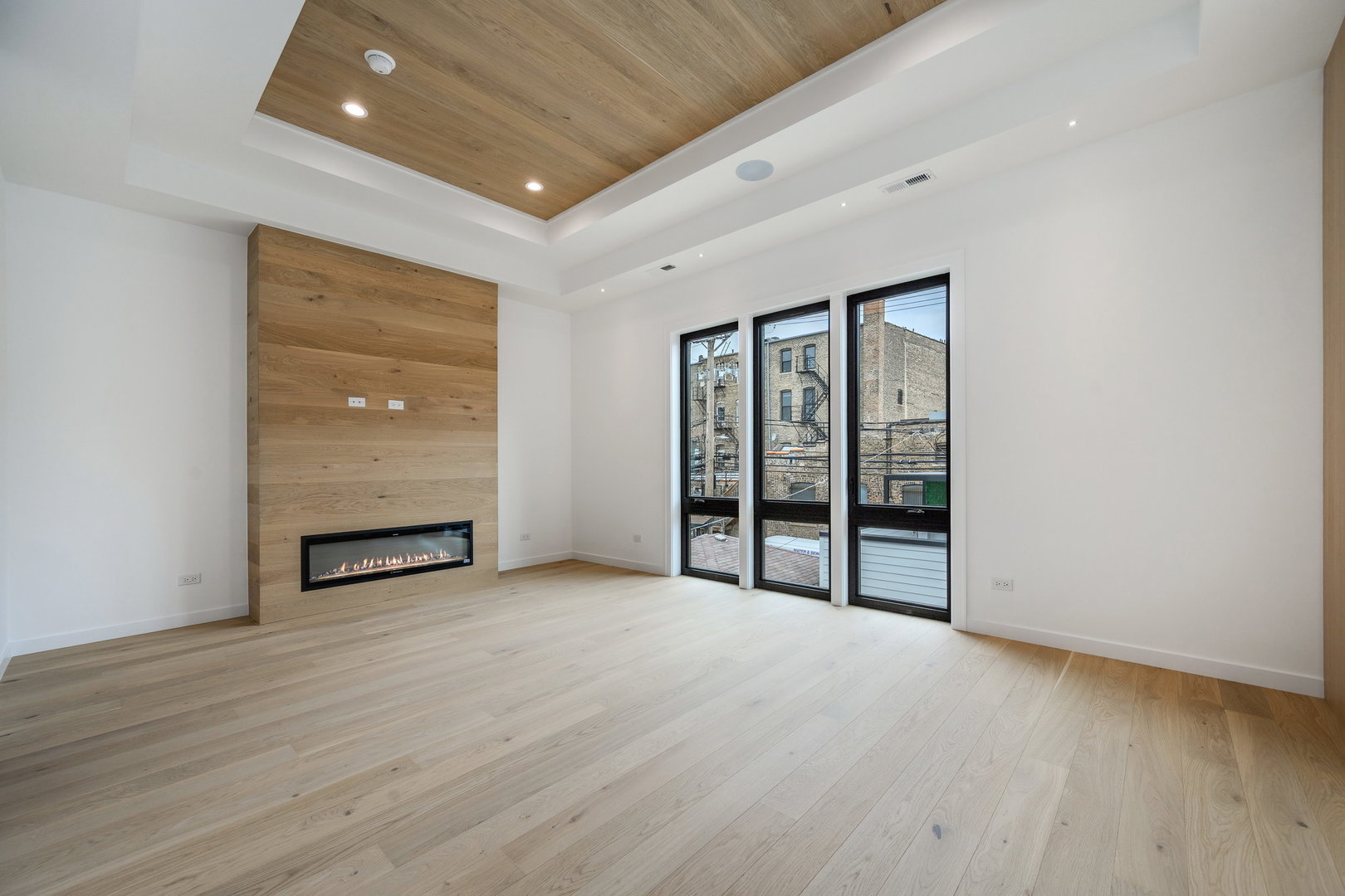 Stunning New Construction Home in West Town. This completed 5-bedroom, 4.1-bathroom single-family residence is ready for its new owner. Thoughtfully designed with a modern aesthetic, the home features soaring ceilings, wide-plank oak hardwood floors, and oversized windows that fill the space with natural light. The open-concept main level is ideal for contemporary city living, offering a spacious dining area and a sophisticated living room anchored by a sleek gas fireplace. The chef’s kitchen is a true showstopper, showcasing a large center island topped with beautiful Taj Mahal quartzite, custom cabinetry, Thermador stainless steel appliances, a matching quartz backsplash, and a walk-in pantry. A cozy family room with built-ins and a second gas fireplace provides a welcoming space to relax or entertain. Upstairs, the luxurious primary suite offers a serene retreat with a fireplace, a spacious walk-in closet with custom organizers, and a spa-like bathroom featuring a freestanding soaking tub, steam shower, double vanities, and radiant heated floors. Two additional bedrooms, each with en-suite bathrooms, and a conveniently located laundry room complete the second level. The fully finished lower level is an entertainer’s dream, boasting a large recreation room with a wet bar, two more bedrooms, a full bathroom, abundant closet space, radiant heated floors, a second laundry room, and a custom-designed mudroom for added functionality. Additional features include pre-wiring for sound, a detached 2-car garage with a rooftop deck and stylish pergola, and a stamped concrete patio between the home and garage-perfect for outdoor gatherings or peaceful moments. The property is fully gated and equipped with a front gate intercom system. Located just moments from the vibrant West Loop, this residence perfectly blends modern luxury, comfort, and city convenience.