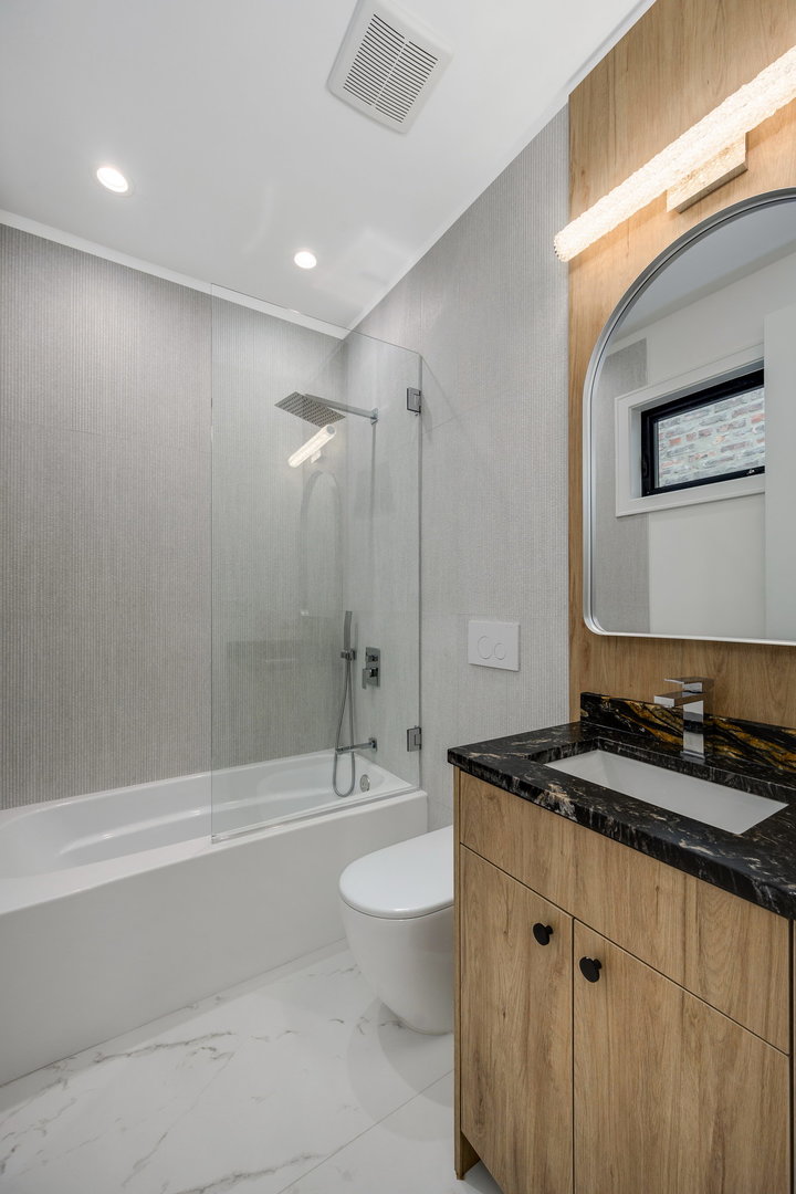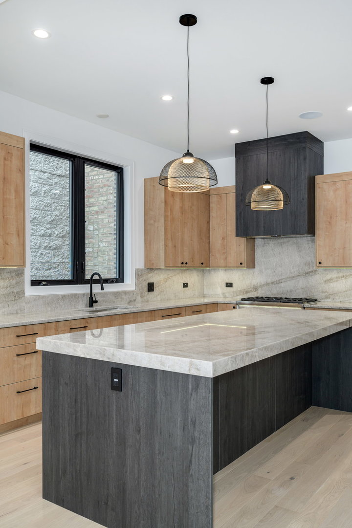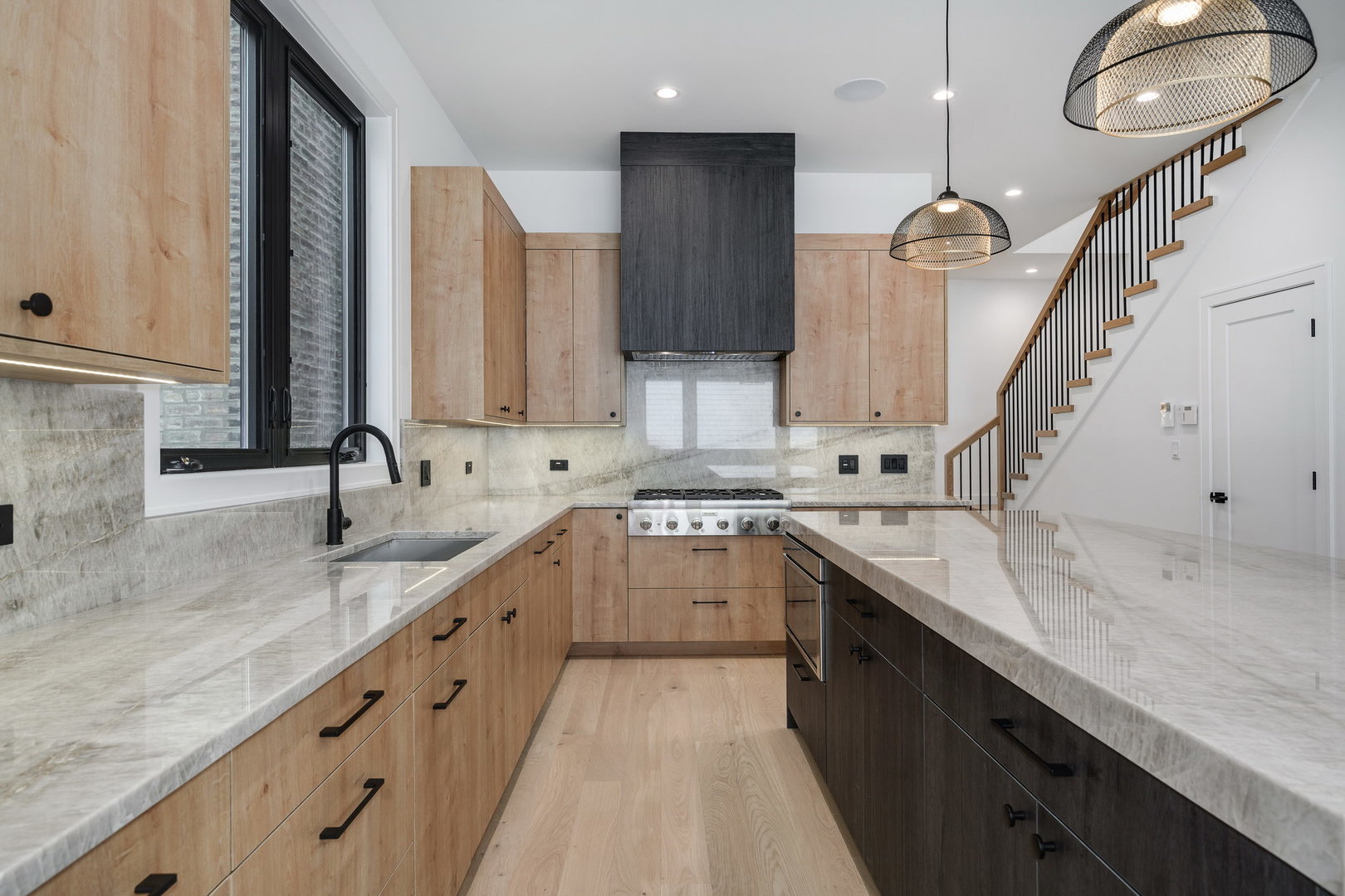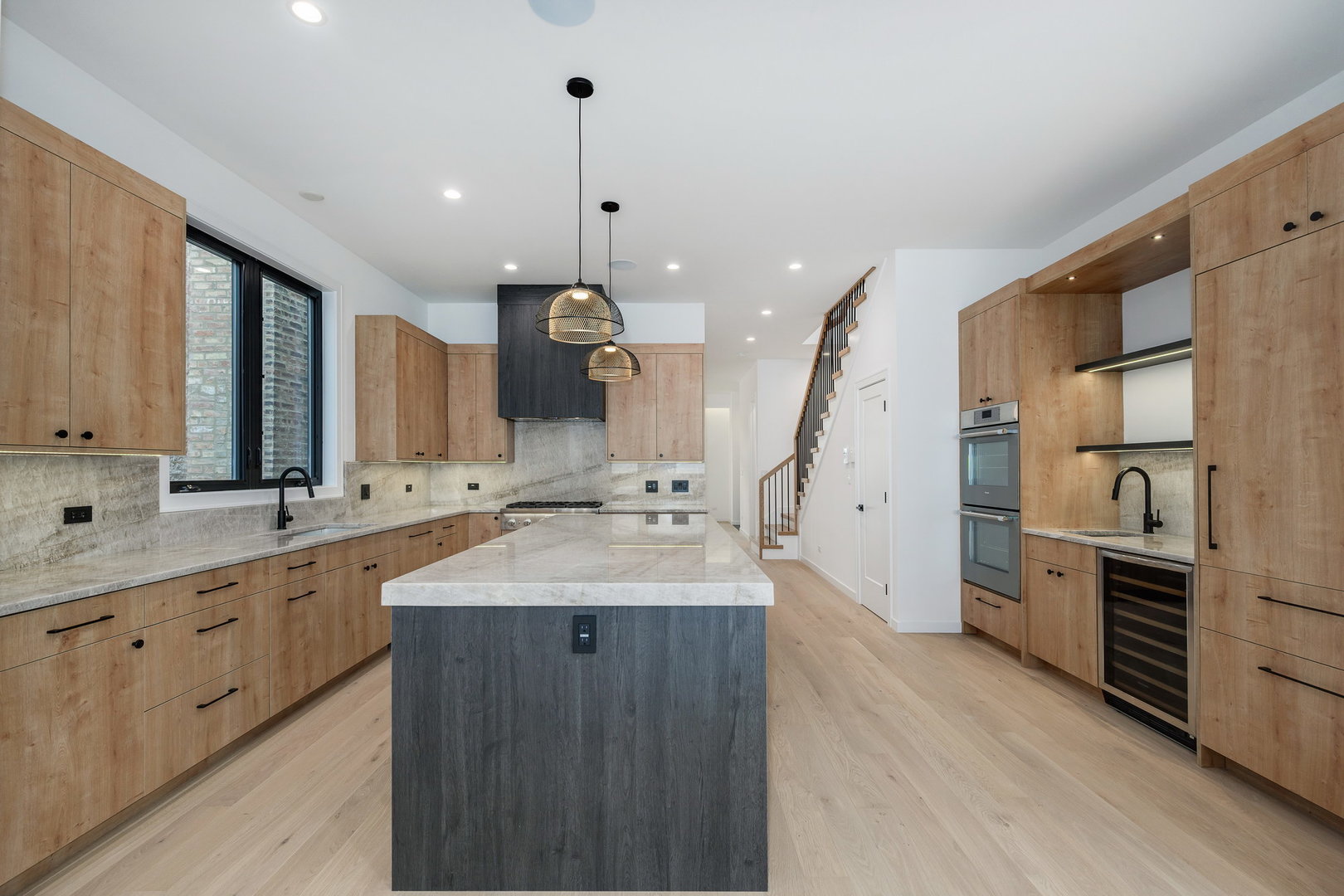 Stunning New Construction Home in West Town. This completed 5-bedroom, 4.1-bathroom single-family residence is ready for its new owner. Thoughtfully designed with a modern aesthetic, the home features soaring ceilings, wide-plank oak hardwood floors, and oversized windows that fill the space with natural light. The open-concept main level is ideal for contemporary city living, offering a spacious dining area and a sophisticated living room anchored by a sleek gas fireplace. The chef’s kitchen is a true showstopper, showcasing a large center island topped with beautiful Taj Mahal quartzite, custom cabinetry, Thermador stainless steel appliances, a matching quartz backsplash, and a walk-in pantry. A cozy family room with built-ins and a second gas fireplace provides a welcoming space to relax or entertain. Upstairs, the luxurious primary suite offers a serene retreat with a fireplace, a spacious walk-in closet with custom organizers, and a spa-like bathroom featuring a freestanding soaking tub, steam shower, double vanities, and radiant heated floors. Two additional bedrooms, each with en-suite bathrooms, and a conveniently located laundry room complete the second level. The fully finished lower level is an entertainer’s dream, boasting a large recreation room with a wet bar, two more bedrooms, a full bathroom, abundant closet space, radiant heated floors, a second laundry room, and a custom-designed mudroom for added functionality. Additional features include pre-wiring for sound, a detached 2-car garage with a rooftop deck and stylish pergola, and a stamped concrete patio between the home and garage-perfect for outdoor gatherings or peaceful moments. The property is fully gated and equipped with a front gate intercom system. Located just moments from the vibrant West Loop, this residence perfectly blends modern luxury, comfort, and city convenience.