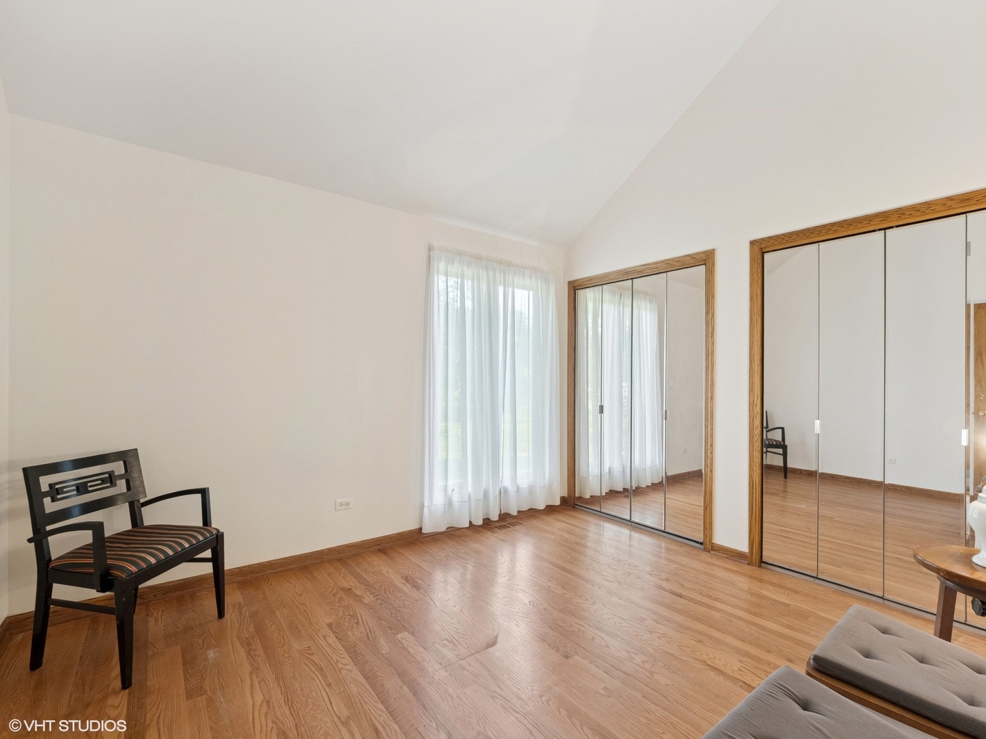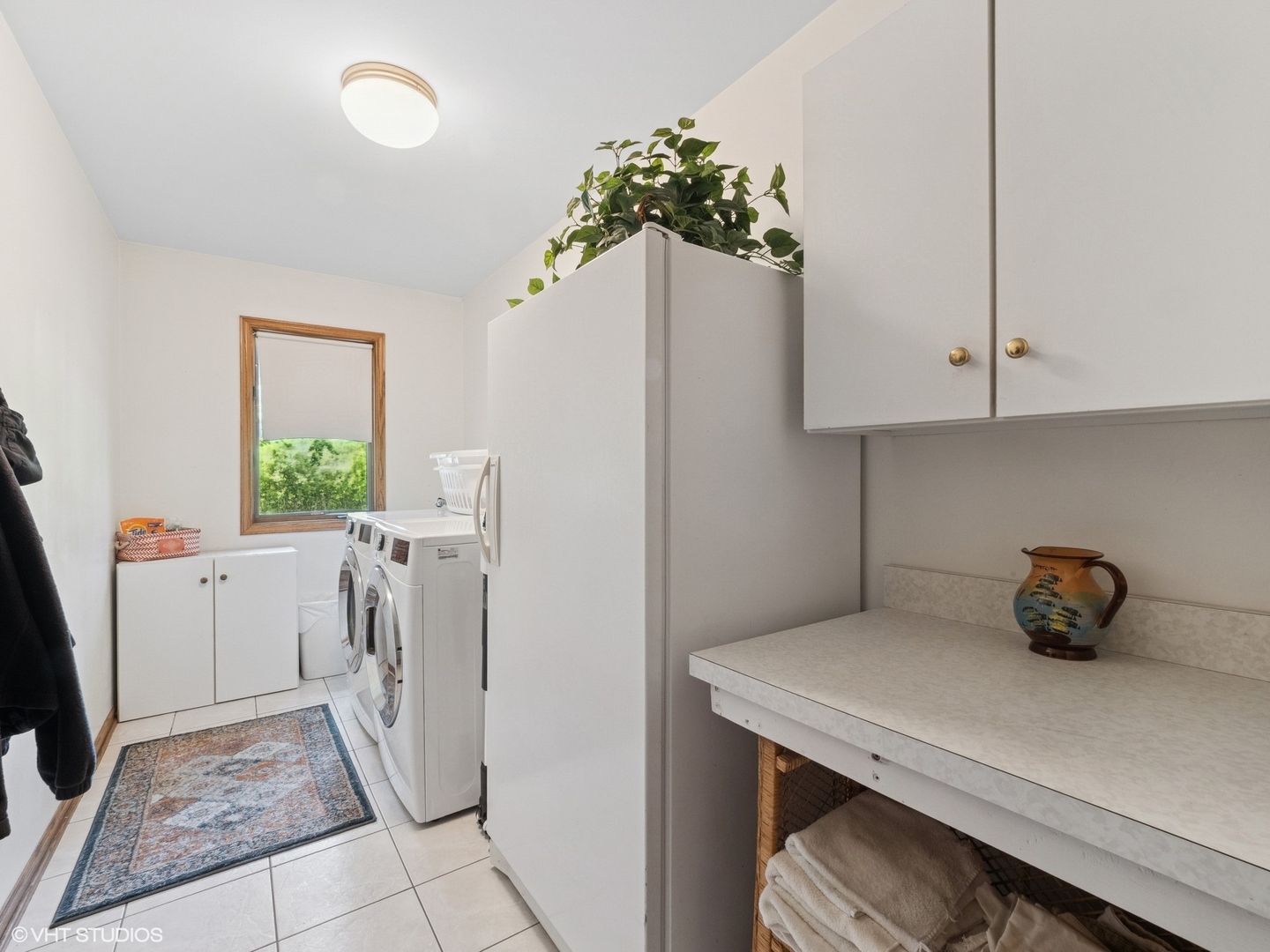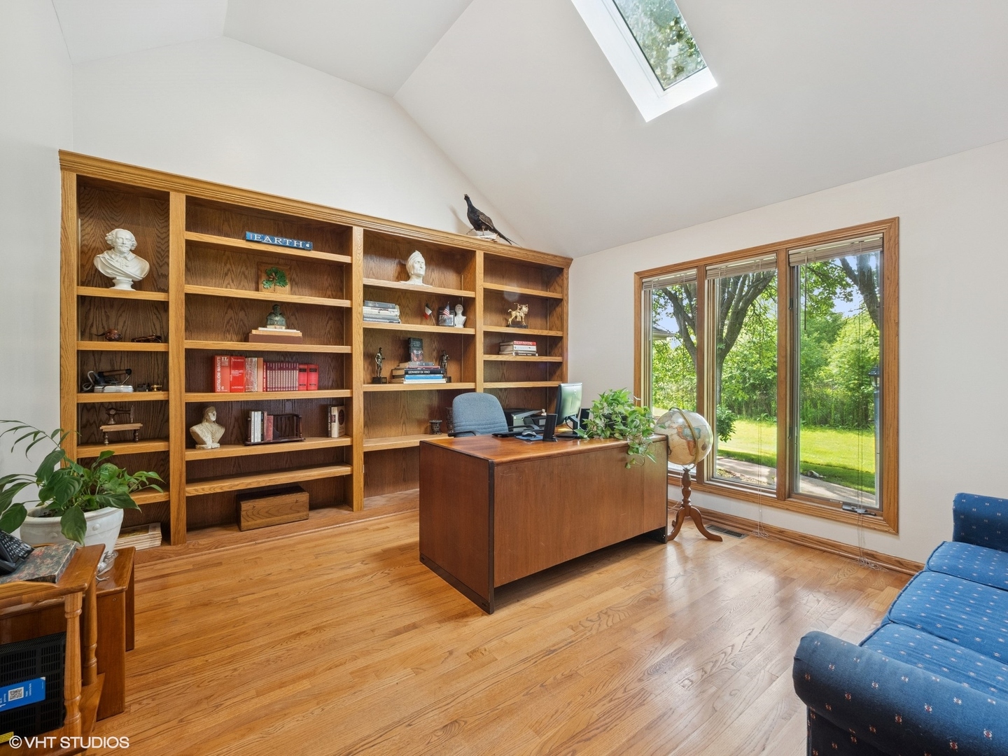 Welcome to this charming and spacious 5-bedroom brick ranch, perfectly situated on a serene half-acre lot at the end of a quiet street. This impeccably maintained home features an attached 3-car garage and is conveniently located near Woodfield Mall, the Schaumburg Train Station and the Elgin O’Hare Expressway, in the highly-rated District 211 and District 54 school zones. A dramatic foyer welcomes you into the home, setting the tone for the elegance found throughout. The main floor features an inviting eat-in kitchen that flows into a great room with high ceilings, abundant natural light, and a cozy wood-burning fireplace, creating the perfect setting for gatherings. This level also offers three spacious bedrooms, including two with ensuite bathrooms, a third full bathroom, a separate dining room, a formal living room, a versatile den, and a full laundry room. The fully finished lower level is a standout feature, offering two additional bedrooms, a full bath, a second kitchen, and a bonus room, making it ideal for an in-law suite or guest accommodations. The expansive, fruit tree-lined backyard is your private oasis, designed for relaxation and entertainment. Enjoy warm evenings on the large deck and patio, or make use of the fenced-in dog run, and a convenient storage shed. Recent updates include newer hardwood floors, water heater, furnace, air conditioner, humidifier, and well pump. Additionally, the home is wheelchair accessible. This home combines convenience, style, and functionality in a sought-after neighborhood.