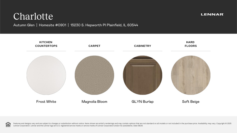 SPECIAL FINANCING AVAILABLE!! READY FOR OCTOBER DELIVERY!! Homesite #0901. Step inside and explore the Charlotte, a highly sought-after two-story traditional townhome featuring three bedrooms and 2.5 baths. The first floor showcases an open-floor plan, creating a sense of spaciousness and unity that seamlessly blends entertainment and everyday comfort. It’s easy to see why the kitchen is considered the heart of this home-complete with a walk-in pantry, stainless steel appliances, and a stunning oversized quartz island, this space leaves nothing to be desired. Better still, the kitchen flows effortlessly into a generous great room and dining area, making it ideal for hosting gatherings and special events. Upstairs, retreat to the luxurious owner’s suite, offering a spacious walk-in closet and a spa-inspired bath. Two more generously sized bedrooms, an additional bathroom, and a convenient laundry room round out the upper level. High-end finishes include luxury vinyl plank flooring, sleek quartz countertops, and elegant decorative railings, all enhancing the home’s aesthetic appeal. *Photos are not this actual home* Focused lifestyle in the heart of Plainfield, Illinois. Designed with both nature and neighborhood connection in mind, Autumn Glen features 7.6 acres of open space and detention areas, along with a 0.77-acre park in the southwest corner that includes a tot lot for little ones to enjoy. In the northern portion of the community, a 2.3-acre native prairie grass area adds natural beauty and a touch of local ecology. At the heart of Autumn Glen is a central courtyard complete with looping walking paths, perfect for peaceful strolls, dog walking, or connecting with neighbors. The layout encourages a relaxing, walkable lifestyle within a setting that feels both private and open. Just beyond the community, residents can explore all that Plainfield has to offer. Known for its blend of small-town charm and urban convenience, Plainfield is home to a bustling downtown district filled with boutique shopping, local dining, and all the major stores and supermarkets you need for everyday living. Community spirit thrives in Plainfield, where events like the lively St. Patrick’s Day parade, seasonal artisan markets, and the popular Plainfield Fest bring residents together throughout the year. Whether you’re enjoying a weekend stroll downtown or unwinding in your own neighborhood park, Autumn Glen offers a warm and connected place to call home.