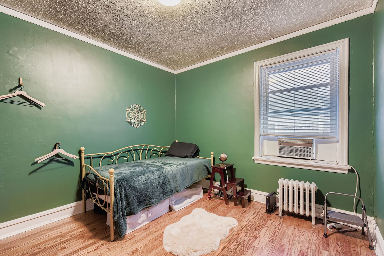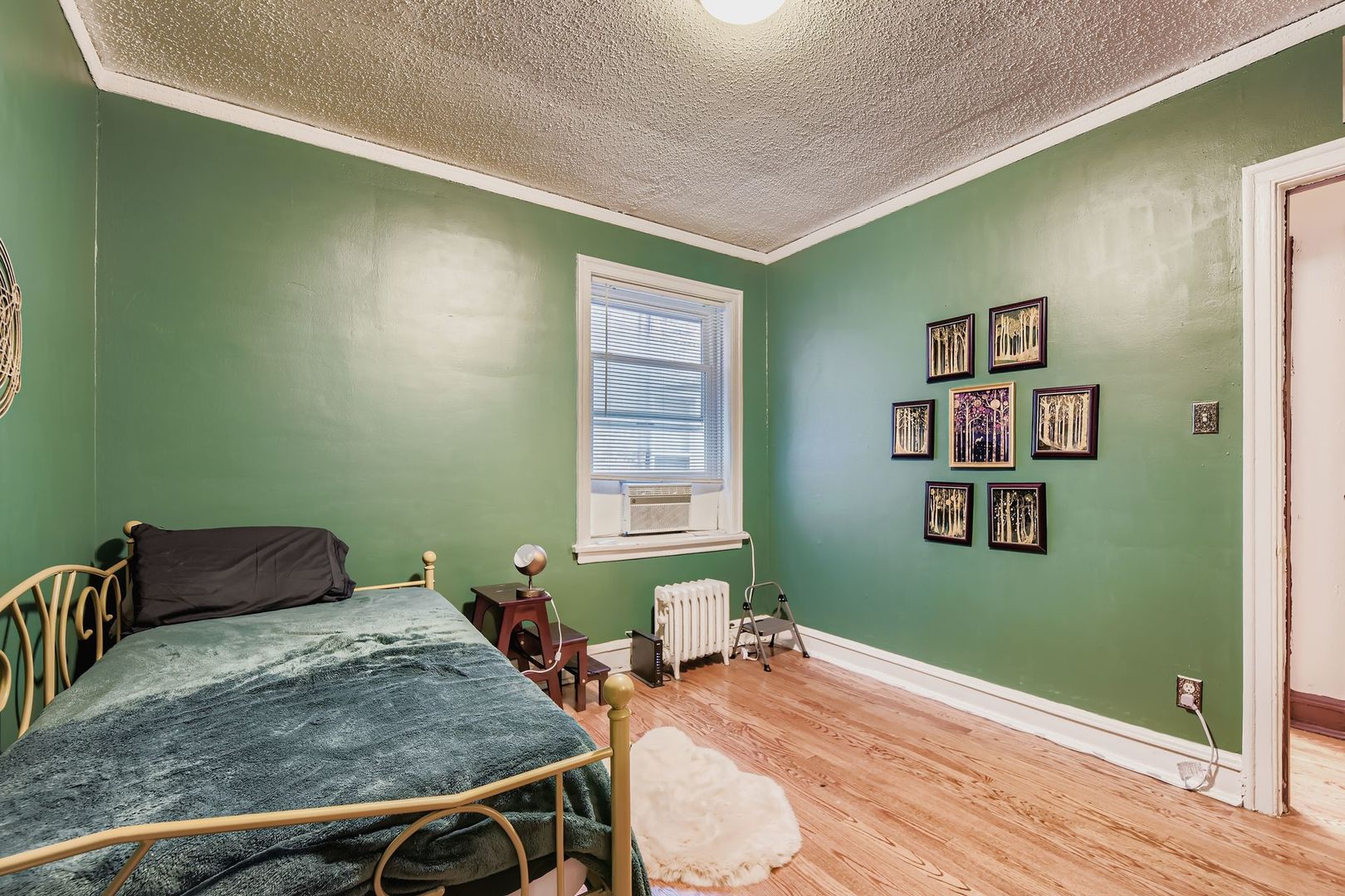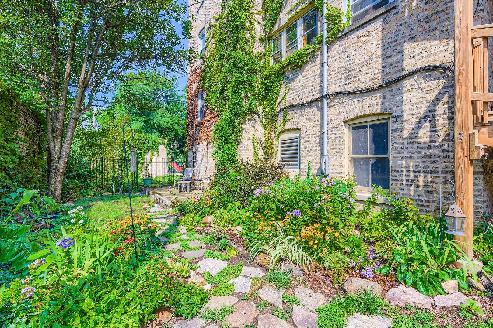 This beautiful vintage one bedroom, one bathroom condo has a full dining room with exposed brick, hardwood floors in living areas and bedroom, west exposure, and an updated kitchen with granite/stainless appliances including a dishwasher. This is a high first-floor unit with a large bedroom and generous closet space. The building features a beautiful shared patio garden, a convenient laundry room, a bike room, and a huge personal storage locker. The building is situated close to Loyola Beach, Glenwood Arts area, Red Line CTA, and the Rogers Park Metra station. HOA fee covers heat and water. 2 A/C units are included. Free overnight lot and $152/Mo garage parking available in the neighborhood. Installation of washer/dryer in unit ok with board approval.
