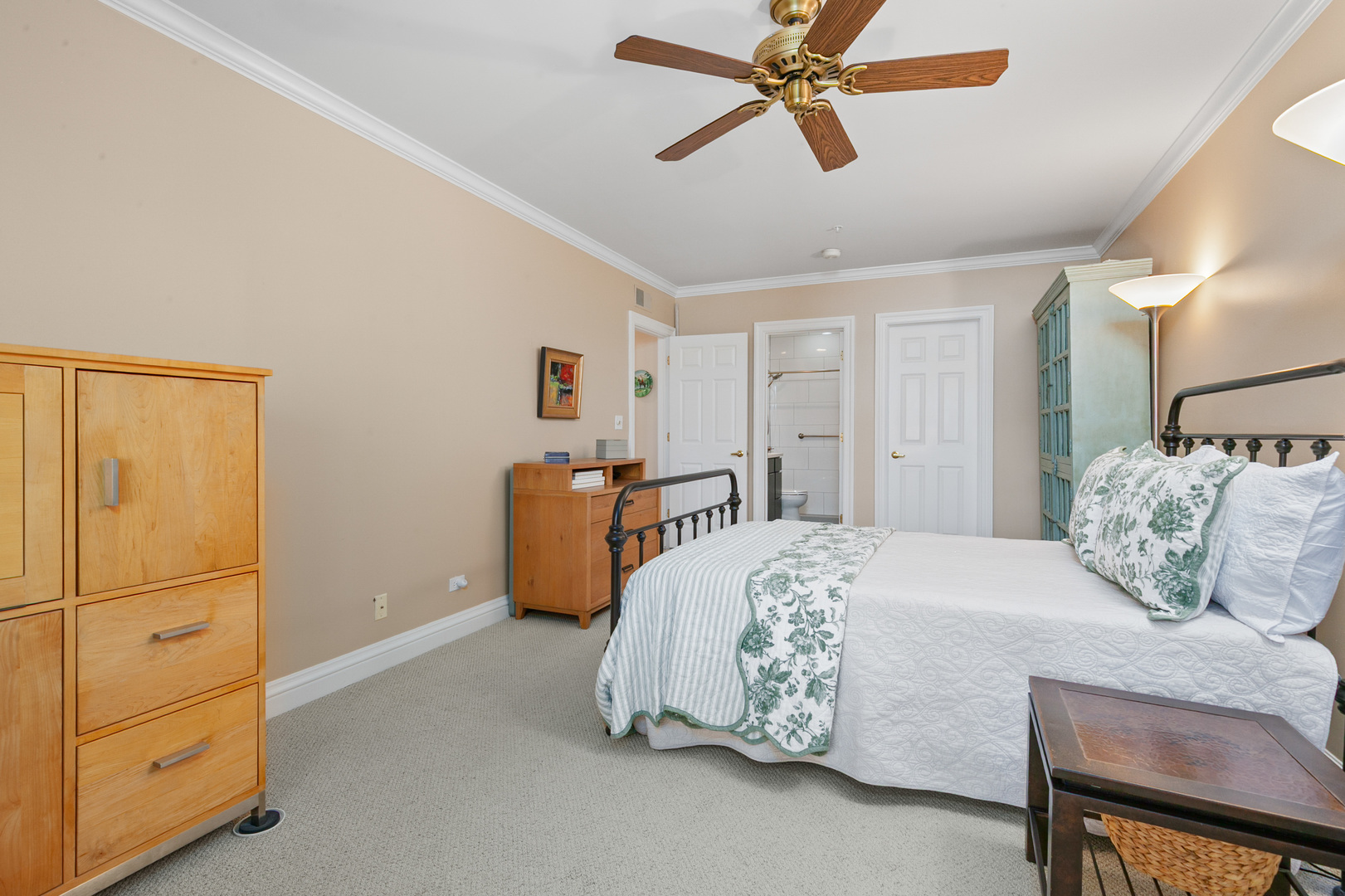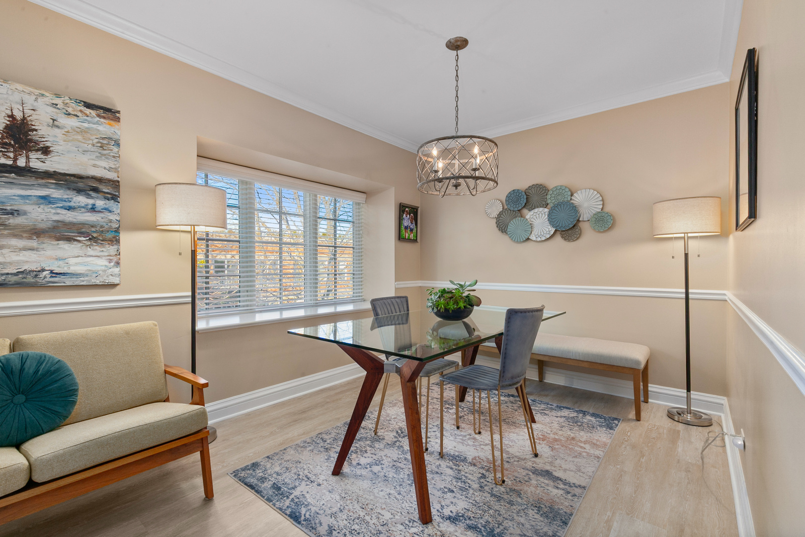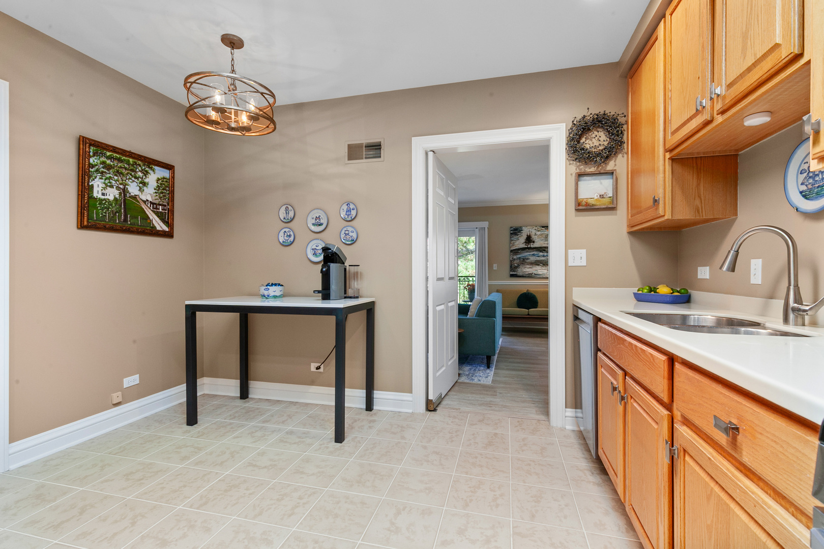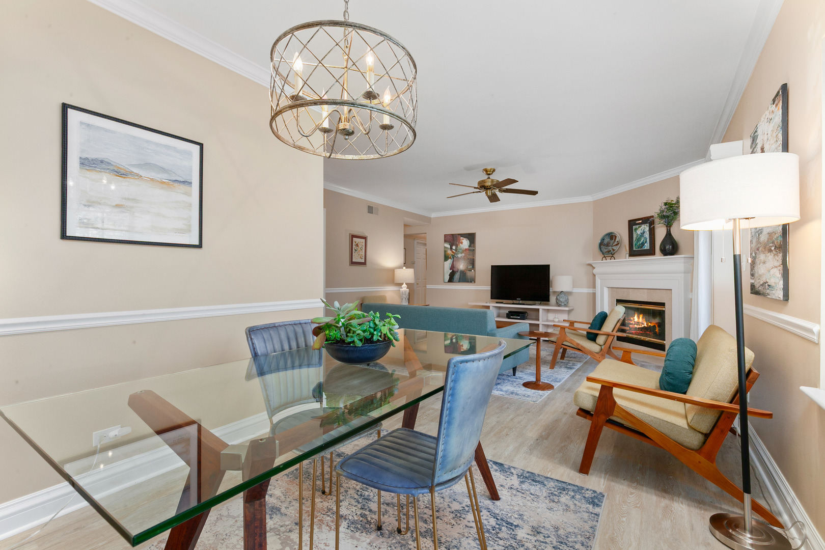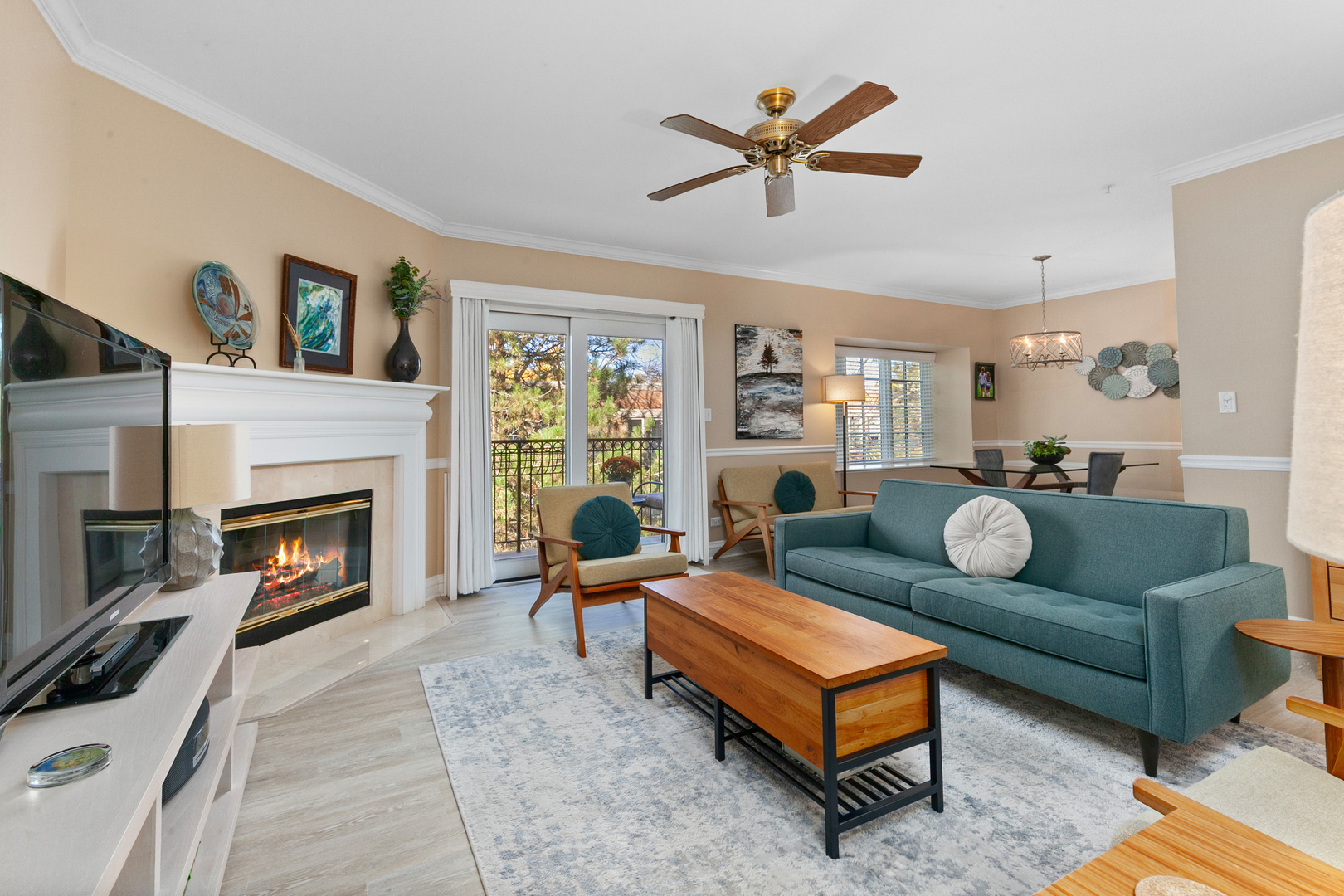 This desirable bright and sunny third floor condo has it all! Fresh neutral decor, 9 ft. ceilings, crown & chair moldings updated light fixtures and new flooring in the living areas. The kitchen features abundant cabinetry, stainless steel appliances, ample table space and skylight (one of the perks of a 3rd floor unit!) Entertain with ease in the spacious living room/dining room featuring a handsome gas fireplace with marble surround and access to the private balcony. The primary bedroom has a large walk-in-closet and newly updated private bath. The second bedroom has been thoughtfully transformed into a dream office, with built-in cabinetry and desk area, including a hidden Murphy bed. The full hall bath has also been recently updated with a fresh, clean look. Convenient in-unit laundry, heated garage and private storage room. All of this in addition to a location near the heart of downtown Lake Forest, and an easy distance to shopping, train and restaurants.