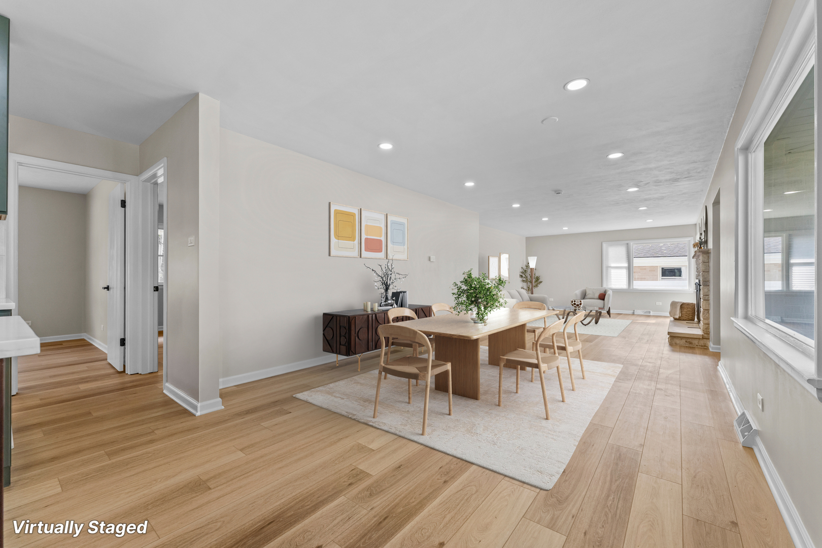 Welcome to this beautifully rehabbed 3,200 sq. ft. ranch-style home in the heart of Glen Ellyn. With 1,600 sq. ft. on the main level and another 1,600 sq. ft. in the fully finished basement, this home offers plenty of space for family living and entertaining. The bright, open-concept main floor features a stunning remodeled kitchen with modern finishes that flows seamlessly into a spacious living room with a cozy fireplace-perfect for relaxing or hosting guests. The main level includes three large bedrooms, including a 200 sq ft master bedroom with a walk-in closet and a custom ensuite bath. Downstairs, enjoy soaring 9-foot ceilings, a second fireplace, a HUGE family room, a fourth sizeable bedroom, and a full bathroom-ideal for guests or extended family. Outside, the fully fenced yard and 3-car garage add both privacy and convenience. Located just off Roosevelt Road, you’re minutes from top-rated schools, shopping, dining, parks, and major highways. **Property is Broker owned
