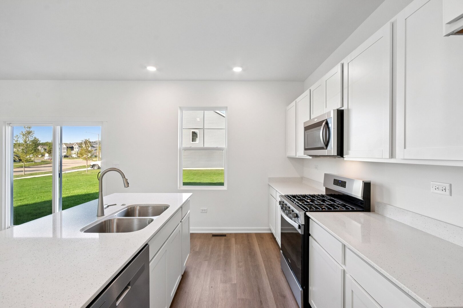 Envision yourself at 1532 Aspen Lane, a beautiful new home in our Cambridge Lakes North community. This home will be ready for a Spring move-in! As you drive up to this homesite, you will be greeted by a stone accents, front landscaping and fully sodded yard. This versatile 2,051 square foot home design includes 4 bedrooms, 2.5 bathroom and a 1st floor flex room. Entertaining will be easy in this open-concept kitchen as the dining area flows into the family room. The kitchen is highlighted by a large island with overhang for stools, warm smoke cabinets, walk-in pantry, modern stainless-steel appliances, quartz countertops, and easy-to-maintain luxury vinyl plank flooring. The 1st floor flex room offers a space for an office, playroom, or create a formal living or dining room! As you head upstairs, you’ll find great space in one of the 4 bedrooms. Escape to your private getaway in the expansive primary bedroom and en suite bathroom with dual sinks, quartz top vanity, and generous walk-in closet. Completing the second floor is the convenient 2nd floor walk-in laundry room and full hall bathroom. Need more space? This home also includes a full basement, blanket wrapped in insulation. Impressive efficiencies like the ERV furnace system and tankless water heater round out the amazing features this home has to offer! Our home includes our America’s Smart Home Technology. Builder Warranty 1-2-10 is included. Photos are of a similar home. Actual home built may vary.