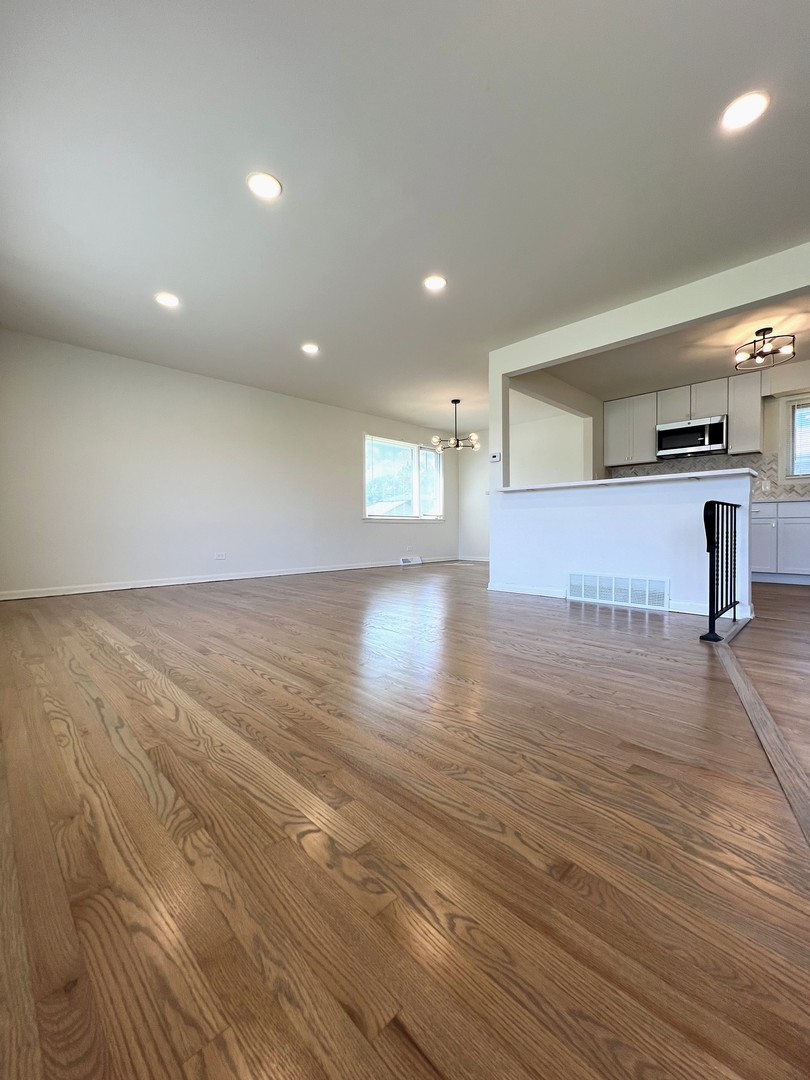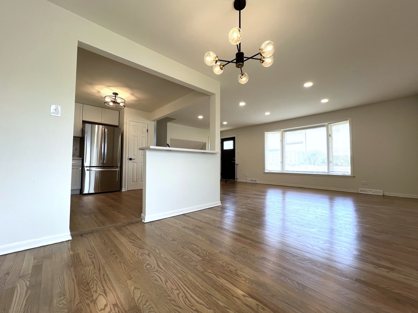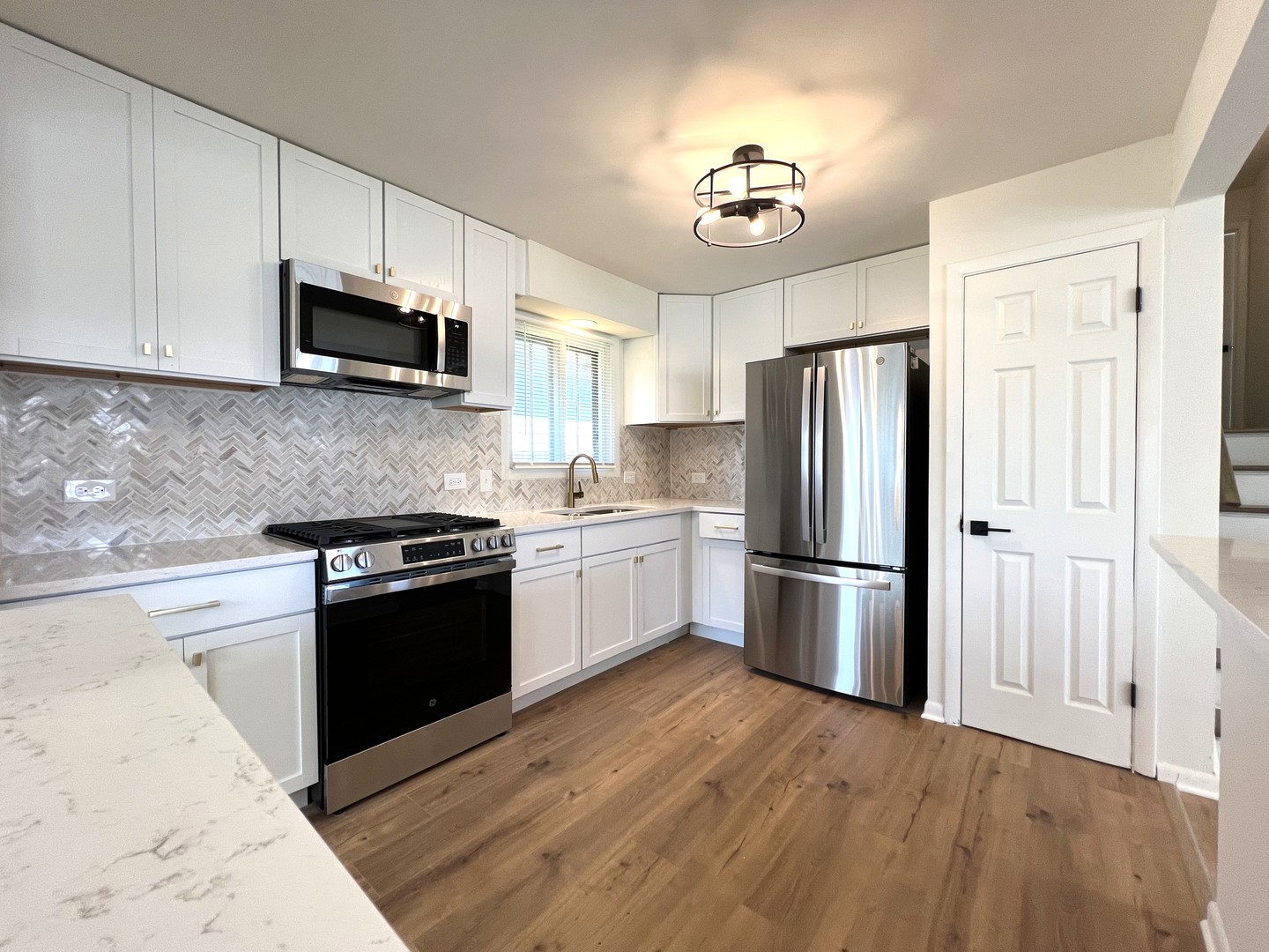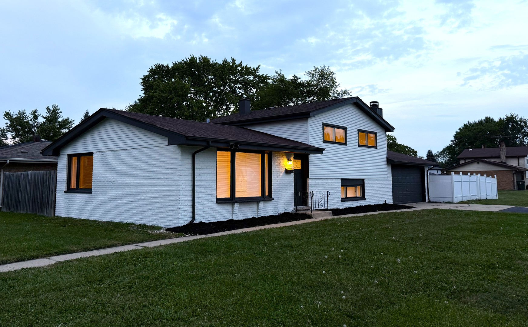 Stunning, completely remodeled split level home with tons of yard space all around! This home has been professionally updated and features all new carpentry, custom hardwood flooring, modern kitchen with oversized shaker cabinets, quartz countertops, stainless steel appliances, Carrera styled bathroom designs, LED recessed lighting, and gold and black fixtures throughout. The living room is spacious with a separate dining room, dual kitchen islands, and a family room that includes a fireplace and custom bar area. A large private fenced backyard for entertaining even the largest number of guests. Central heating and cooling included. Attached two car garage. Prime location near the South Holland border. FHA offers welcomed. Low taxes!