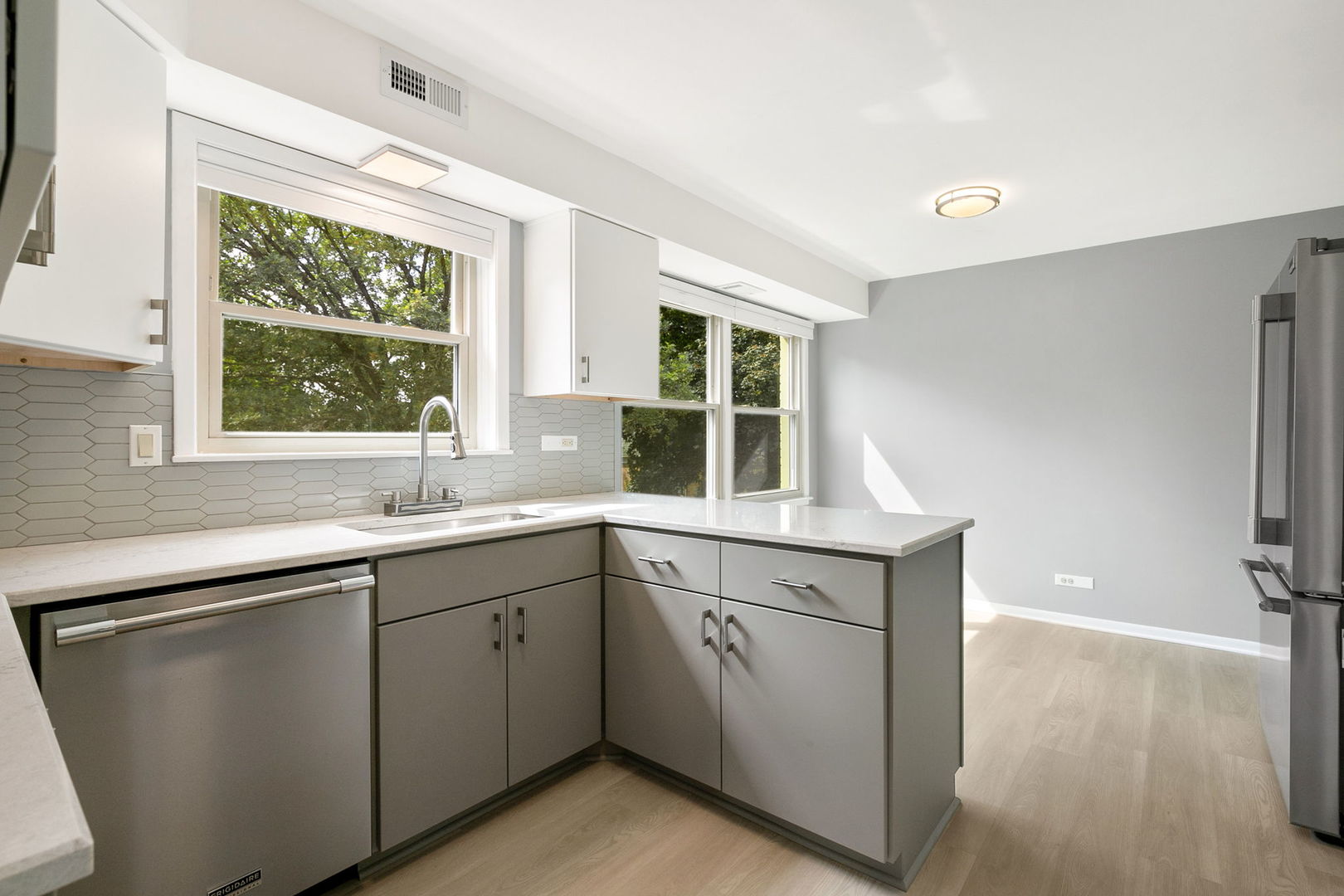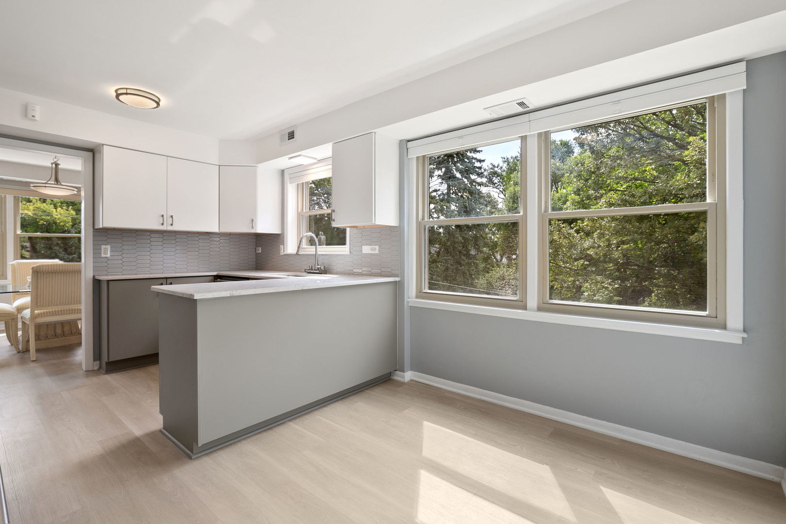 Stunning 3Bed/2Bath River Forest condo! Spacious, freshly painted home with tons of natural light offers all new flooring throughout, new kitchen with brand new quartz countertops, new cabinetry, new tile backsplash, top-tier stainless steel appliances, new sink & faucet, new lighting fixtures, new blinds, and upgraded electric system with home surge protection. Primary suite has large walk-in closet and large bathroom with double vanity. Private balcony off of living area is perfect for entertaining. Covered parking spot and big storage room included. Building offers party room and common laundry. Great location near schools, parks, recreational trails, grocery stores, Costco, and Target.