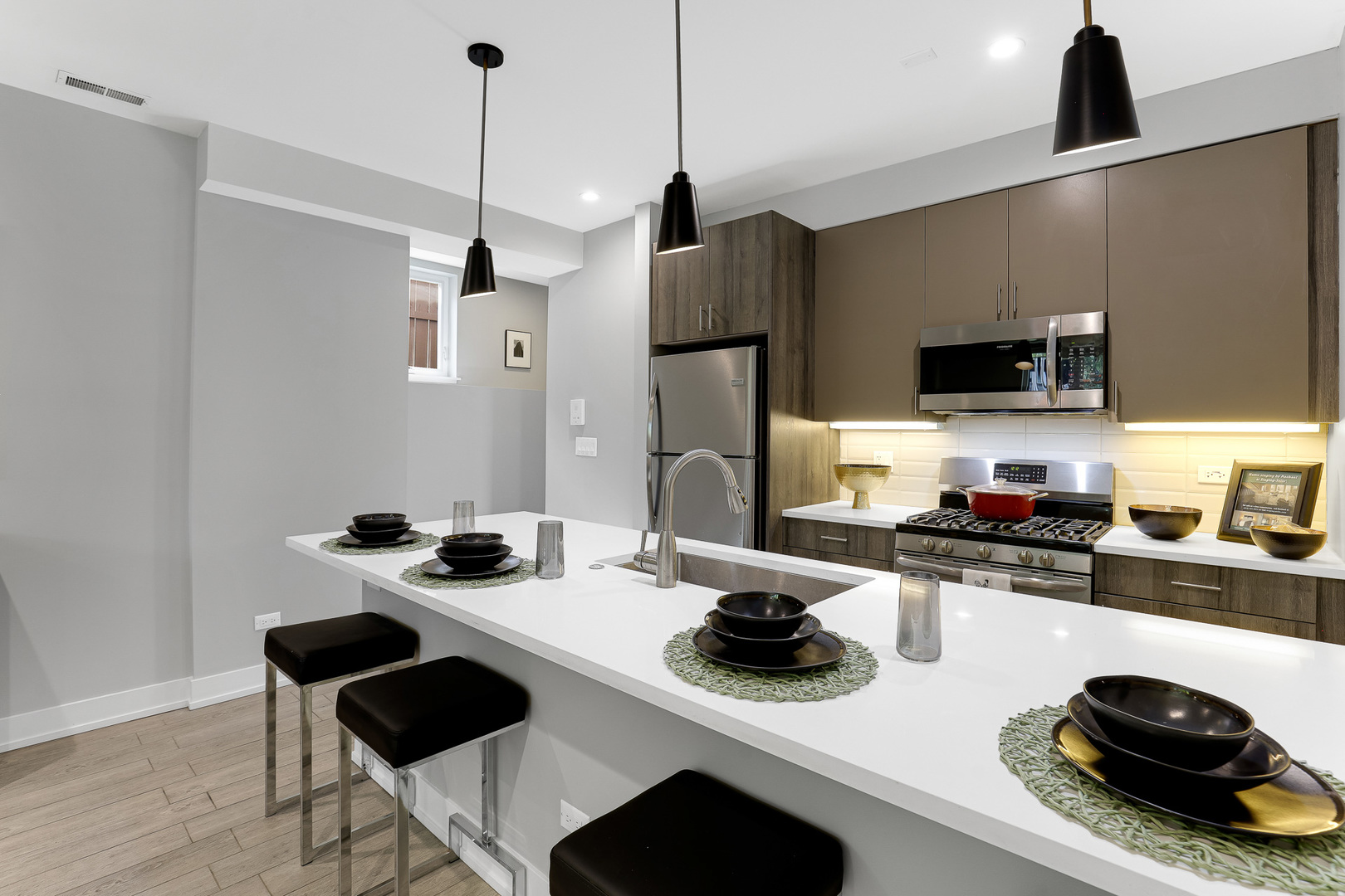 High Quality 3 Bedroom New Construction Development with Parking Space Included. This unit comes with $2500 Credit toward closing costs! Luxury Trim Package, Quartz Countertops in Kitchen and Baths, Modern Flush Panel European Kitchen Cabinetry, Stainless steel appliances. All the trimmings done here. This spacious 3 bed Newer Construction Condo Gives you a Home Base in Ground Zero Pilsen at a 2 Bed Price. Generous room sizes and Closets in all 3 bedrooms. Better quality construction than typical from the +PlusHouse Builder: Foam Insulation in walls and Hard Foam Insulation under the Floor. Sound reduction insulation between the units and under and around the stairs and in bath wall. Upgraded trim package is above par with 6″ base & shadow line reveal and door-stop modern shoe. The Master Bath offers a Large 5 Foot Walk In Shower and Double Bowl Vanity Topped in Quartz with Framed Designer Mirrors. The Master Bedroom Walk in Closet has solid built in shelves. This unit enjoys exclusive private side entrance and dual assigned use of front yard area(large grass in front assigned to this unit)! Buy and Rent for $2750++ a month or live here and walk to EL, Dining, Nightlife,etc. Built / Occupied in 2020 by +Plus House Builder then Re-finished This Summer For Condos Sale: Unit was Completely Just Repainted, Touched Up, Shined and Finished and is in Excellent Condition With a 2 Year Extensive Warranty on Mechanicals etc. (ask for copy). This home is Across From Park, near 18th street/dining/cta/Thalia Hall, Park, Museum, PINK line etc. Current taxes are for the building as 3 unit. Taxes will be assessed in future as it breaks as condo in 2025. Arf! Dog friendly and this Pilsen Location across from Park and a few short blocks to the Pink Line and Park. In center of the Mural Walk zone. You have it all here, new construction quality, location, and value. See you at regular open s announced online each week