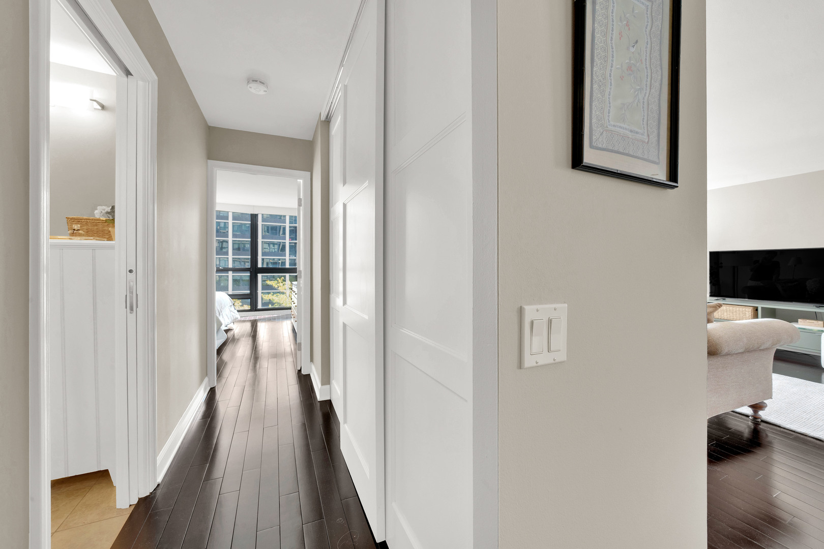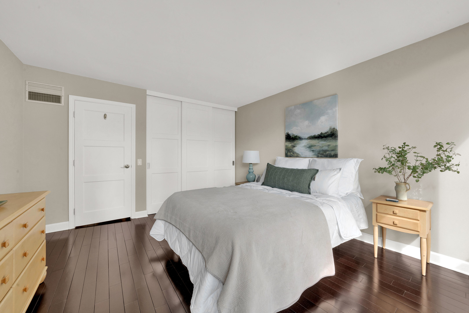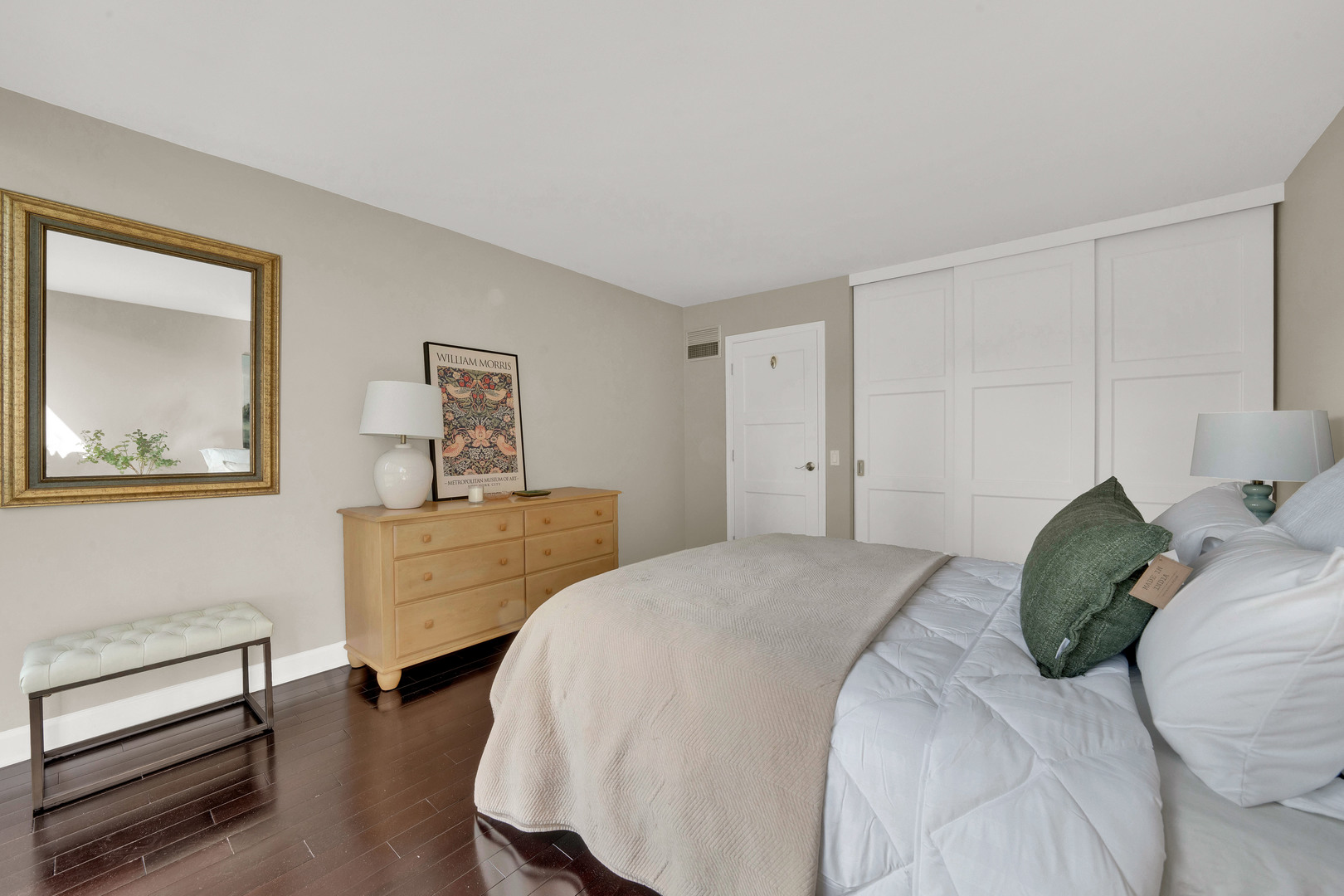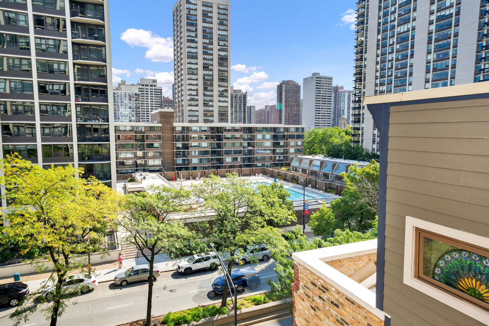 Offers have been received. Final and best offers should be submitted by 5 pm today, Monday, Sept. 29, 2025. Welcome to this bright and spacious southeast corner one-bedroom condo, perfectly situated at the crossroads of Old Town, Lincoln Park, and the Gold Coast. Floor-to-ceiling windows flood the home with natural light, highlighting the open layout and warm hardwood floors. Step onto the east-facing balcony for your morning coffee or evening wind-down while taking in city views. This condo offers organized closets throughout, shades for all windows, plus electronically controlled blackout shades in the bedroom for a restful night’s sleep. The kitchen is designed for both style and function with granite countertops, stainless steel appliances, a breakfast bar, and cabinetry that extends into the dining area for added storage. The updated bathroom features a walk-in shower and the convenience of an in-unit washer and dryer. The well-managed, pet-friendly building provides evening door staff, a daytime engineer, a fitness center, and laundry facilities. Monthly assessments include heat, A/C, water, internet, and cable. First-floor indoor parking (space #27) is included, and membership at the Sandburg Village pool is available. With parks, restaurants, the lakefront, and public transit just steps away, this is city living at its best.