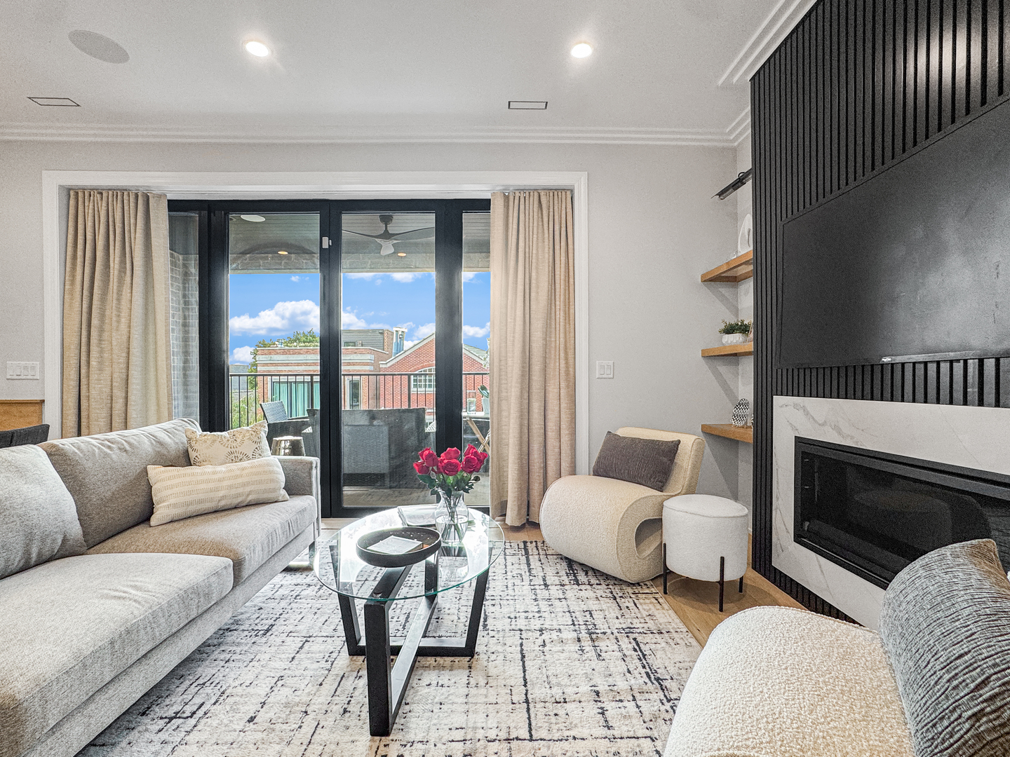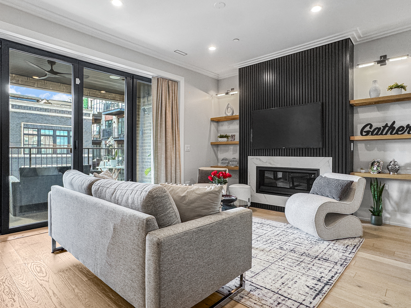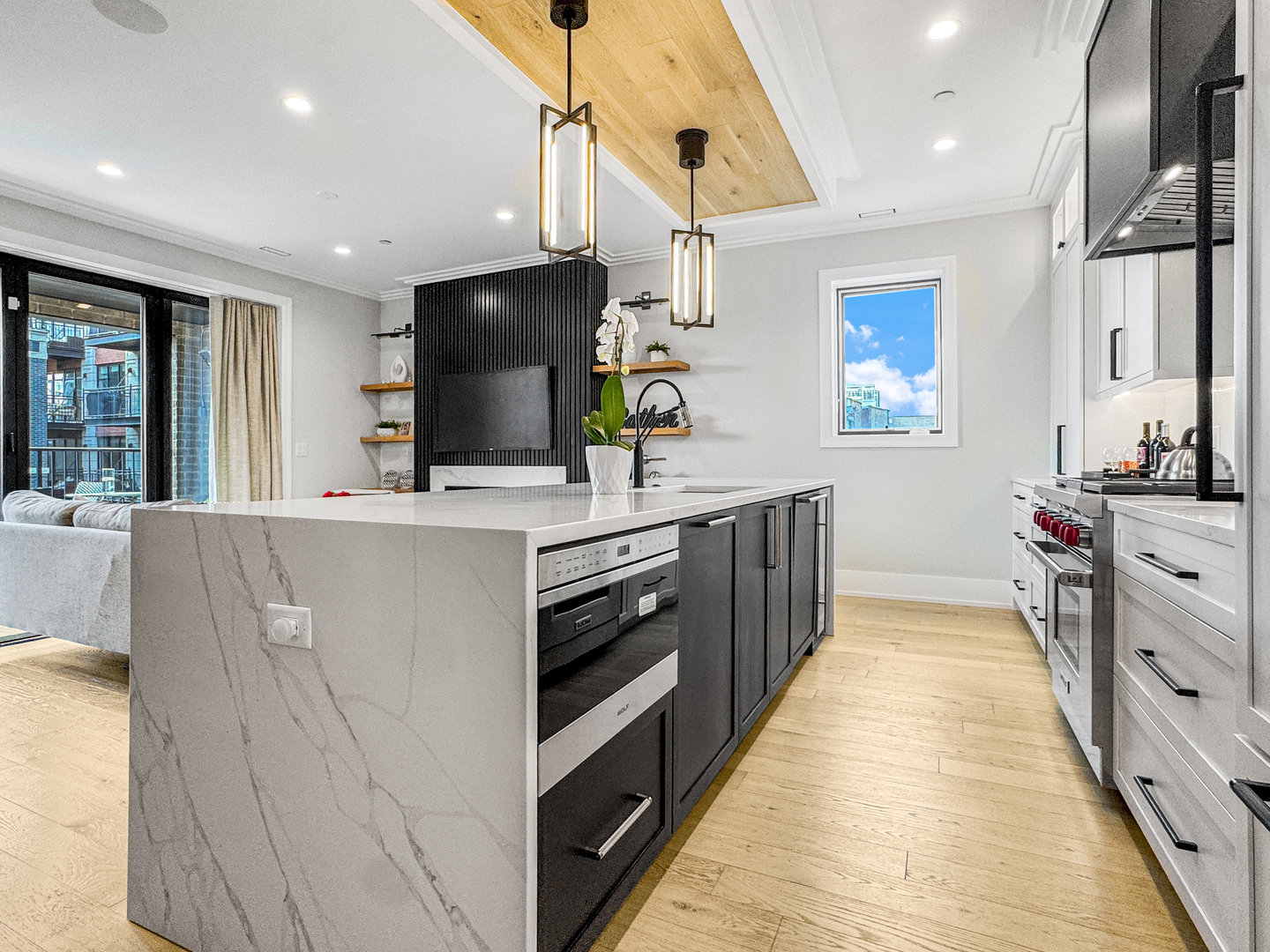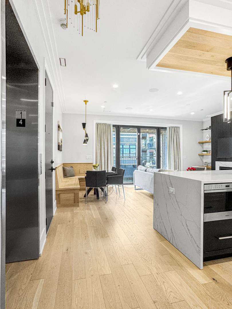Exceptional 2-year-new Old Town 3-bedroom, 2.5 bath penthouse with MASSIVE outdoor space! Fully elevator accessible on both levels. Loaded with luxurious contemporary finishes throughout, including natural white oak floors, a gas ribbon fireplace, a custom banquette, designer lighting, an open kitchen with quartz counters and top-quality appliances (Wolf, SubZero, and Asko), modern baths, and custom closets. The primary suite includes a spacious walk-in closet and a stunning en suite bath with a glass-enclosed steam shower. The covered terrace off the main living space was designed for three-season enjoyment with a ceiling fan, gas heater, and gas hook-up for a grill. The enormous elevator accessible rooftop deck is ready to accommodate all your outdoor needs – an outdoor kitchen, putting green, firepit, etc. The possibilities are endless! It has oversized pavers, gas and water, outdoor speakers, and a connection for an outdoor television. Other thoughtful touches include in-stair lighting and the placement of the A/C compressor above the rooftop dog house so you don’t hear it within the condo. Heated attached garage parking is included, with options for additional cars close by. This 100% owner-occupied, 8-unit condo building is handicapped accessible. Security features include a fob access system with cameras, fire sprinklers, and a security system within the condo. This 5-star Old Town location offers easy access to restaurants, shopping, parks, transportation, and Lincoln Park and the Gold Coast.