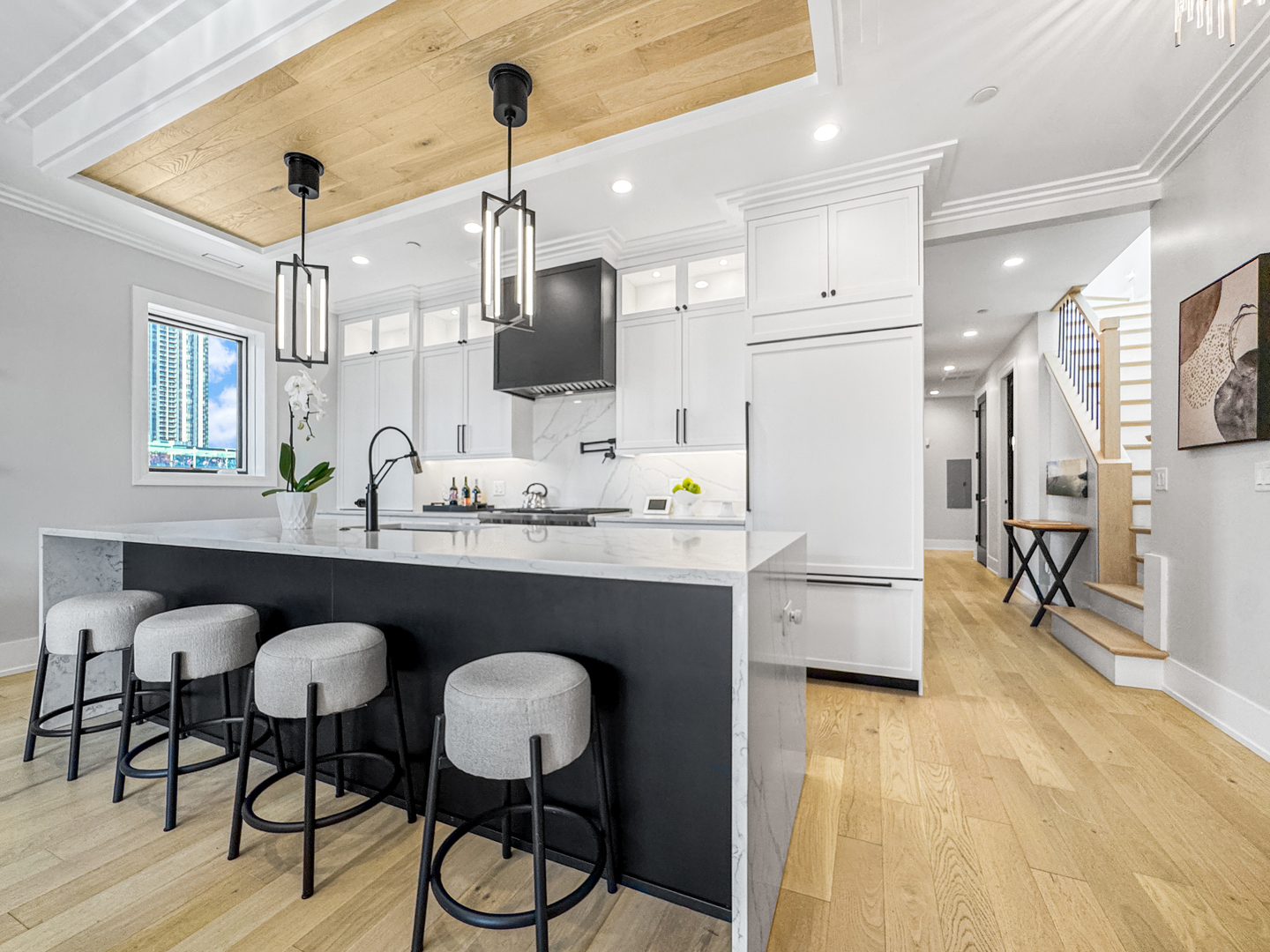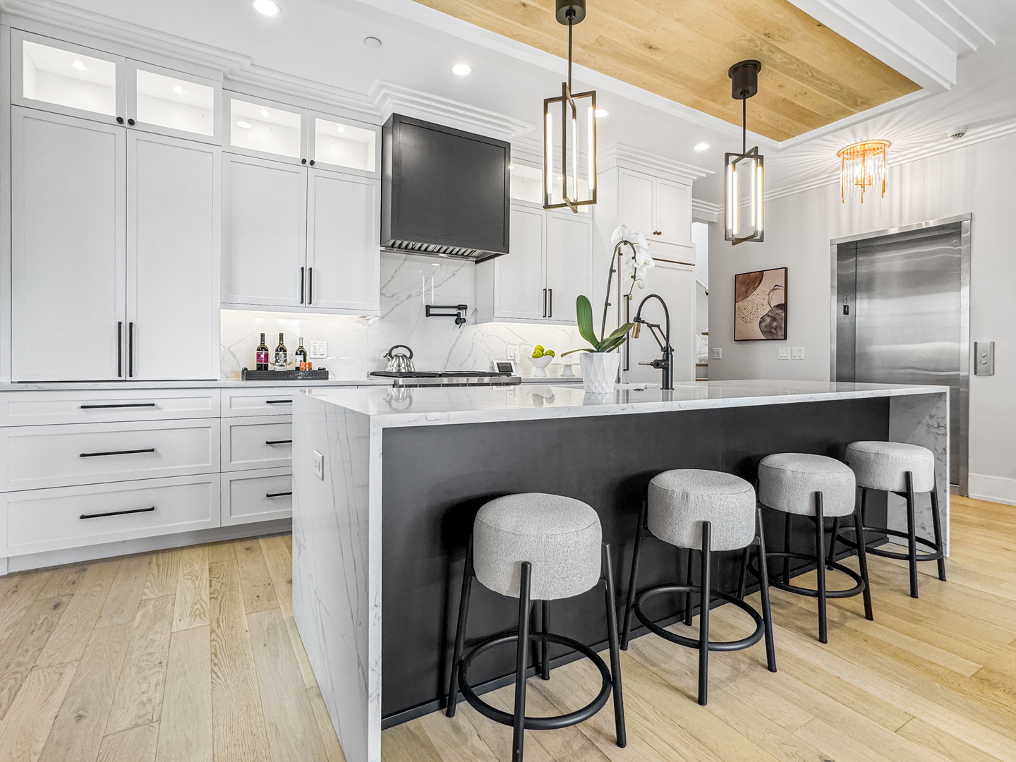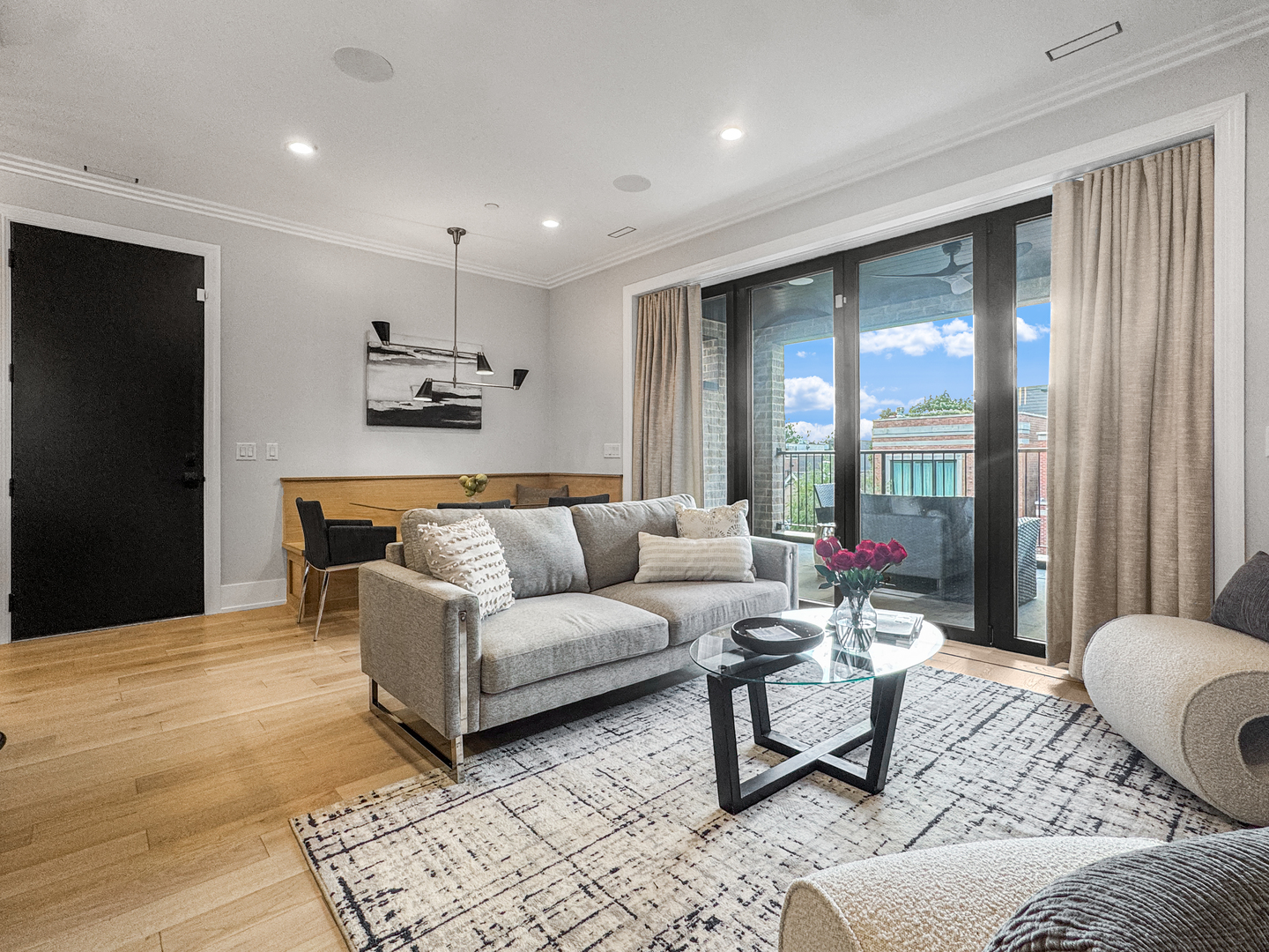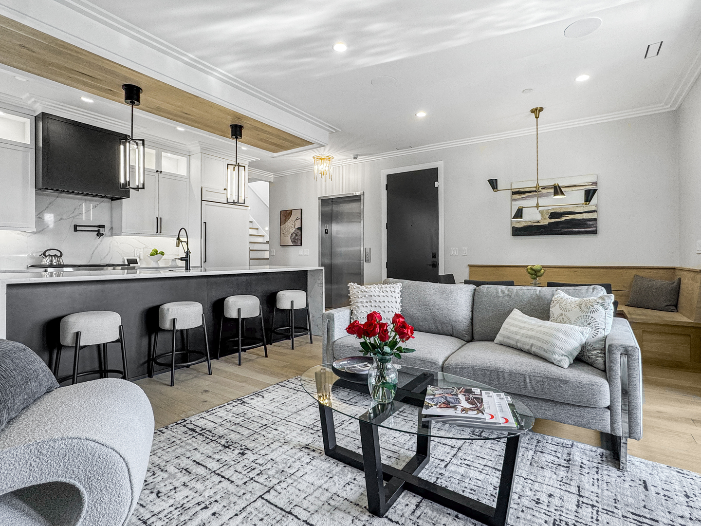 Exceptional 2-year-new Old Town 3-bedroom, 2.5 bath penthouse with MASSIVE outdoor space! Fully elevator accessible on both levels. Loaded with luxurious contemporary finishes throughout, including natural white oak floors, a gas ribbon fireplace, a custom banquette, designer lighting, an open kitchen with quartz counters and top-quality appliances (Wolf, SubZero, and Asko), modern baths, and custom closets. The primary suite includes a spacious walk-in closet and a stunning en suite bath with a glass-enclosed steam shower. The covered terrace off the main living space was designed for three-season enjoyment with a ceiling fan, gas heater, and gas hook-up for a grill. The enormous elevator accessible rooftop deck is ready to accommodate all your outdoor needs – an outdoor kitchen, putting green, firepit, etc. The possibilities are endless! It has oversized pavers, gas and water, outdoor speakers, and a connection for an outdoor television. Other thoughtful touches include in-stair lighting and the placement of the A/C compressor above the rooftop dog house so you don’t hear it within the condo. Heated attached garage parking is included, with options for additional cars close by. This 100% owner-occupied, 8-unit condo building is handicapped accessible. Security features include a fob access system with cameras, fire sprinklers, and a security system within the condo. This 5-star Old Town location offers easy access to restaurants, shopping, parks, transportation, and Lincoln Park and the Gold Coast.