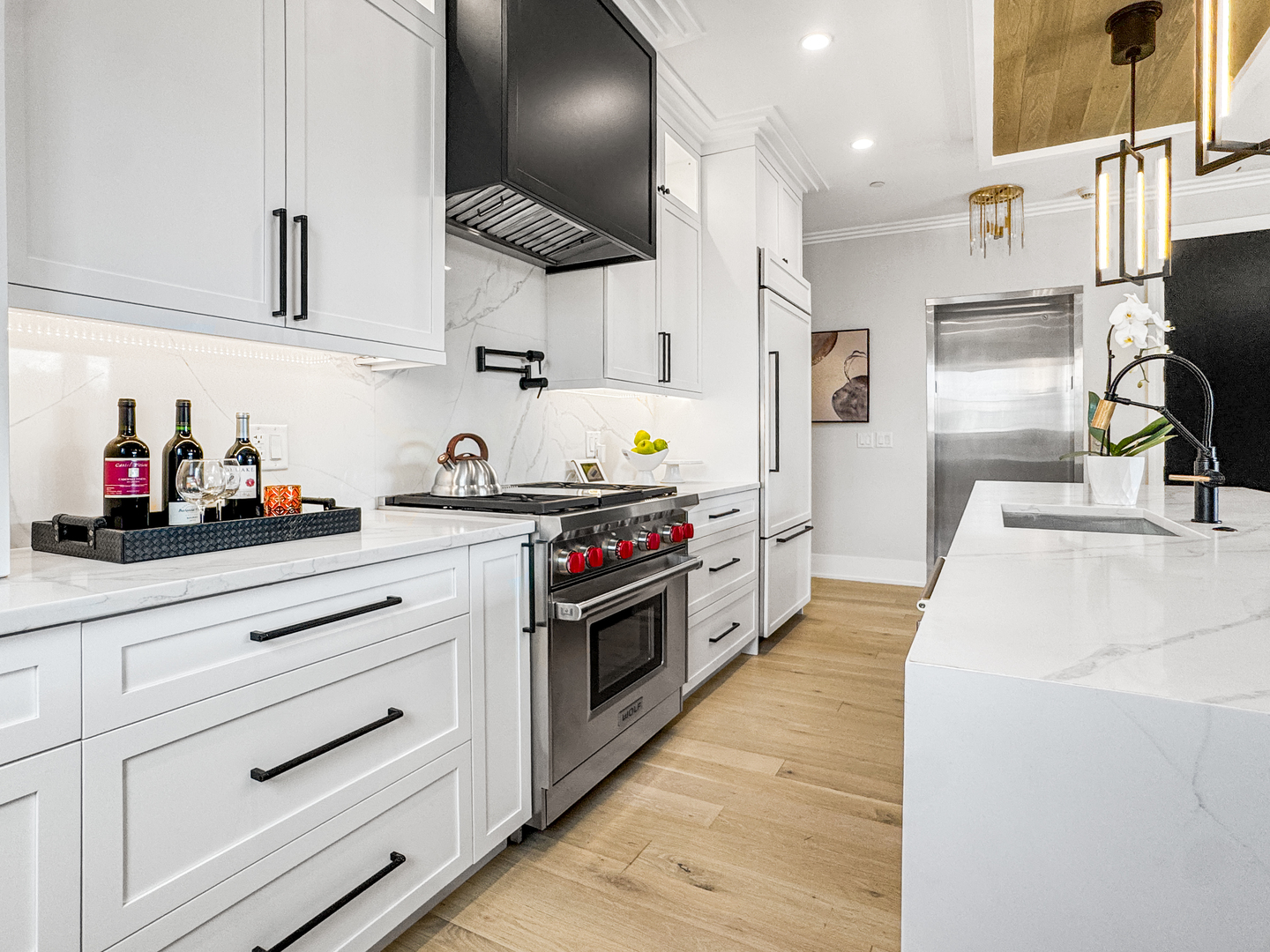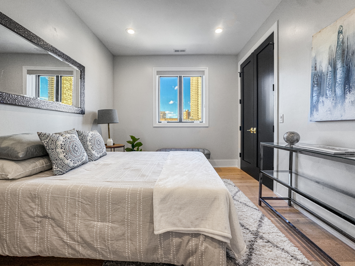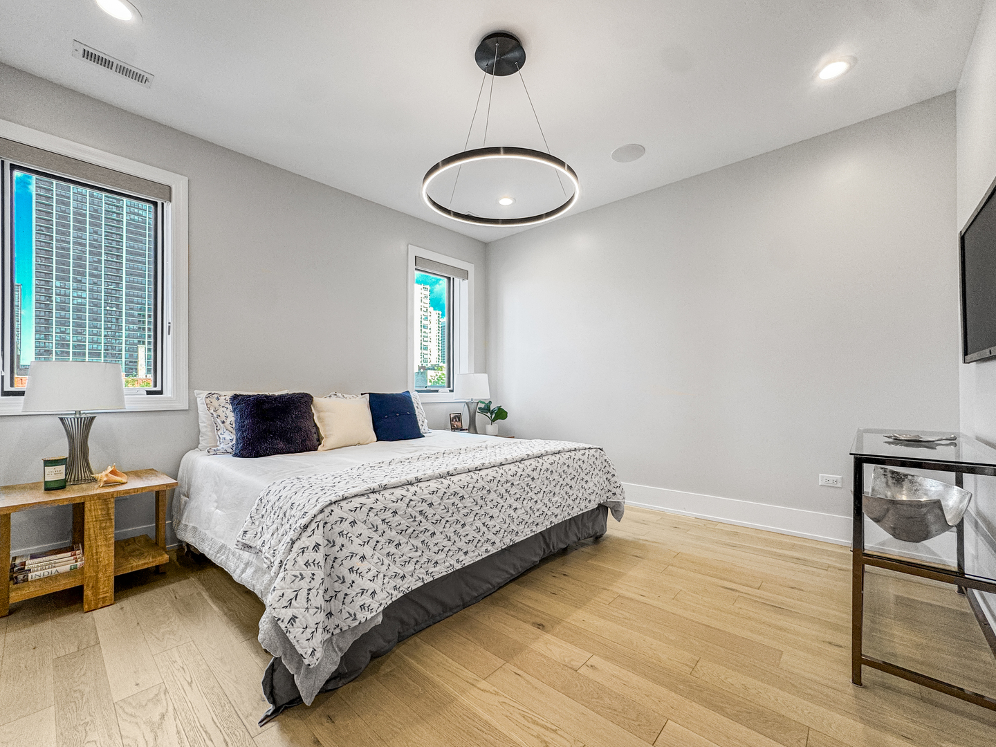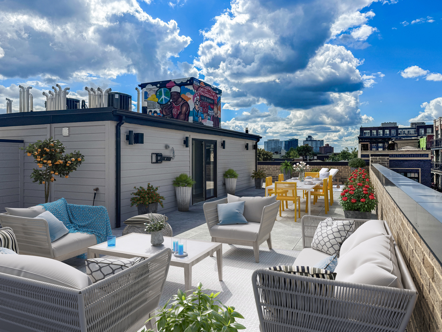 Exceptional 2-year-new Old Town 3-bedroom, 2.5 bath penthouse with MASSIVE outdoor space! Fully elevator accessible on both levels. Loaded with luxurious contemporary finishes throughout, including natural white oak floors, a gas ribbon fireplace, a custom banquette, designer lighting, an open kitchen with quartz counters and top-quality appliances (Wolf, SubZero, and Asko), modern baths, and custom closets. The primary suite includes a spacious walk-in closet and a stunning en suite bath with a glass-enclosed steam shower. The covered terrace off the main living space was designed for three-season enjoyment with a ceiling fan, gas heater, and gas hook-up for a grill. The enormous elevator accessible rooftop deck is ready to accommodate all your outdoor needs – an outdoor kitchen, putting green, firepit, etc. The possibilities are endless! It has oversized pavers, gas and water, outdoor speakers, and a connection for an outdoor television. Other thoughtful touches include in-stair lighting and the placement of the A/C compressor above the rooftop dog house so you don’t hear it within the condo. Heated attached garage parking is included, with options for additional cars close by. This 100% owner-occupied, 8-unit condo building is handicapped accessible. Security features include a fob access system with cameras, fire sprinklers, and a security system within the condo. This 5-star Old Town location offers easy access to restaurants, shopping, parks, transportation, and Lincoln Park and the Gold Coast.