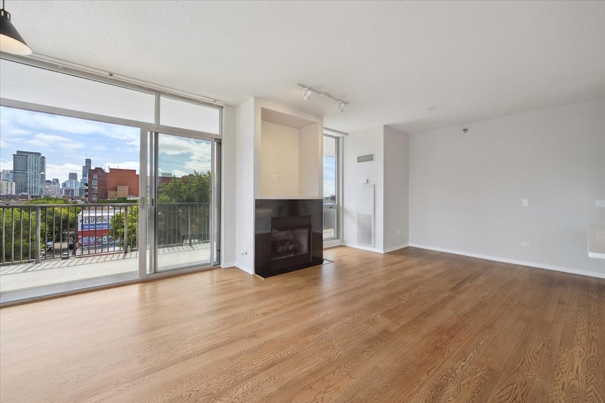 A rare opportunity in the heart of Old Town – this prime corner residence offers 2 bedrooms, 2 baths, and an effortless blend of comfort and style. Steps from Wells Street and the Brown/Purple Line, the home is perfectly positioned for both neighborhood charm and city convenience. Inside, newly installed red oak hardwood floors run throughout an open, flowing layout. The split-bedroom design ensures privacy, while the kitchen – complete with breakfast bar and stainless appliances – opens seamlessly to the living and dining areas. A fireplace adds warmth and character to the main living space. Flooded with natural light from its southern exposure, the home extends outdoors to a remarkable 320 sq ft balcony with sweeping views of downtown featuring rare gas and water lines. Originally configured as a 3-bedroom, the floor plan offers the flexibility to reconvert if desired. Three-plus garage parking spaces are included in the price. Move-in ready. Assessments incl. heat, internet & cable TV