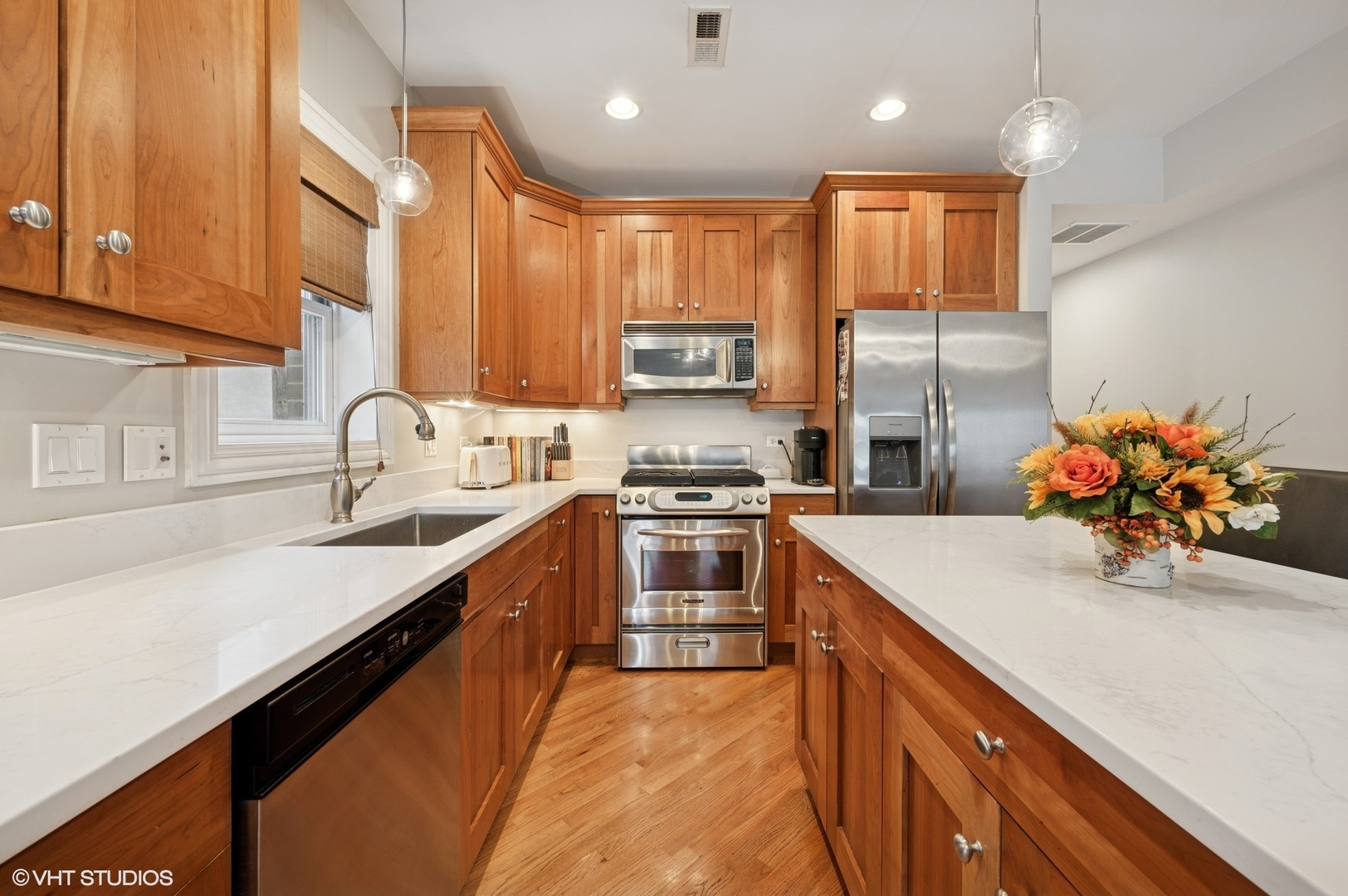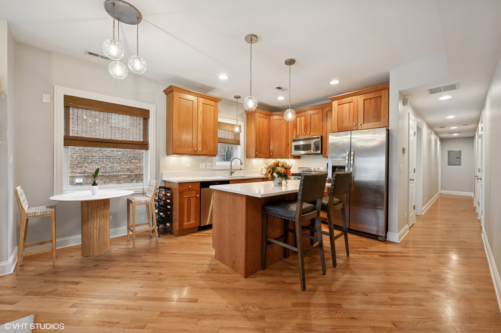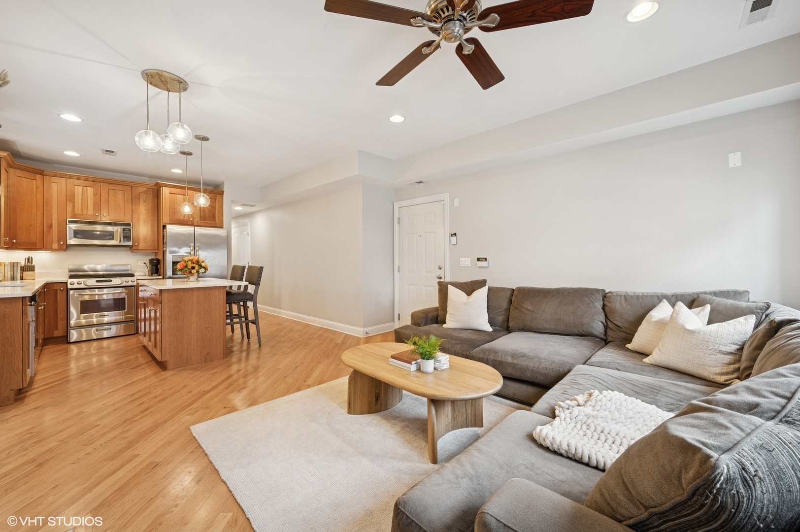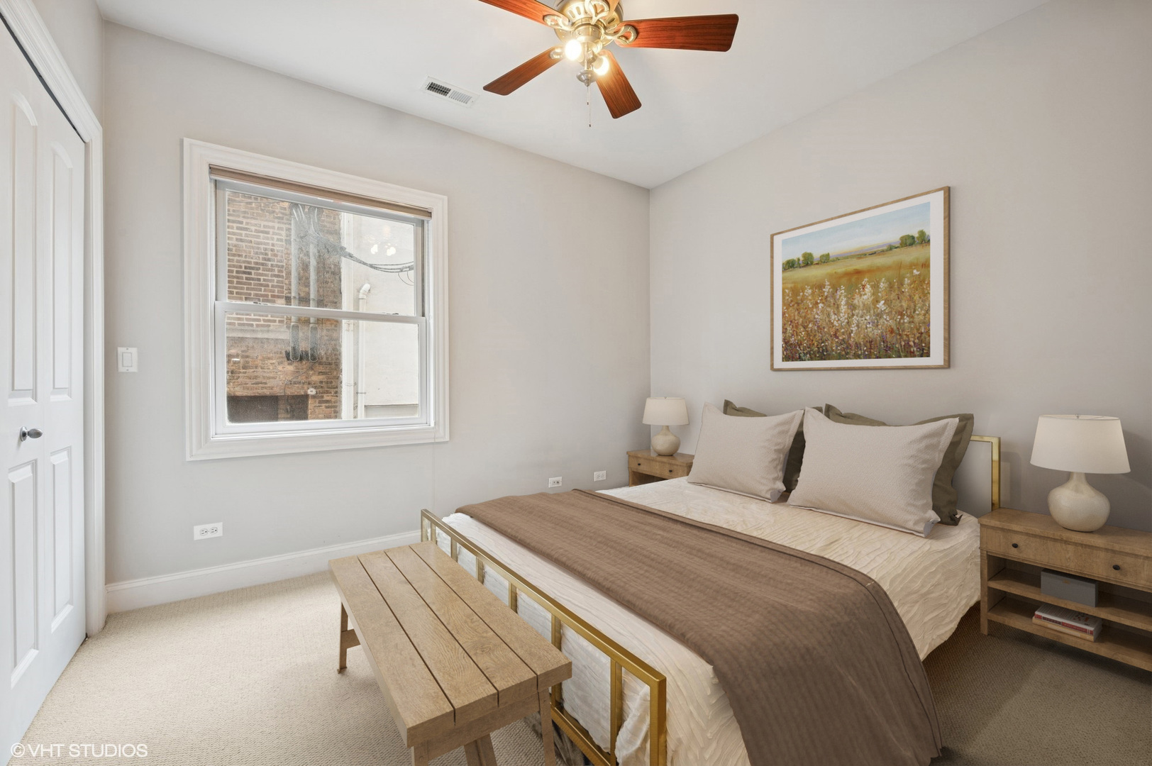 Impeccably maintained high first-floor 2-bedroom, 2-bath condo in walk-to-all Old Town location! The open-concept cook’s kitchen features 42″ custom cabinets, KitchenAid stainless steel appliances, new quartz counters and a large island with breakfast bar seating. The kitchen flows into the spacious living area with large windows overlooking tree-line Hudson Street and a gas fireplace with wood mantel and stone surround. Generously sized primary bedroom suite complete with marble bath. Additional highlights include hardwood floors, in-unit laundry and garage parking. Incredible Old Town location just steps from the lake, North Avenue Beach, Brown Line, and all of the fantastic shops and restaurants on Wells Street. No rental restrictions makes for an excellent long-term investment. Exceptional value – this home is a must see!