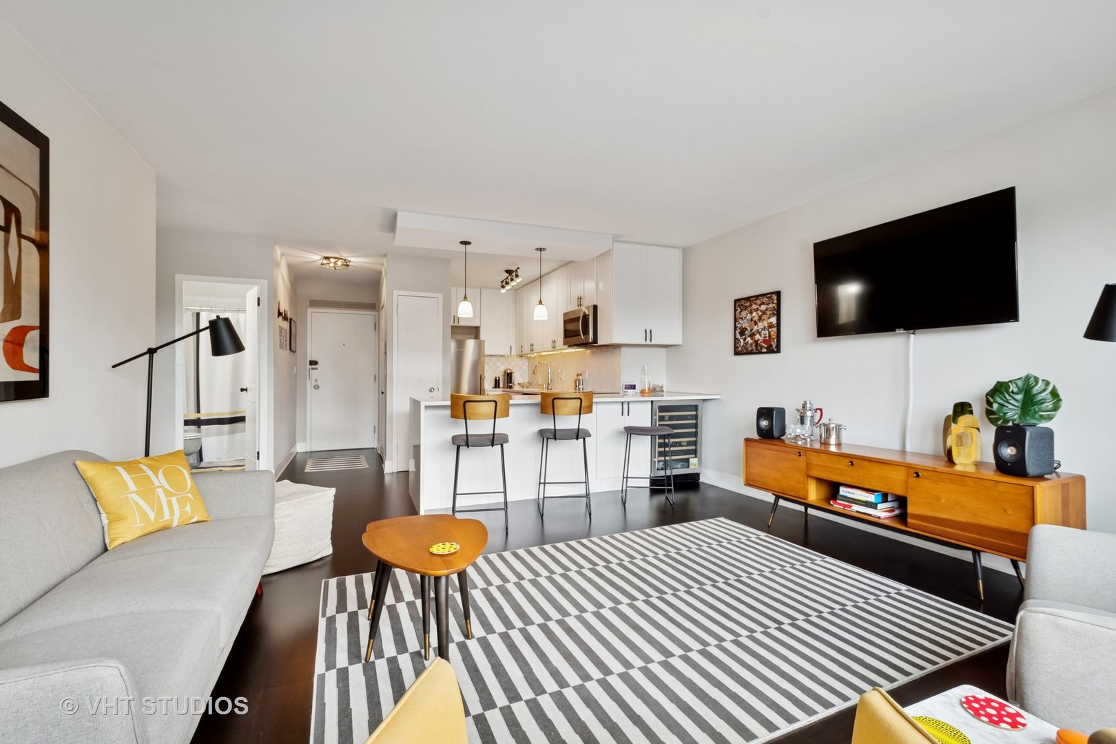 Welcome to this inviting 1-bedroom, 1-bathroom condo nestled in the vibrant and charming Gold Coast neighborhood of Chicago.Beautifully appointed and furnishings could be available to the buyer. It is perfectly located with Lake Michigan out your front door and just moments away from Oak Street and North Avenue beaches, scenic bike trails, Lincoln Park, restaurants and Michigan Avenue. The location truly embodies the best of urban living, ensuring adventure and relaxation are never far from home. Located on the second floor, this charming unit boasts stunning treetop views of Lincoln Park, offering a serene backdrop to your everyday living. The interior features beautiful hardwood floors throughout, enhancing the warmth and appeal of the space. Designed for both relaxation and productivity, the open-concept layout includes a versatile custom counter height table that is an efficient workspace and then seamlessly transforms into an expansion for the dining area, catering to all your needs. With ample natural light flowing in, this home is airy and bright. Take advantage of a wealth of community amenities at your fingertips. Public transit options are right outside the front door. Enjoy the convenience of laundry facilities just one floor down, stay active in the well-equipped exercise room, and unwind on the front patio or on one of the two lovely sundecks that provide panoramic north and south views of the surrounding area. The building also offers 24-hour door, garage and maintenance staff, on-site management, storage locker, and secure bike parking, perfect for those who enjoy exploring the city. Optional valet parking is available , adding an extra layer of convenience. Don’t miss the opportunity to make this exceptional condo your new home! Experience the perfect blend of comfort, style, and prime location in this delightful space.
