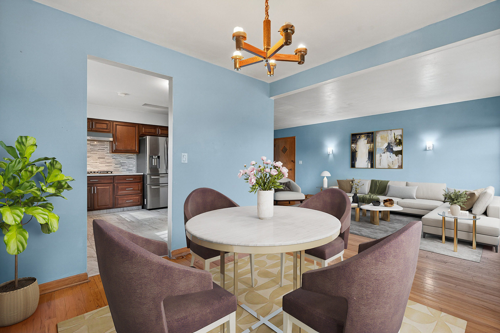 Spacious 4-Bed/2-Bth split-level home in great Des Plaines location! As you enter, you’re greeted by a bright and spacious living room and dining room with tons of windows letting in plenty of natural light and hardwood floors that flow throughout most of the home. The updated kitchen features sleek SS appliances, a beautiful backsplash and room for a small breakfast table. Upstairs, you’ll find 3 great sized bedrooms and a full bath. Head down to the lower level for even more living space with a family room, the 4th bedroom, the large laundry area and another full bath. Outside, you’ll enjoy the large backyard and detached 2.5-car garage. Updates include new roof 2021, kitchen remodel 2021, new water heater 2018 and new driveway 2022. You can’t beat this home or it’s location – close to parks, schools, restaurants, the Metra, major highways and all that downtown Des Plaines has to offer. Schedule your tour today! Estate sale, sold AS-IS.