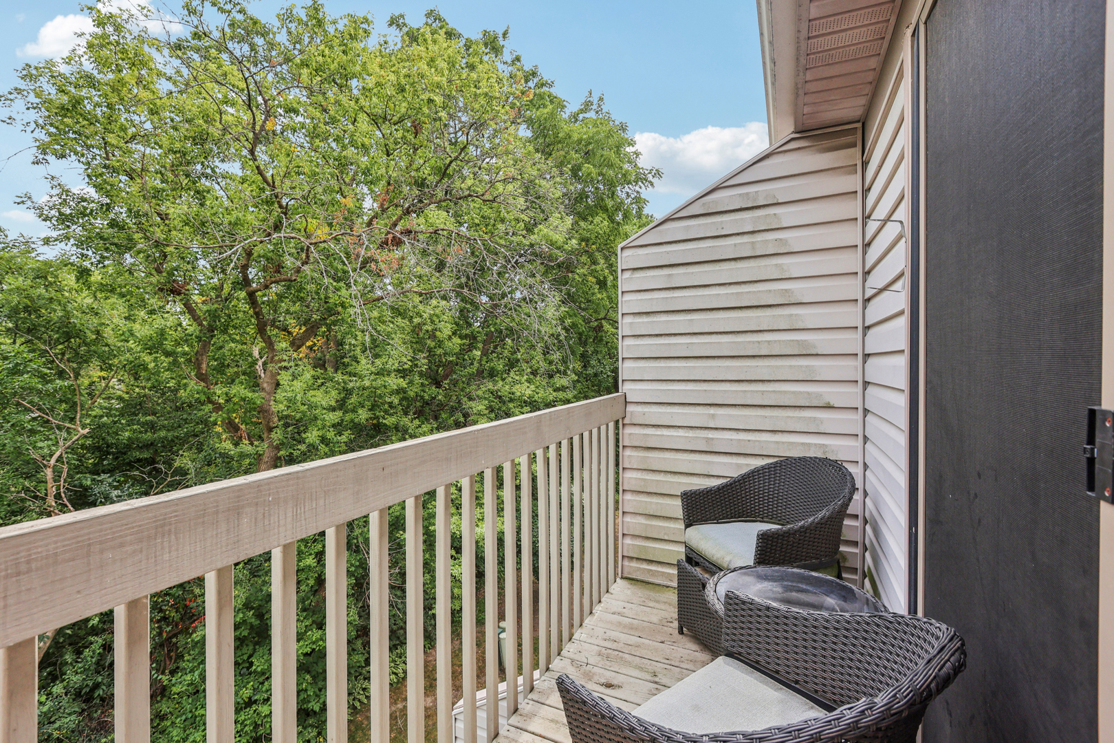 Welcome home to this stylish 2-story townhome in sought-after Wellington Park, backing to a serene wooded setting! The bright living room features a cozy fireplace and sliding glass doors to the balcony, while the kitchen shines with plenty of storage and natural light. A convenient half bath completes the main floor. Upstairs you’ll find 2 bedrooms plus a spacious loft-ideal for a home office. The primary suite boasts a balcony and a beautifully updated bath. The finished walkout basement adds valuable living space with direct access to a covered sitting area for relaxing or entertaining. Enjoy the convenience of a 2-car driveway and a quieter location set back from Dundee Road, while still being close to the train, golf, shopping, and dining.