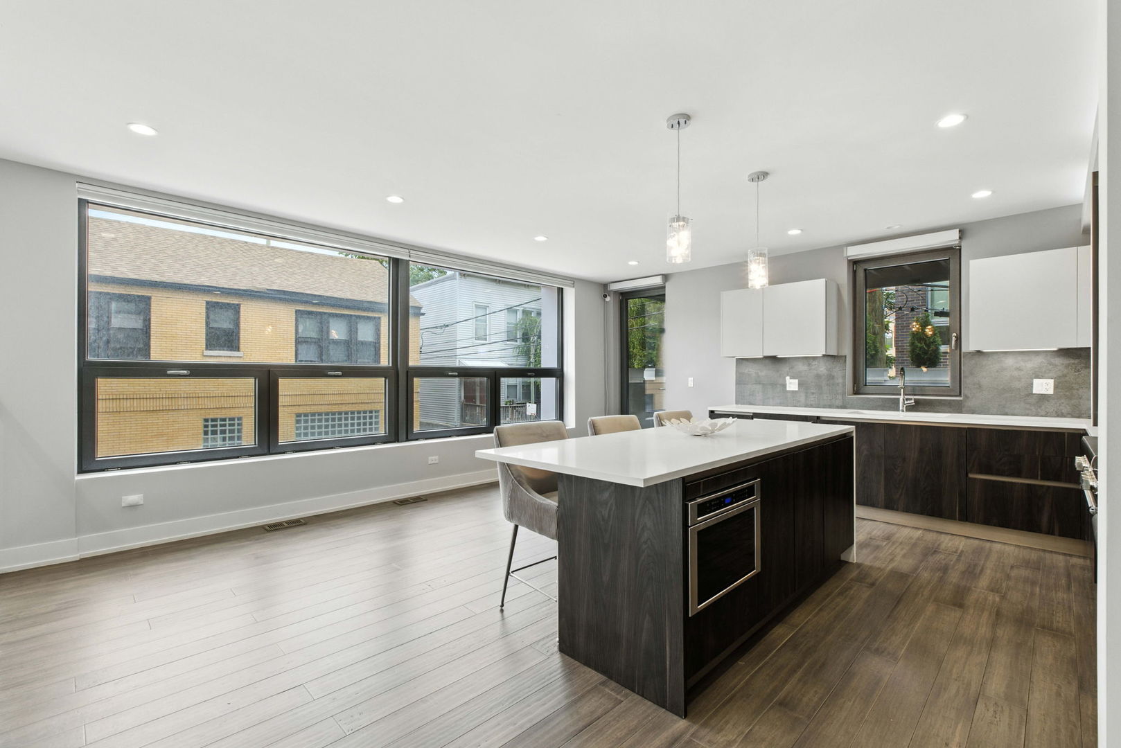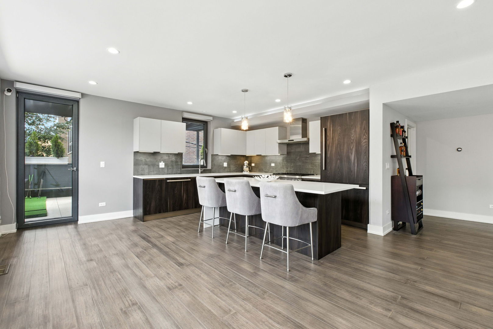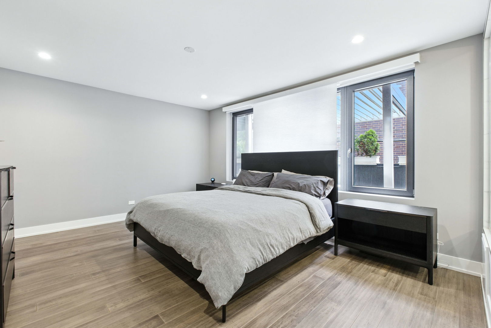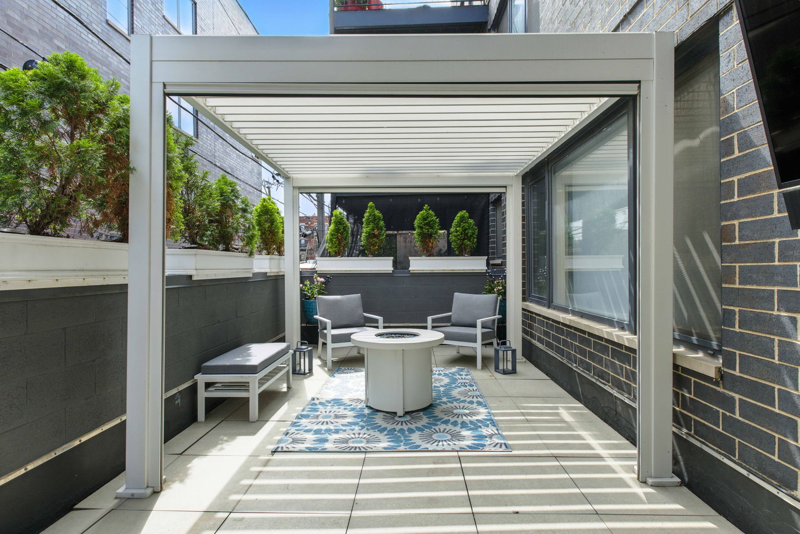 SIGNIFICANT PRICE IMPROVEMENT! INCREDIBLE OPPORTUNITY! Not On Ashland! Very Quiet, Very Private facing Fry St! Over 2500 SqFt! Soaring 14′ ceilings! Huge, private terrace! Lives like a Single Family Home! Are you looking for the exceptional? Welcome-in to this STUNNING triplex home unlike any ordinary condo you will see. Recently built, this three-level custom home exudes features you simply won’t find anywhere else. Starting with the layout; a perfect blend of open concept while providing intentional designated spaces for living, dining, and separate family room entertaining spanning more than 2500 SqFt!. Enter into the main living level and immediately be taken aback by the soaring 14 foot ceilings and floor-to-ceiling wall of windows – extraordinary! Huge open living space. A sizeable coat closet and half-bath on this level. Ascend a few stairs to the top floor, which uniquely remains open to the main living level visible through an amazing glass railing! Here you’ll find a true chef’s kitchen with high-end Thermador appliances; a rich-tone paneled professional sized fridge and freezer, the sought-after 36 inch, 6 burner range, Copat cabinetry and an abundance of storage and counterspace including a 6-foot island. The adjacent Dining space easily accommodates a table for 8. Accessible from the kitchen awaits your outdoor sanctuary! A completely private 35’x14′ terrace outfitted in ceramic patio tiles and equipped with a pergola, water, electric. Outdoor entertainment accessible for TV and sound. The Primary Suite is a true retreat! Easily accommodating any size furniture with a large custom-organized closet and a spa-like bath highlighted by heated floors, a wet-room area with huge shower with rainshower head and wall mounted body sprayer plus a soaking tub. Double bowl vanity and linen-storage. The full view glass wall/window can be kept clear or frosted for added privacy and yet another feature truly unique! Rich, hand-sewn hardwood floors adorn these top 2 levels. The lower level of this home is amazing! Soaring nine-foot ceilings and radiant heated tile floors! A huge family room, two additional, spacious bedrooms both with great walls of closets! The third bedroom features custom glass french-doors making it the perfect flex space for office, workout room! True luxury and an entertainer’s dream feature is the custom built 63 bottle glass wine room for the entertaining and wine enthusiast. – absolutely stunning! A full bath with oversized vanity and gorgeous tile. A large utility room with washer and dryer completes this level. Exit from either the lower-level or the 1st floor to access your attached garage parking space – the ultimate in convenience and comfort for its proximity, security and protection from the elements! The entire home features custom closets and professional windows treatments including Hunter Douglas automated blinds with top-down bottom-up capabilities to set the optimal natural light. A well-run HOA with ultra-high Owner-occupancy. Enjoy low assessments in a top-quality building. Superb location in the Noble Square neighborhood of WestTown with tons of trendy eateries and shops and the best transportation options. Building is on the corner of Fry and Ashland; this unit does not face Ashland, it is so peaceful and serene!