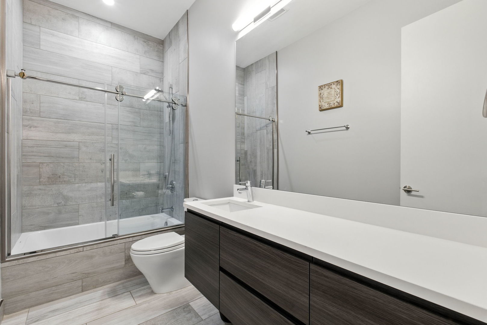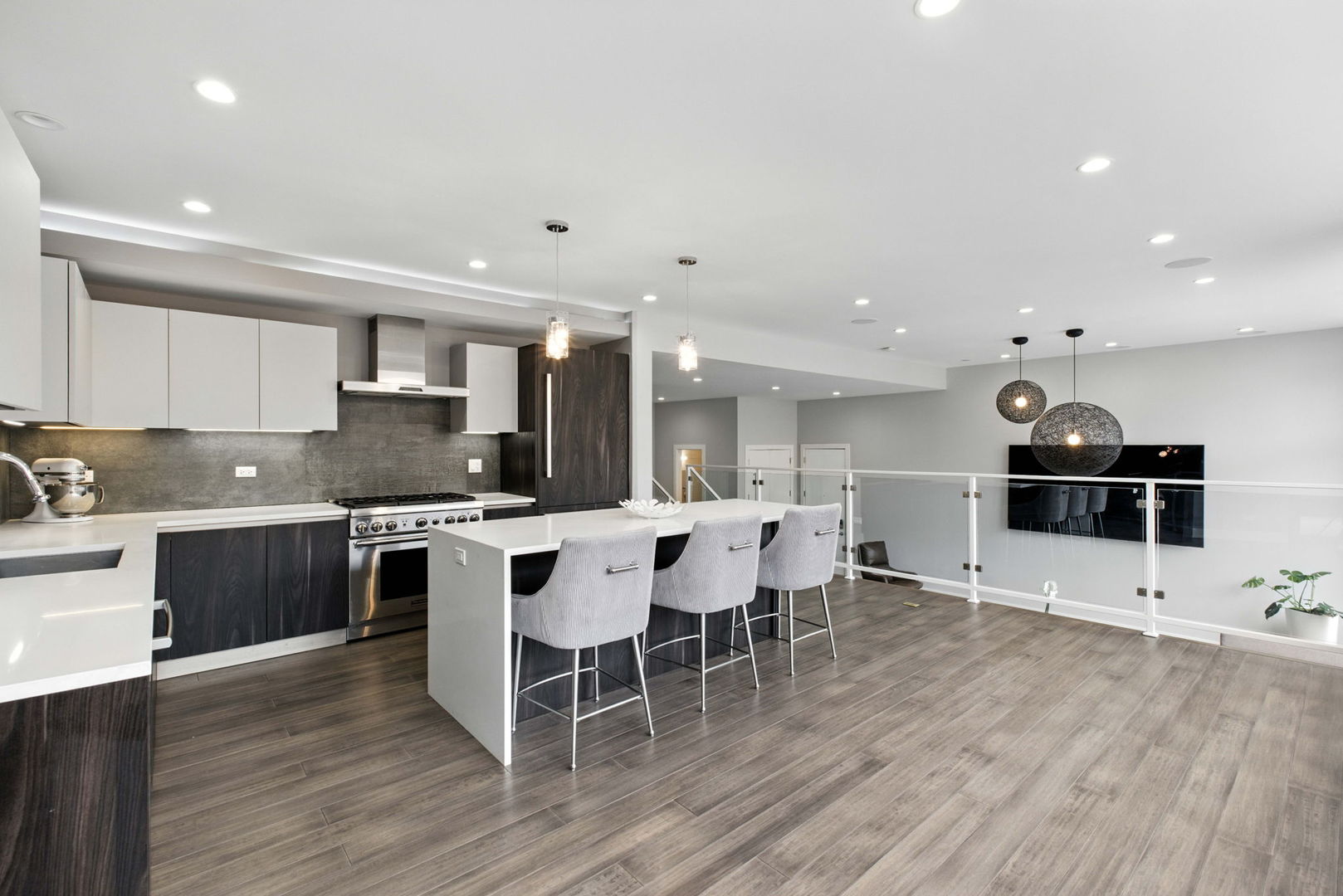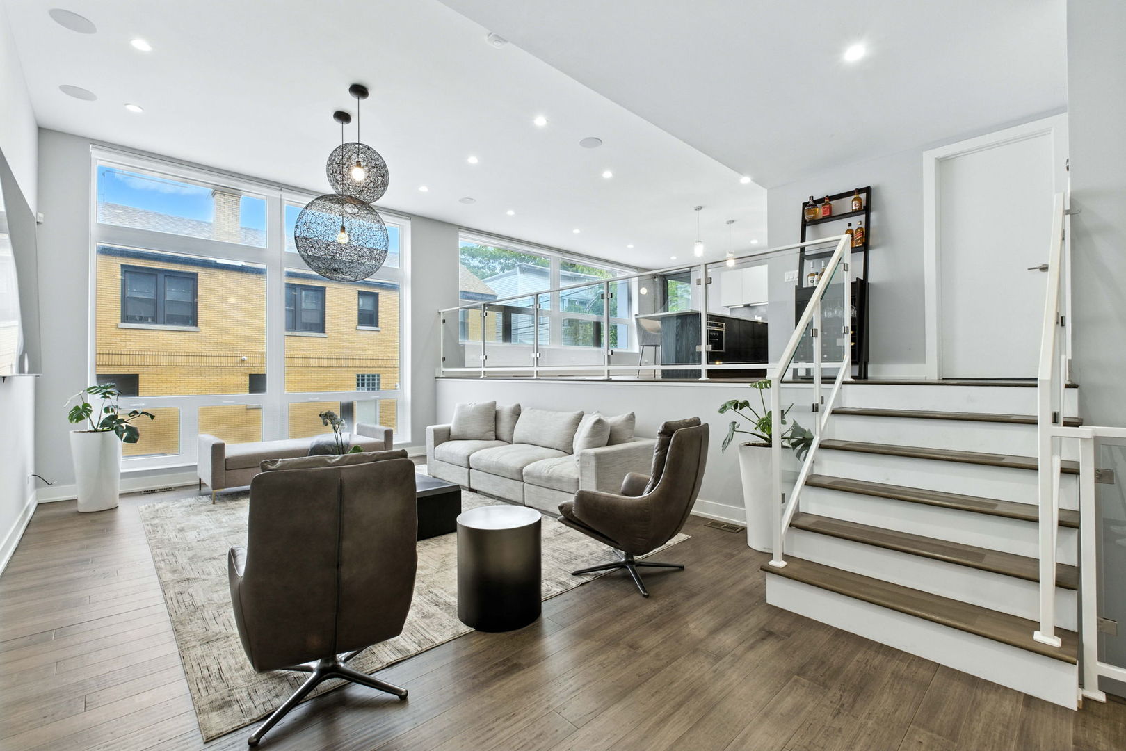 SIGNIFICANT PRICE IMPROVEMENT! INCREDIBLE OPPORTUNITY! Not On Ashland! Very Quiet, Very Private facing Fry St! Over 2500 SqFt! Soaring 14′ ceilings! Huge, private terrace! Lives like a Single Family Home! Are you looking for the exceptional? Welcome-in to this STUNNING triplex home unlike any ordinary condo you will see. Recently built, this three-level custom home exudes features you simply won’t find anywhere else. Starting with the layout; a perfect blend of open concept while providing intentional designated spaces for living, dining, and separate family room entertaining spanning more than 2500 SqFt!. Enter into the main living level and immediately be taken aback by the soaring 14 foot ceilings and floor-to-ceiling wall of windows – extraordinary! Huge open living space. A sizeable coat closet and half-bath on this level. Ascend a few stairs to the top floor, which uniquely remains open to the main living level visible through an amazing glass railing! Here you’ll find a true chef’s kitchen with high-end Thermador appliances; a rich-tone paneled professional sized fridge and freezer, the sought-after 36 inch, 6 burner range, Copat cabinetry and an abundance of storage and counterspace including a 6-foot island. The adjacent Dining space easily accommodates a table for 8. Accessible from the kitchen awaits your outdoor sanctuary! A completely private 35’x14′ terrace outfitted in ceramic patio tiles and equipped with a pergola, water, electric. Outdoor entertainment accessible for TV and sound. The Primary Suite is a true retreat! Easily accommodating any size furniture with a large custom-organized closet and a spa-like bath highlighted by heated floors, a wet-room area with huge shower with rainshower head and wall mounted body sprayer plus a soaking tub. Double bowl vanity and linen-storage. The full view glass wall/window can be kept clear or frosted for added privacy and yet another feature truly unique! Rich, hand-sewn hardwood floors adorn these top 2 levels. The lower level of this home is amazing! Soaring nine-foot ceilings and radiant heated tile floors! A huge family room, two additional, spacious bedrooms both with great walls of closets! The third bedroom features custom glass french-doors making it the perfect flex space for office, workout room! True luxury and an entertainer’s dream feature is the custom built 63 bottle glass wine room for the entertaining and wine enthusiast. – absolutely stunning! A full bath with oversized vanity and gorgeous tile. A large utility room with washer and dryer completes this level. Exit from either the lower-level or the 1st floor to access your attached garage parking space – the ultimate in convenience and comfort for its proximity, security and protection from the elements! The entire home features custom closets and professional windows treatments including Hunter Douglas automated blinds with top-down bottom-up capabilities to set the optimal natural light. A well-run HOA with ultra-high Owner-occupancy. Enjoy low assessments in a top-quality building. Superb location in the Noble Square neighborhood of WestTown with tons of trendy eateries and shops and the best transportation options. Building is on the corner of Fry and Ashland; this unit does not face Ashland, it is so peaceful and serene!