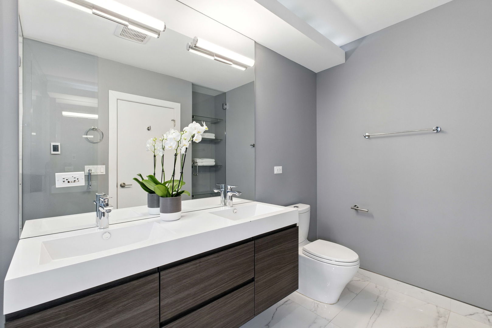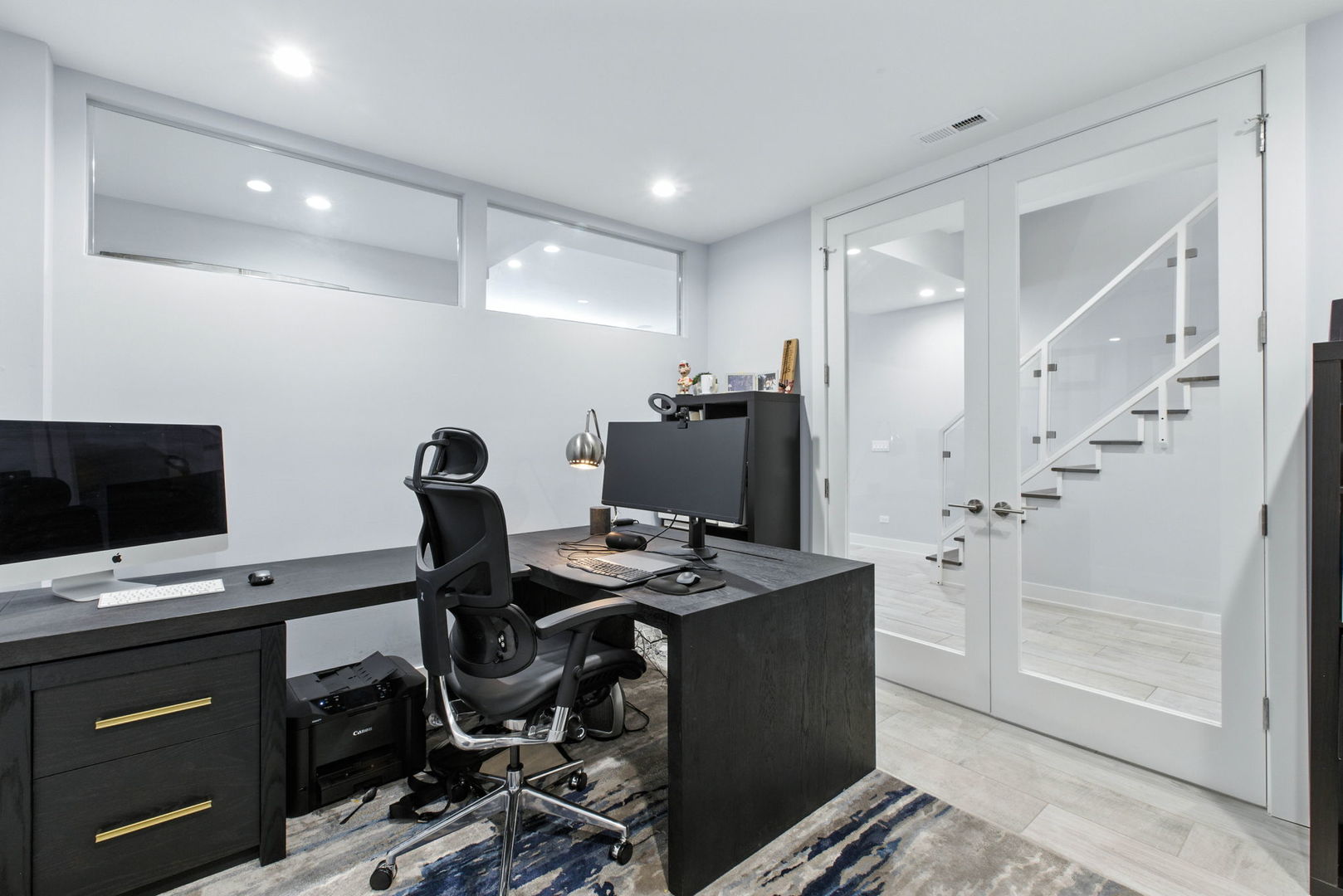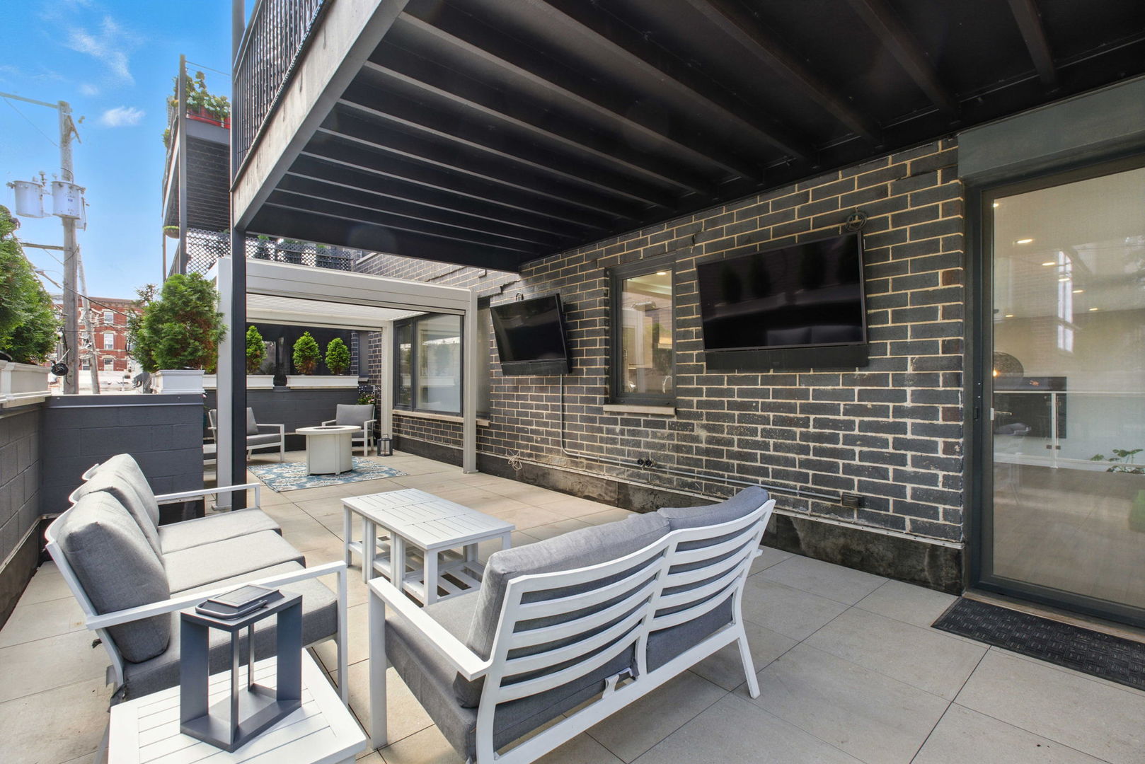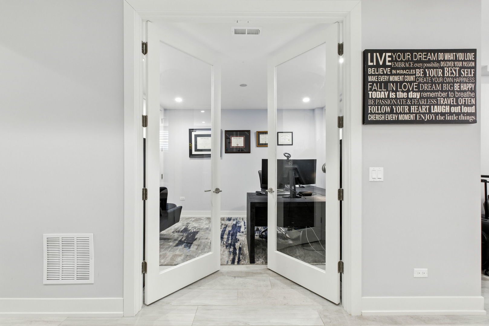 SIGNIFICANT PRICE IMPROVEMENT! INCREDIBLE OPPORTUNITY! Not On Ashland! Very Quiet, Very Private facing Fry St! Over 2500 SqFt! Soaring 14′ ceilings! Huge, private terrace! Lives like a Single Family Home! Are you looking for the exceptional? Welcome-in to this STUNNING triplex home unlike any ordinary condo you will see. Recently built, this three-level custom home exudes features you simply won’t find anywhere else. Starting with the layout; a perfect blend of open concept while providing intentional designated spaces for living, dining, and separate family room entertaining spanning more than 2500 SqFt!. Enter into the main living level and immediately be taken aback by the soaring 14 foot ceilings and floor-to-ceiling wall of windows – extraordinary! Huge open living space. A sizeable coat closet and half-bath on this level. Ascend a few stairs to the top floor, which uniquely remains open to the main living level visible through an amazing glass railing! Here you’ll find a true chef’s kitchen with high-end Thermador appliances; a rich-tone paneled professional sized fridge and freezer, the sought-after 36 inch, 6 burner range, Copat cabinetry and an abundance of storage and counterspace including a 6-foot island. The adjacent Dining space easily accommodates a table for 8. Accessible from the kitchen awaits your outdoor sanctuary! A completely private 35’x14′ terrace outfitted in ceramic patio tiles and equipped with a pergola, water, electric. Outdoor entertainment accessible for TV and sound. The Primary Suite is a true retreat! Easily accommodating any size furniture with a large custom-organized closet and a spa-like bath highlighted by heated floors, a wet-room area with huge shower with rainshower head and wall mounted body sprayer plus a soaking tub. Double bowl vanity and linen-storage. The full view glass wall/window can be kept clear or frosted for added privacy and yet another feature truly unique! Rich, hand-sewn hardwood floors adorn these top 2 levels. The lower level of this home is amazing! Soaring nine-foot ceilings and radiant heated tile floors! A huge family room, two additional, spacious bedrooms both with great walls of closets! The third bedroom features custom glass french-doors making it the perfect flex space for office, workout room! True luxury and an entertainer’s dream feature is the custom built 63 bottle glass wine room for the entertaining and wine enthusiast. – absolutely stunning! A full bath with oversized vanity and gorgeous tile. A large utility room with washer and dryer completes this level. Exit from either the lower-level or the 1st floor to access your attached garage parking space – the ultimate in convenience and comfort for its proximity, security and protection from the elements! The entire home features custom closets and professional windows treatments including Hunter Douglas automated blinds with top-down bottom-up capabilities to set the optimal natural light. A well-run HOA with ultra-high Owner-occupancy. Enjoy low assessments in a top-quality building. Superb location in the Noble Square neighborhood of WestTown with tons of trendy eateries and shops and the best transportation options. Building is on the corner of Fry and Ashland; this unit does not face Ashland, it is so peaceful and serene!