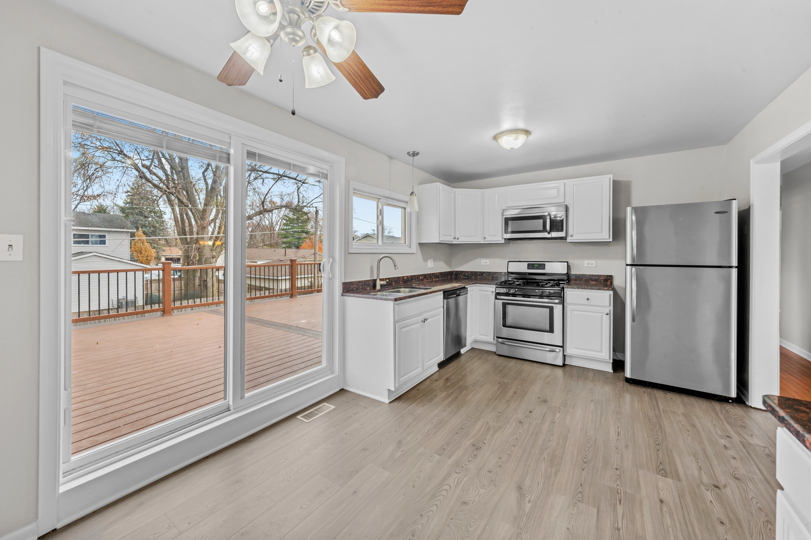 Convenient Bolingbrook Location! 4 Beds, 2 Baths, raised ranch to call your next home. One car, attached garage with an additional door to the back and hidden storage room. Fenced in backyard great for pets and a private area ready for parties and cook outs. Close to several restaurants, major highways, shopping, parks and public schools. **NEW deck/patio built in 2023, perfect for summer gatherings. NEW A/C & furnace installed 2021. NEW kitchen flooring and carpet installed in 2023. All new paint throughout the entire house, move in ready!
