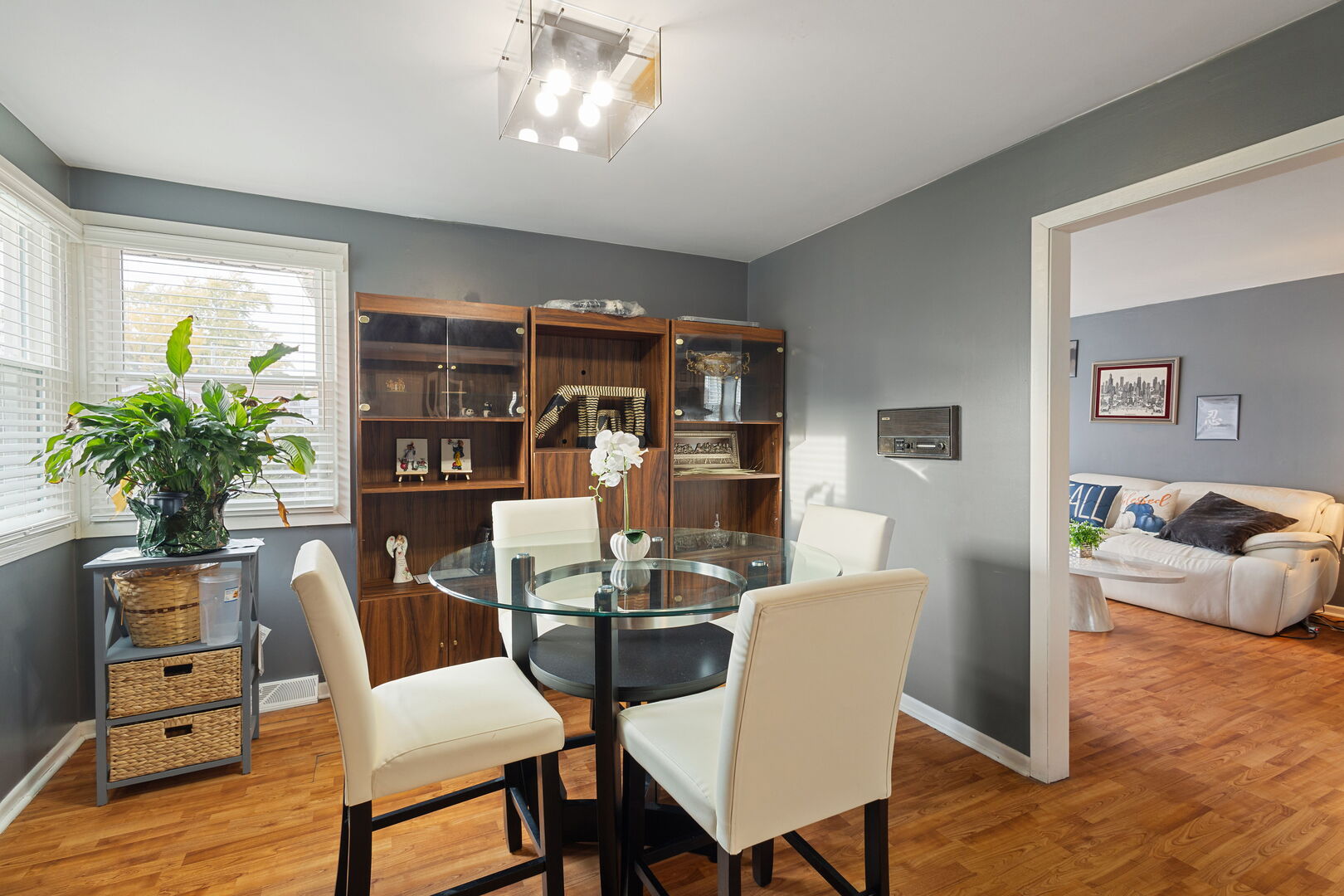 Welcome home to this delightful raised ranch in the heart of South Holland! Step inside to find a thoughtfully designed floor plan featuring fresh paint and wood laminate flooring throughout. The formal living and dining rooms provide the perfect setting for gatherings with family and friends. The bright, updated kitchen boasts white cabinetry with abundant storage, a stylish tile backsplash, and stainless steel appliances-ideal for everyday meals or entertaining. Three spacious, sun-filled bedrooms and a spa-inspired full bath complete the main level. The finished basement offers additional living space, extra storage, a potential fourth bedroom, and a convenient laundry area. Outside, enjoy your private retreat with a multi-level deck overlooking a fully fenced yard and a two-car garage with a newer roof. Located close to shopping, dining, parks, and schools, with easy interstate access-this home offers both comfort and convenience. Home is in excellent condition but being sold as-is.