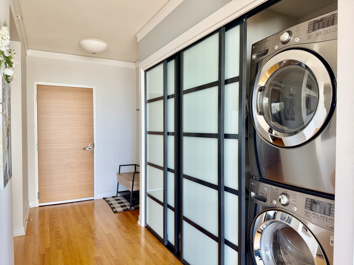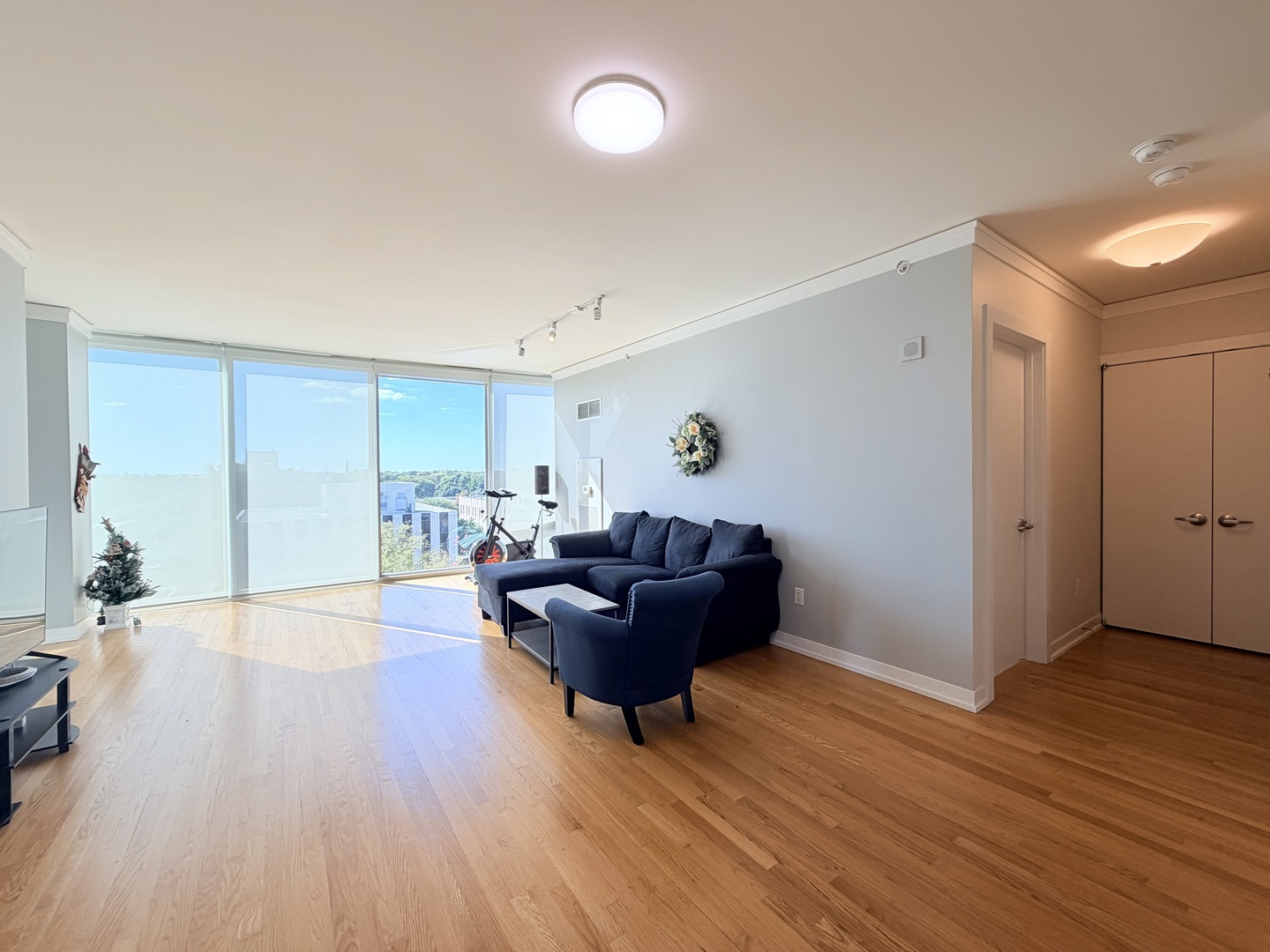 Excellent Modern Downtown Evanston Condo! Beautiful 2-bedroom, 2-bath unit in a prime downtown location with wonderful south-facing views and floor-to-ceiling windows that fill the space with natural light. Enjoy your private terrace, perfect for morning coffee or evening relaxation. The modern kitchen features a breakfast bar and stainless-steel appliances. The spacious primary suite offers a double vanity, soaking tub, and natural stone tile. Additional highlights include a large hall pantry for extra storage and LG front-load washer/dryer conveniently located off the foyer. This full-amenity building offers 24-hour door staff, package delivery, party room, large fitness center, pool/spa with towel service, and ample guest parking. Unit includes two adjoining garage spaces (#325 & #326), additional $10000. Just steps to Metra, CTA, the lakefront, and all of Evanston’s premier dining and shopping.
