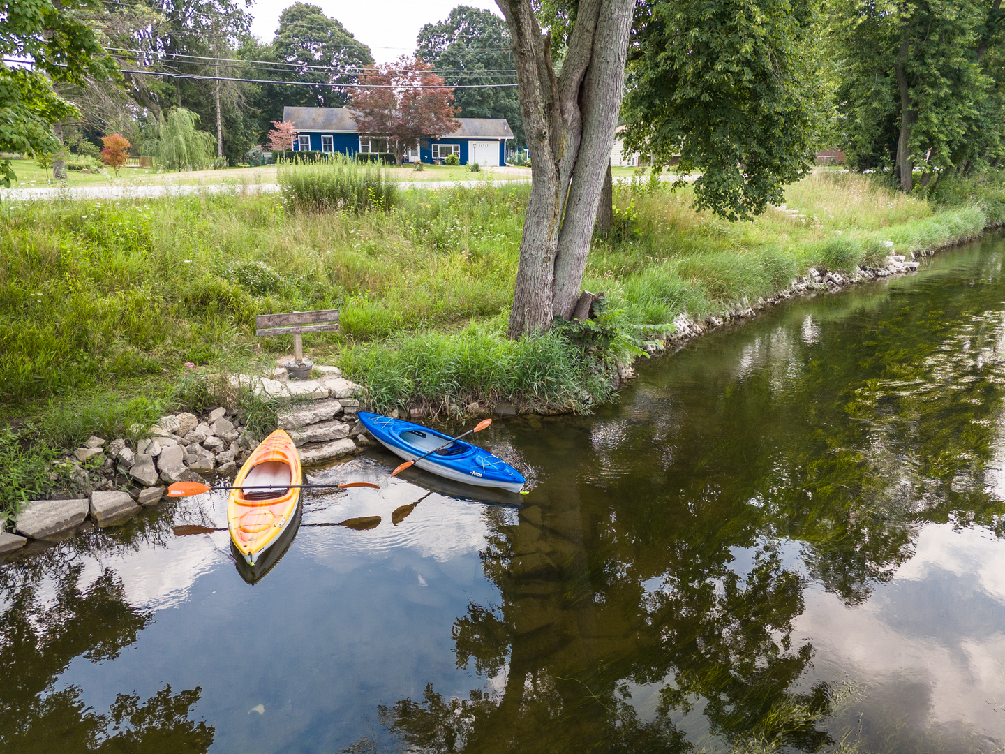 Riverfront Retreat The DuPage River flows just beyond your drive with private water access with 200′ of frontage. Kayak, tube and fish the days away or just enjoy the deeply calming view from your riverfront seat. Unincorporated, surrounded by forests, parkland, and yet close to everything downtown Plainfield has to offer. Paved lit trails lead to parks, ice cream shops, restaurants and spots to grab a glass of wine. The home has 4 bedrooms and 2 baths with a new luxury master en suite. Each room features brand new high efficiency AC/heat pump. Fresh fruit abounds with your own mini orchard of peach, pear and apple trees. Fully fenced in yard for four legged friends and an oversized shed to house all the gear. US waterproofing lifetime warranty included and Upgraded high quality water filtration.