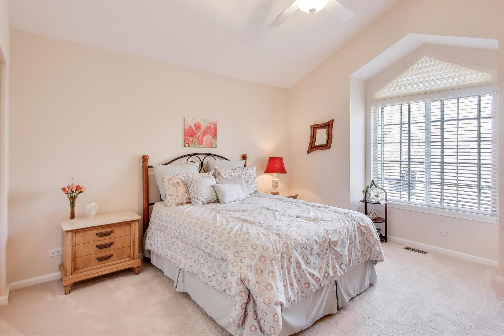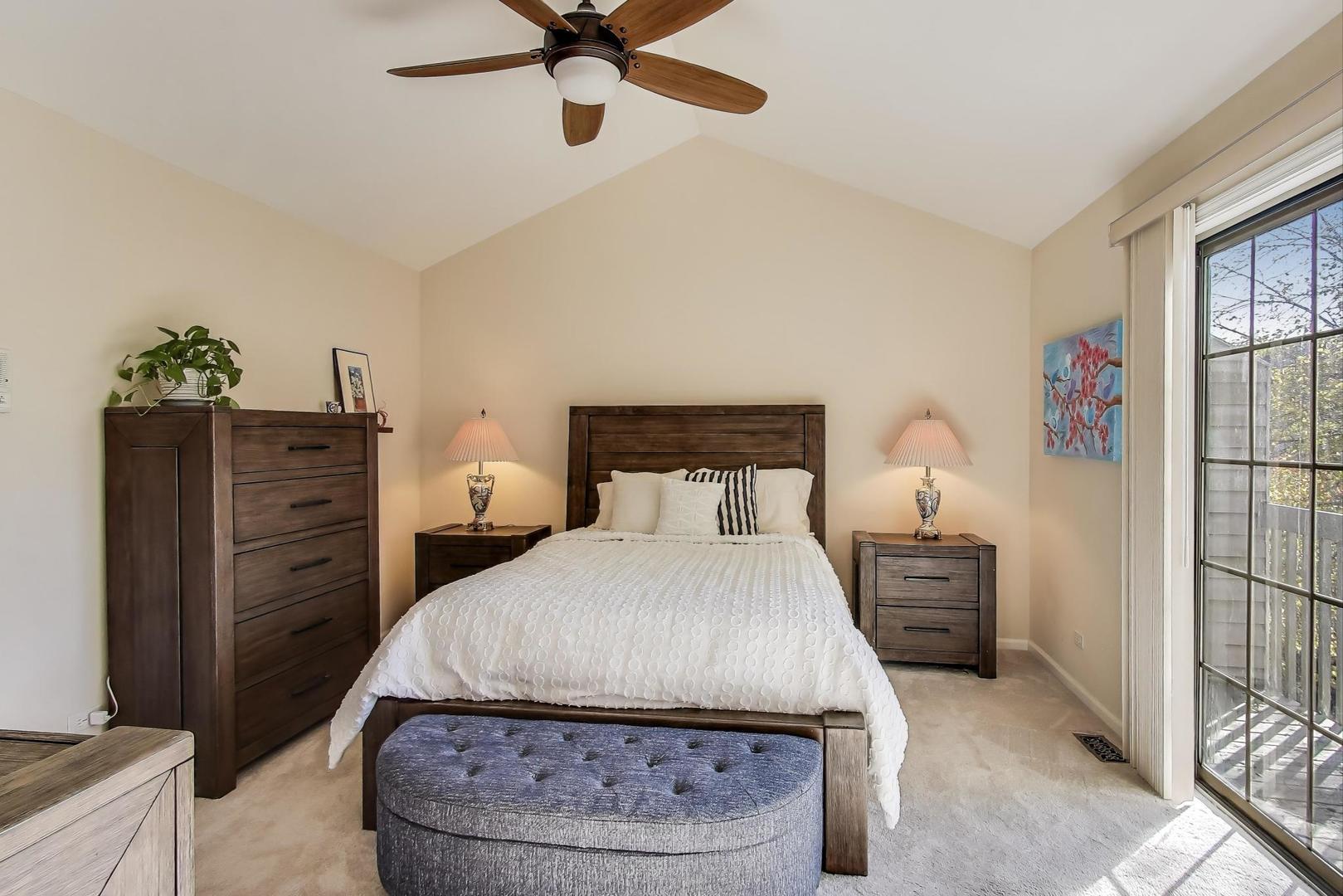 Discover this beautiful and spacious townhome in sought-after Wellington Park! This turnkey 3-bedroom, 3.1-bath home with a finished English basement and 2-car garage offers the perfect blend of comfort and style. The main level features a bright living and dining area with two sliders leading to the deck, filling the space with natural light. Enjoy the cozy gas starter/wood-burning fireplace and a gourmet kitchen with 42″ cabinetry, backsplash, stainless steel appliances, abundant storage, and a generous eating area. New luxury vinyl plank flooring and a convenient half bath complete the main level. Upstairs, retreat to the spacious primary suite with cathedral ceilings, a walk-in closet, private deck, and ensuite with shower and jetted tub combination-enhanced by a beautiful skylight that fills the space with natural light. Two additional bedrooms, a shared bath, and a laundry closet complete the second floor, where a skylight in the hallway adds to the open, airy feel. The fully finished English basement is perfect for entertaining, featuring a wet bar, full bath, and plenty of storage. This home backs to serene green space, providing privacy and a peaceful view. Wellington Park of Palatine is a desirable community surrounded by forest preserves, bike paths, a golf course, parks, shopping, and convenient access to highways and Metra.