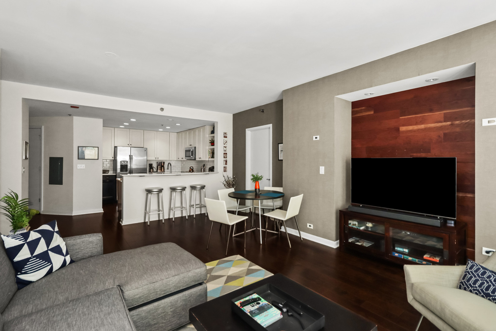 Sophisticated City Living in the Heart of Downtown! Just steps from Michigan Avenue and surrounded by Chicago’s most iconic architecture, this expansive 2-bedroom, 2-bath condo offers the ultimate urban lifestyle. From the moment you walk in, you’re greeted by soaring ceilings and floor-to-ceiling windows that flood every room with natural light and showcase spectacular city views. Hardwood floors adds modern style and warmth throughout the space. The thoughtfully designed split-bedroom layout ensures privacy, with the spacious primary suite featuring jaw-dropping views, ample closet space, and a spa-inspired bath with a soaking tub. The open-concept kitchen boasts stone countertops, a breakfast bar, and seamless flow into the living and dining areas which makes it ideal for entertaining. Enjoy the convenience of in-unit laundry, storage locker #68, and heated garage parking space #515: parking is an additional $35k. This newer, full-amenity building delivers luxury at every turn: * 24-hour doorman * Fitness center with skyline views * Stunning party room with full kitchen, fireplace & panoramic windows * Expansive wraparound sun deck on the 26th floor. Your private summer retreat in the sky. Live just minutes from the Mag Mile, Navy Pier, Lake Michigan, Whole Foods, world-class shopping, dining, Northwestern, and more. This is Chicago living at its finest-schedule your private showing today!