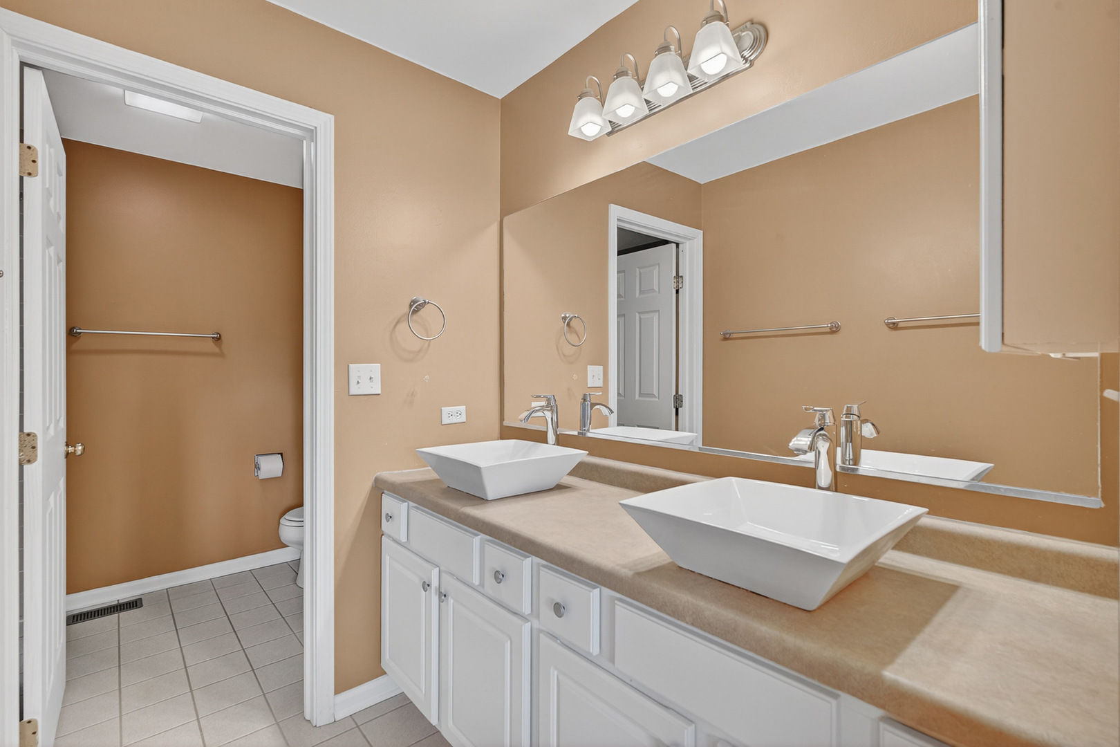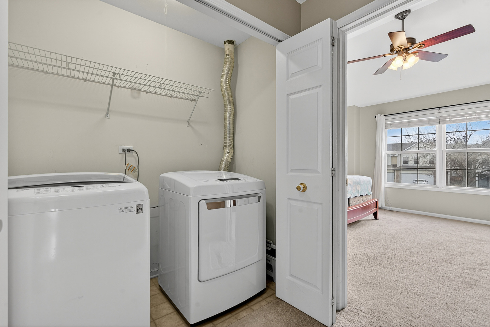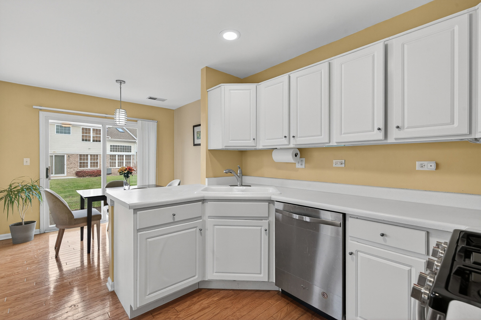 Beautifully updated and move-in ready 2-bed, 2.5-bath townhome with 1,534 sq ft of comfortable living space! The main level features modern wood-laminate flooring throughout, a bright and open living/dining area, and a well-appointed kitchen with stainless steel appliances. A sliding glass door off the dining room leads to a private outdoor living area-perfect for relaxing or entertaining. The main level also includes a versatile den/office along with a convenient half bath. Upstairs, you’ll find two spacious carpeted bedrooms, each with its own full bath. The large primary suite offers excellent closet space and a private en-suite. A second-floor laundry room adds everyday convenience. Fantastic Roselle location close to parks, shopping, restaurants, and transportation. A wonderful opportunity to own a spacious, modern, and well-maintained home-don’t miss it!